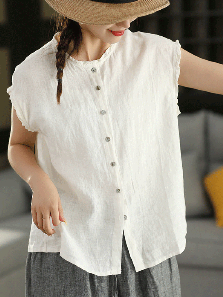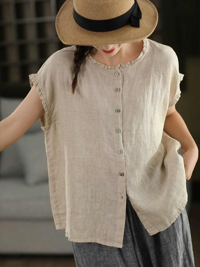 Γυναικείο Καλοκαιρινό Vintage Καρό Πουκάμισο από 100% Λινό με O-Neck