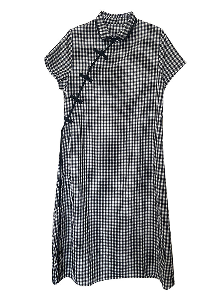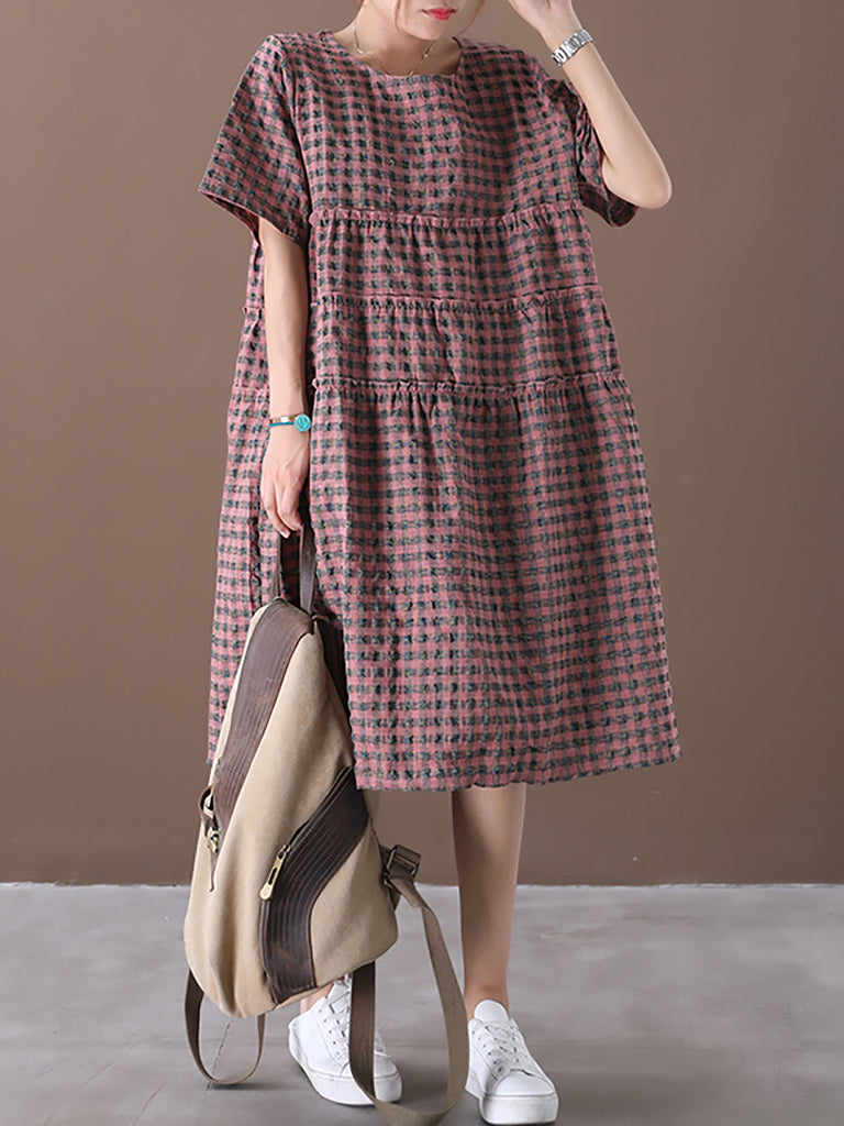 Γυναικείο Καλοκαιρινό Vintage Καρό Βάτραχος Φαρδύ φόρεμα Plus Size