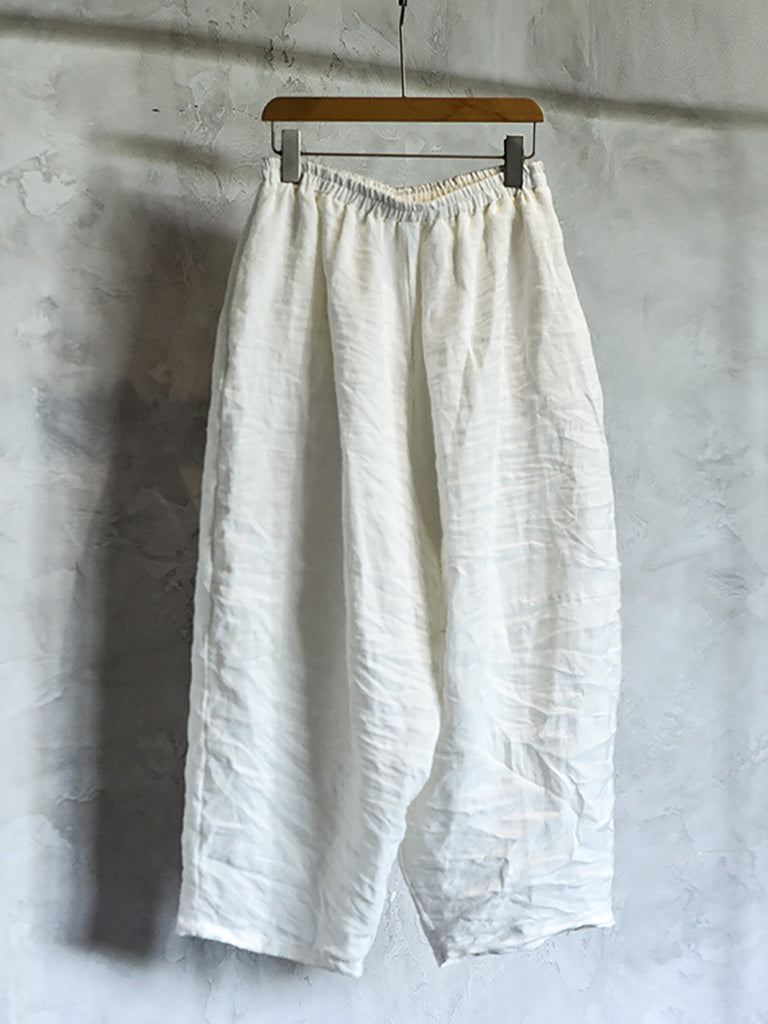 Γυναικεία καλοκαιρινά vintage μασίφ φαρδιά λινά παντελόνια