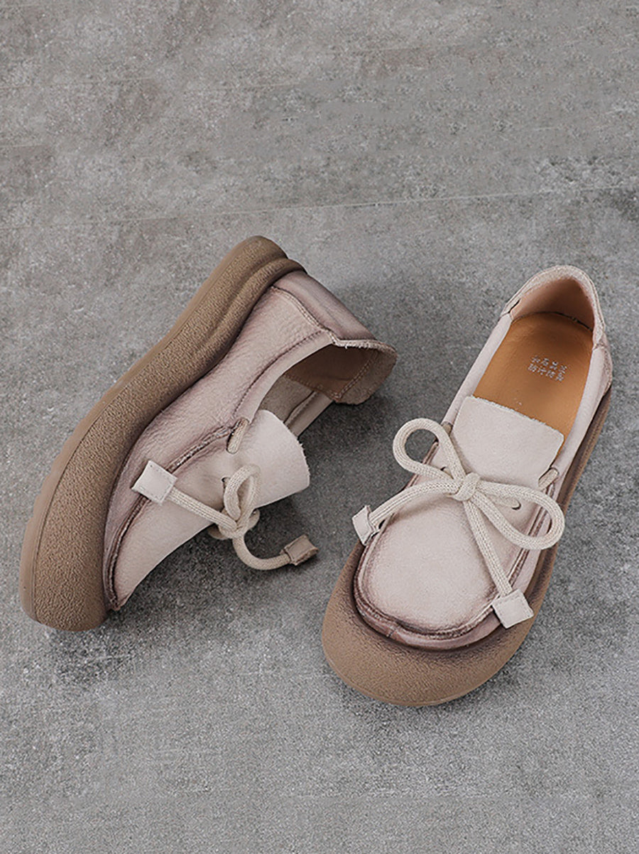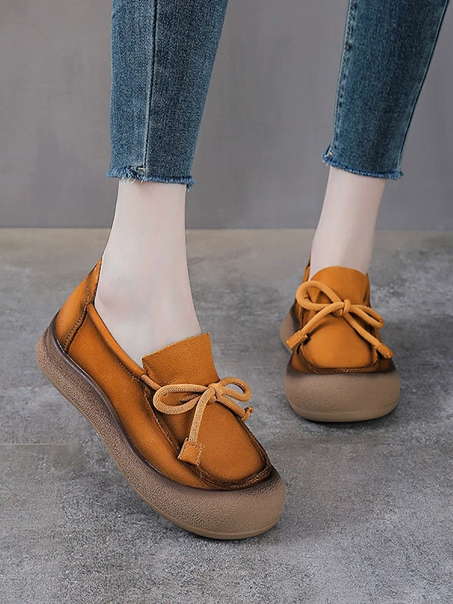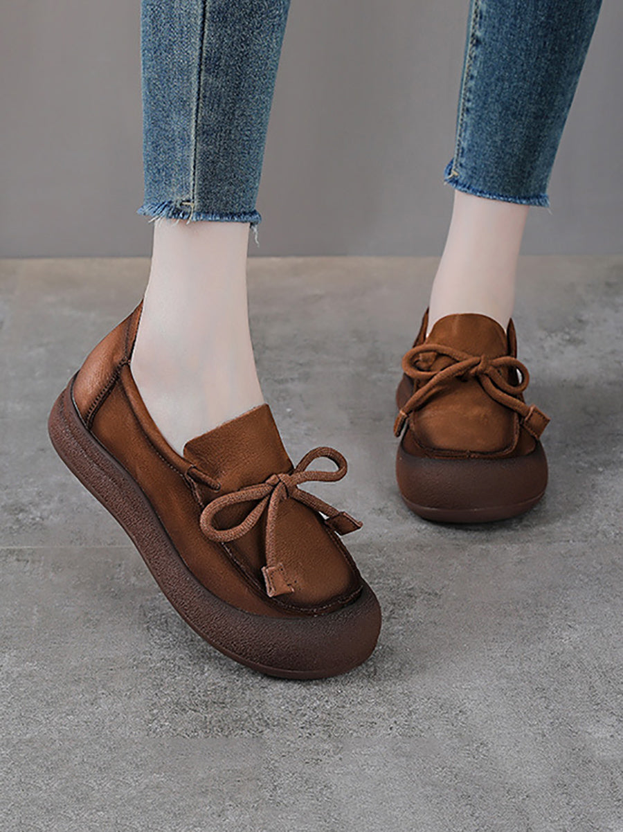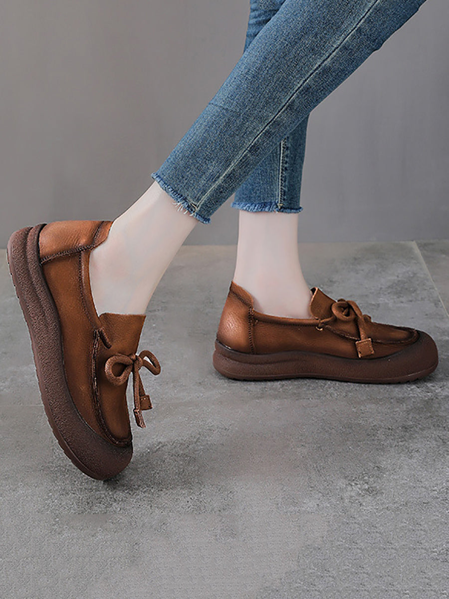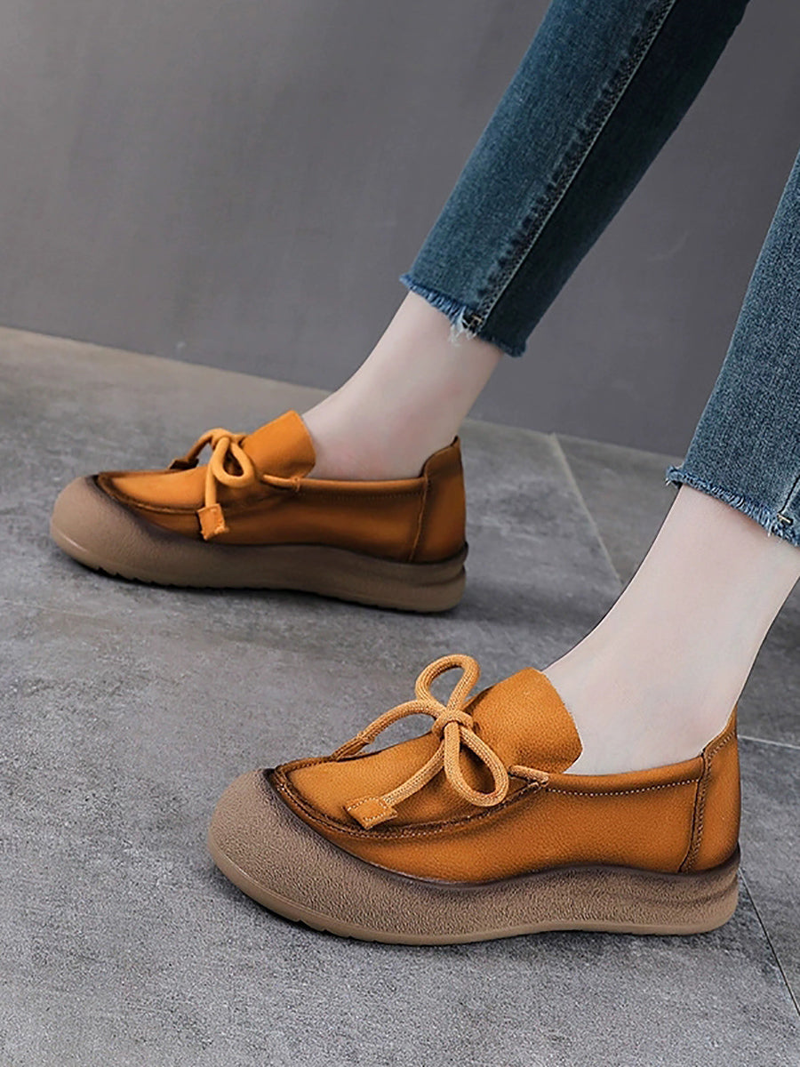Γυναικεία vintage γνήσια δερμάτινα φλατ παπούτσια με φιόγκο