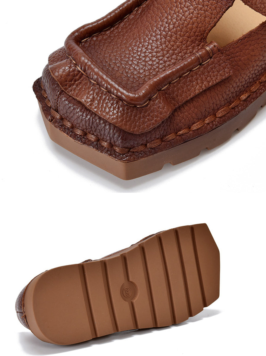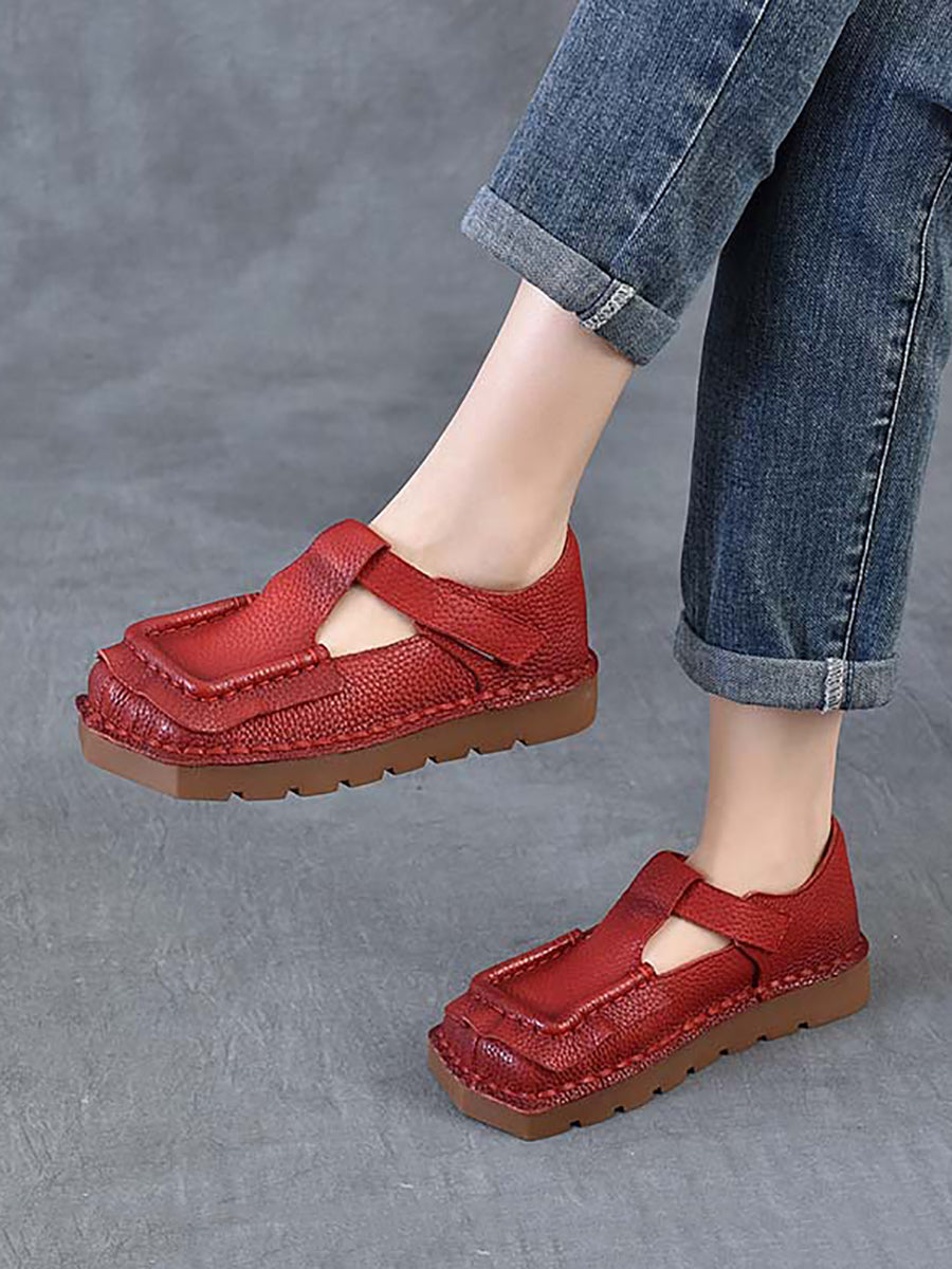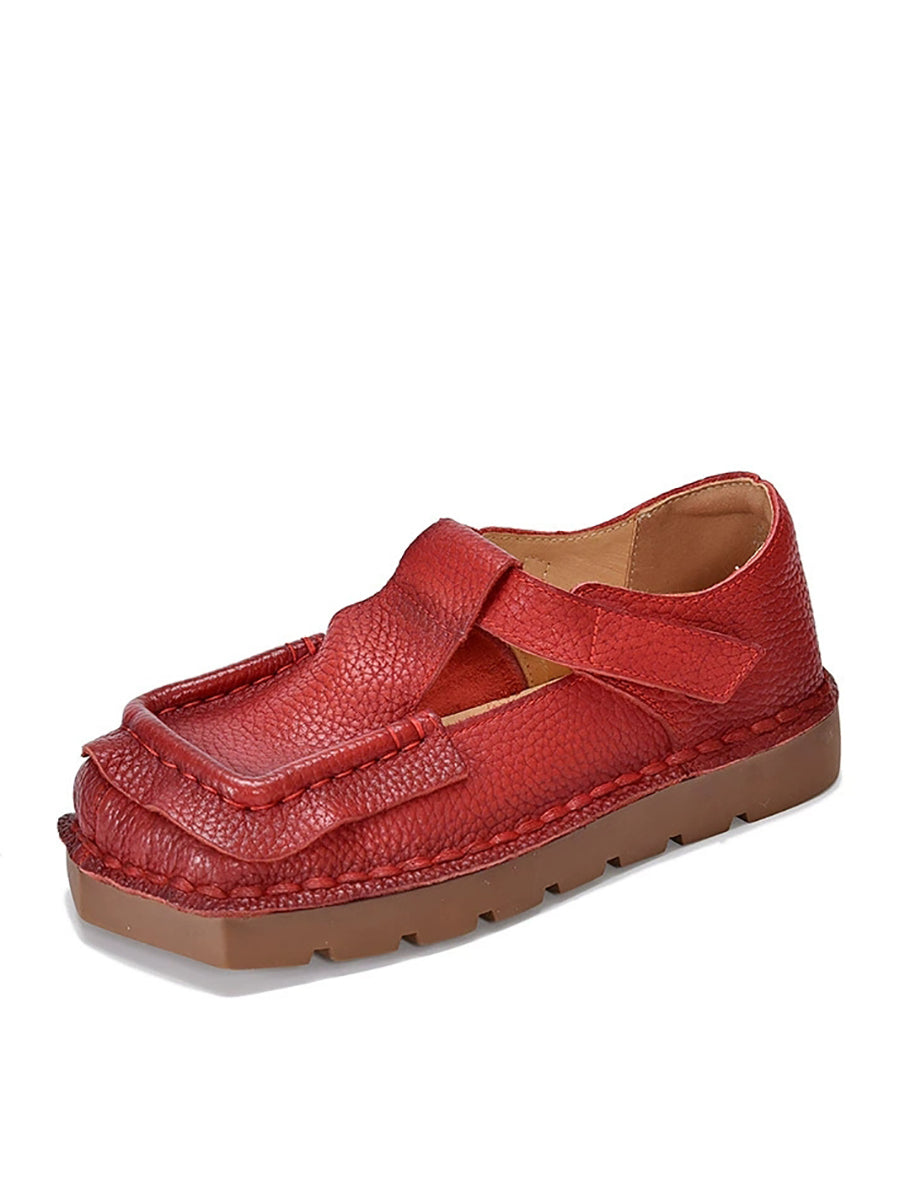 Γυναικεία vintage παπούτσια από γνήσιο δέρμα με τετράγωνη μύτη