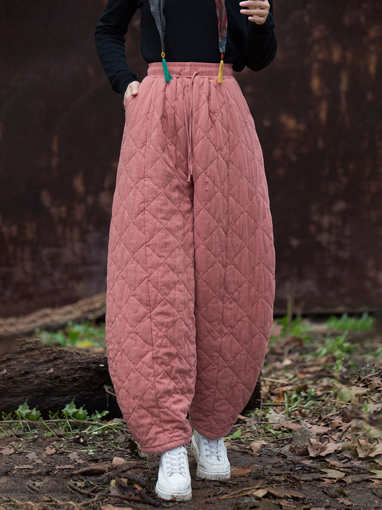 Γυναικείο χειμερινό ρετρό λουλουδάτο λινό παντελόνι με φαρδύ πόδι