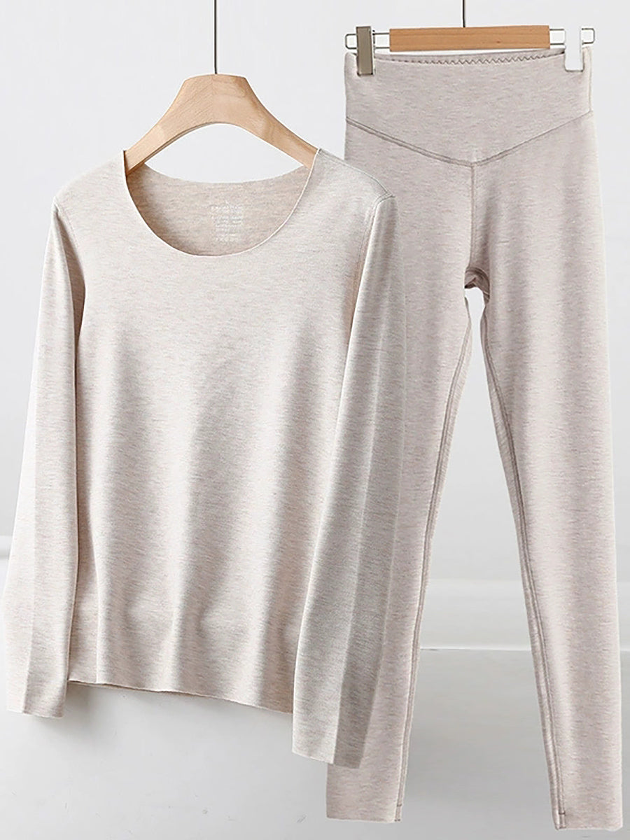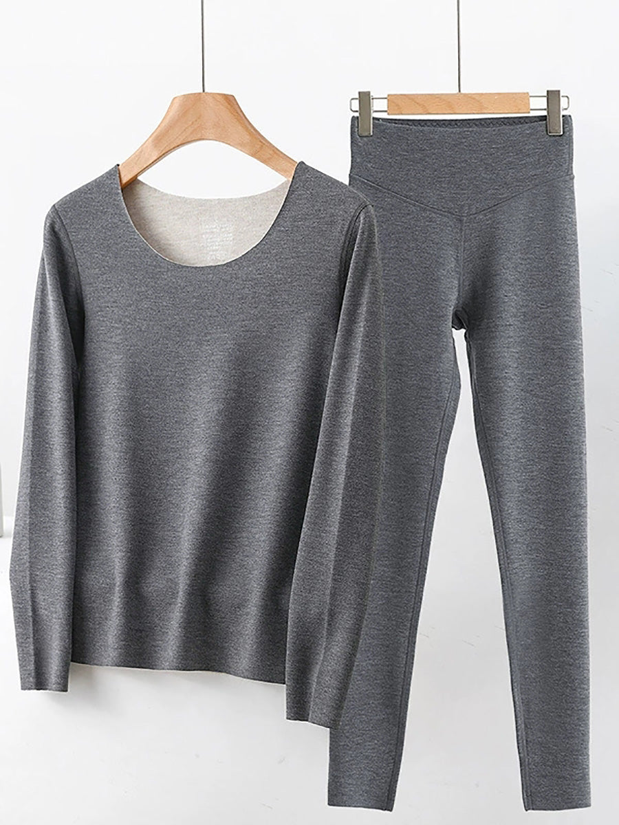 Conjunto básico de mujer para otoño, estilo casual, color liso, cuello en V.
