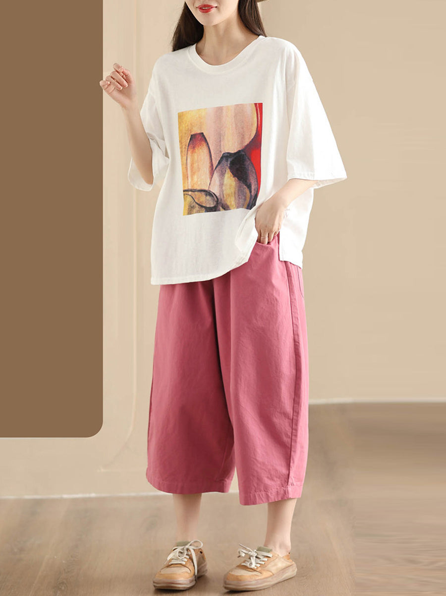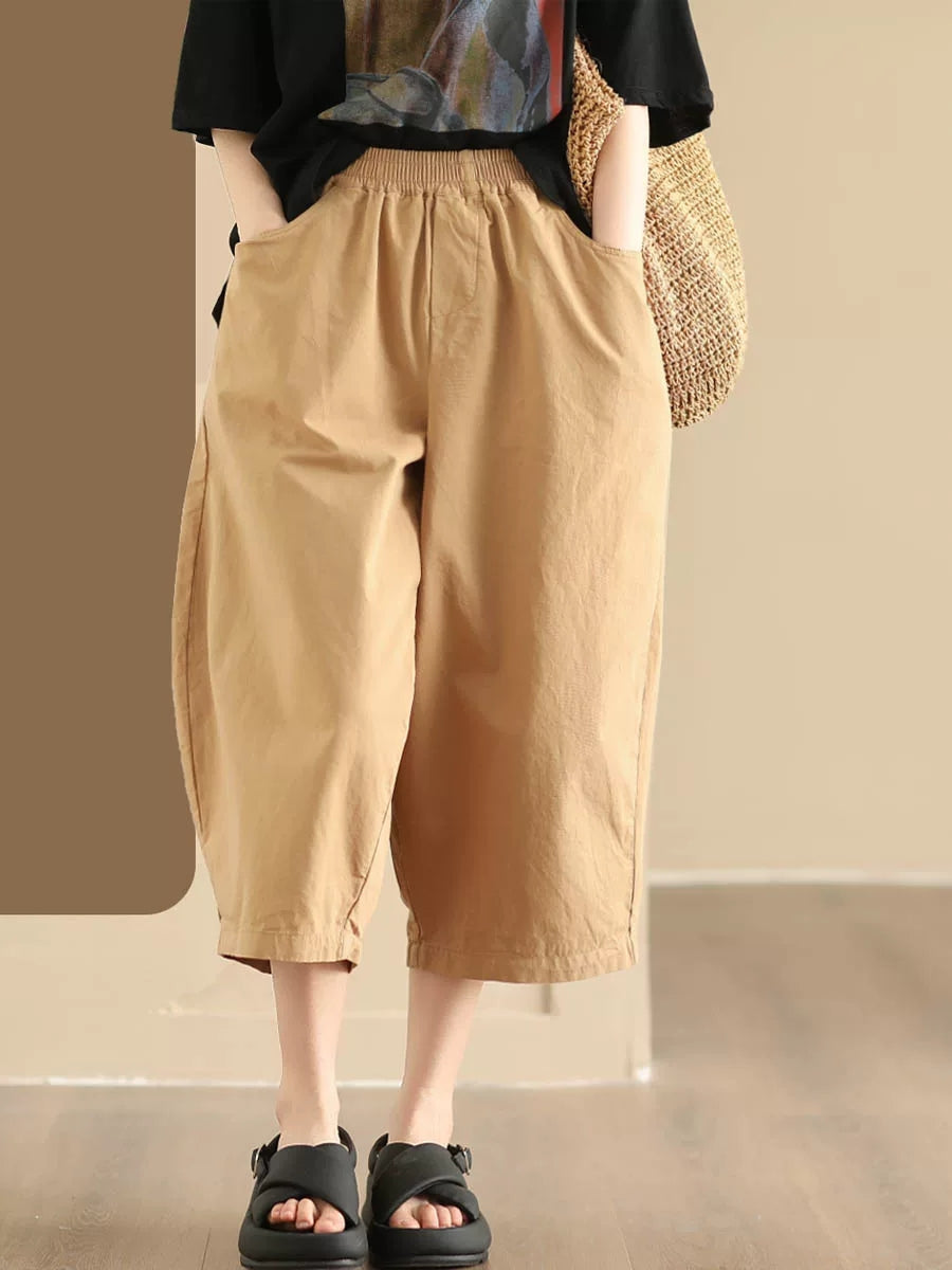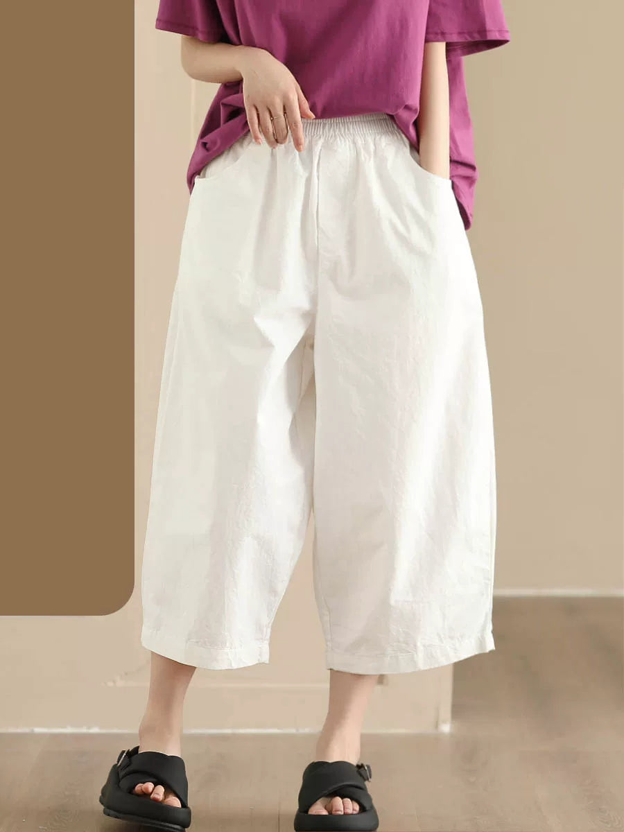 Pantalones de mujer casuales de verano, color liso, 100% algodón, pierna ancha.