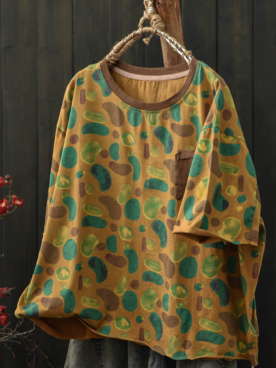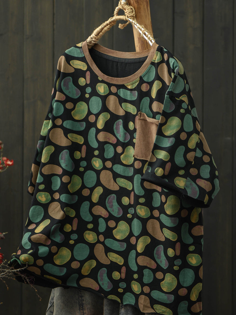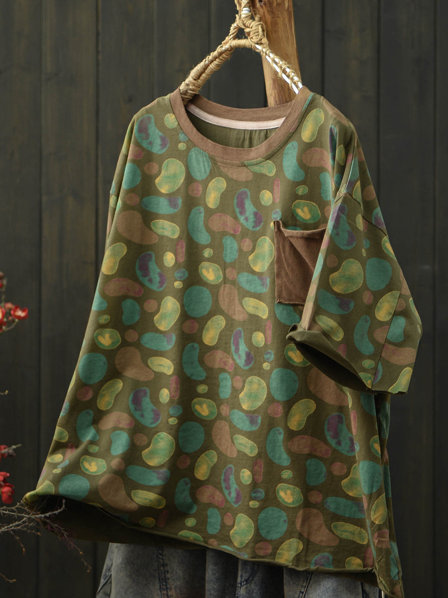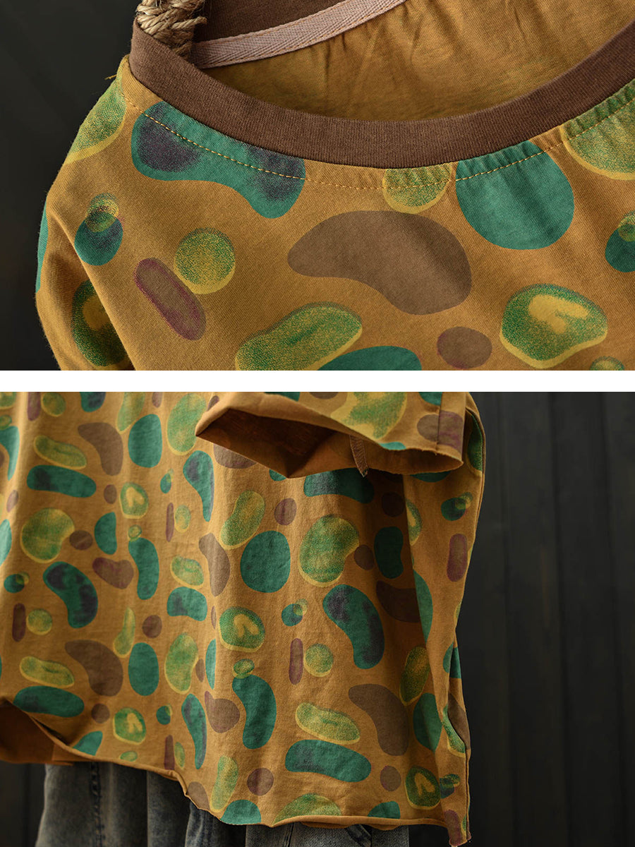 Camiseta de algodón con cuello redondo y estampado artístico para mujer, ideal para el verano.