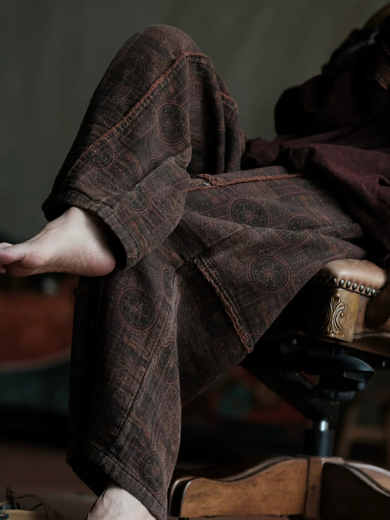 Pantalones anchos de algodón con estampado retro de verano para mujer