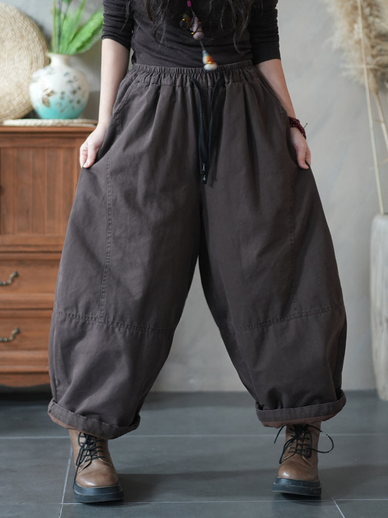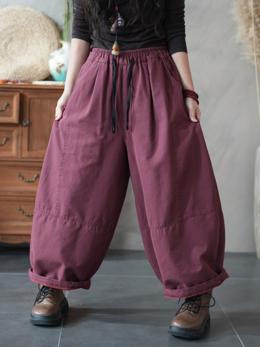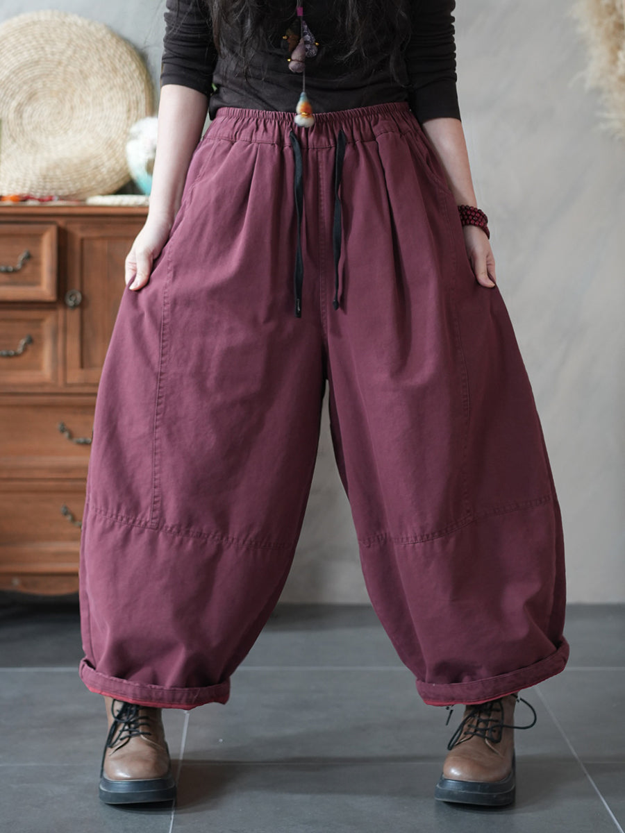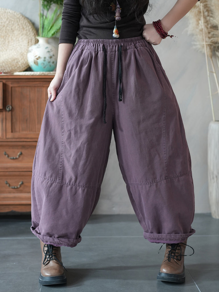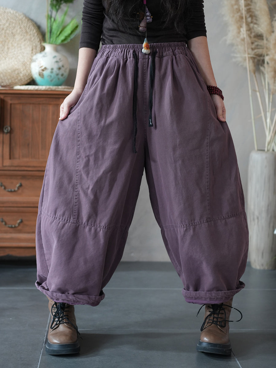 Pantalones tipo harem de invierno para mujer, estilo retro, color liso, 100% algodón
