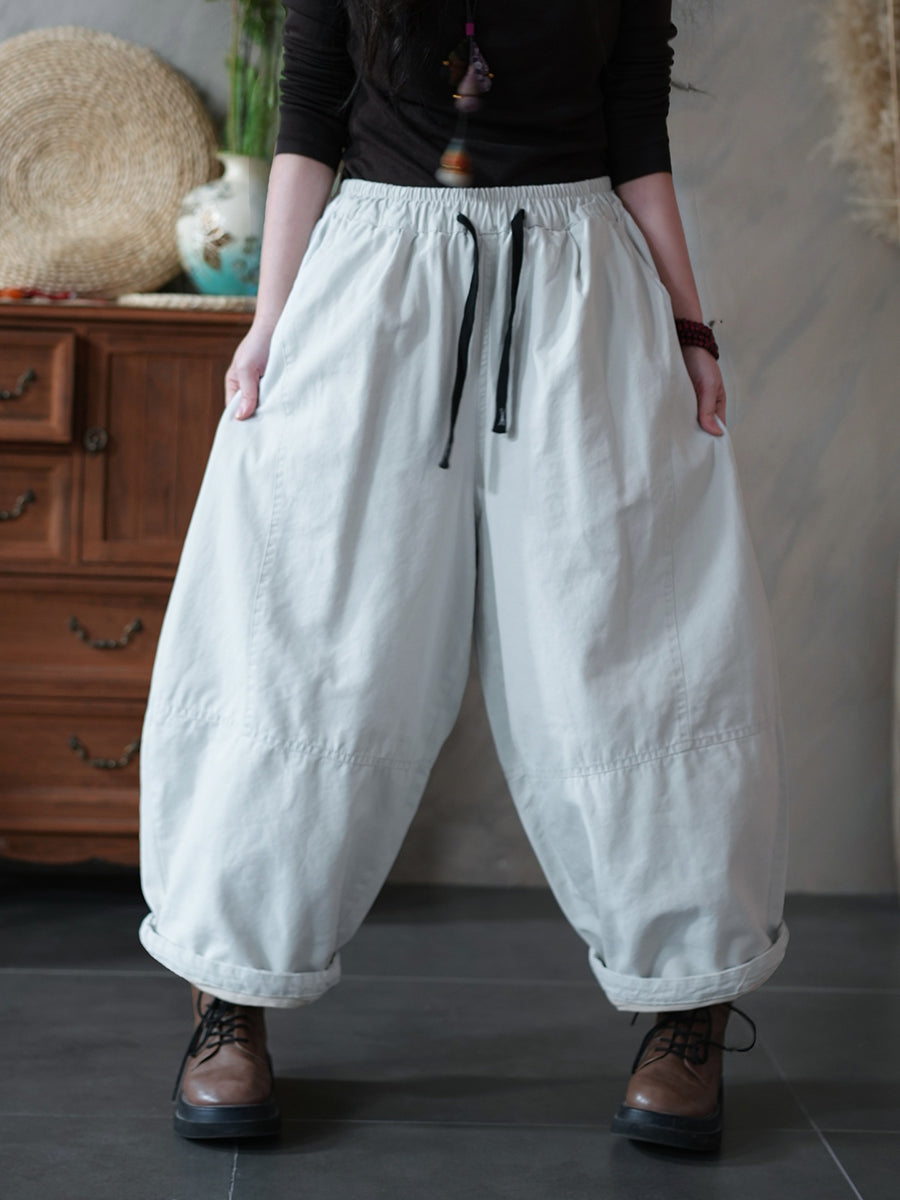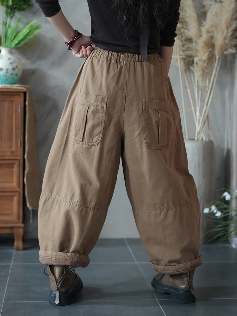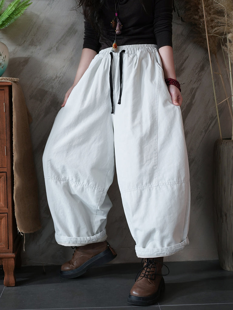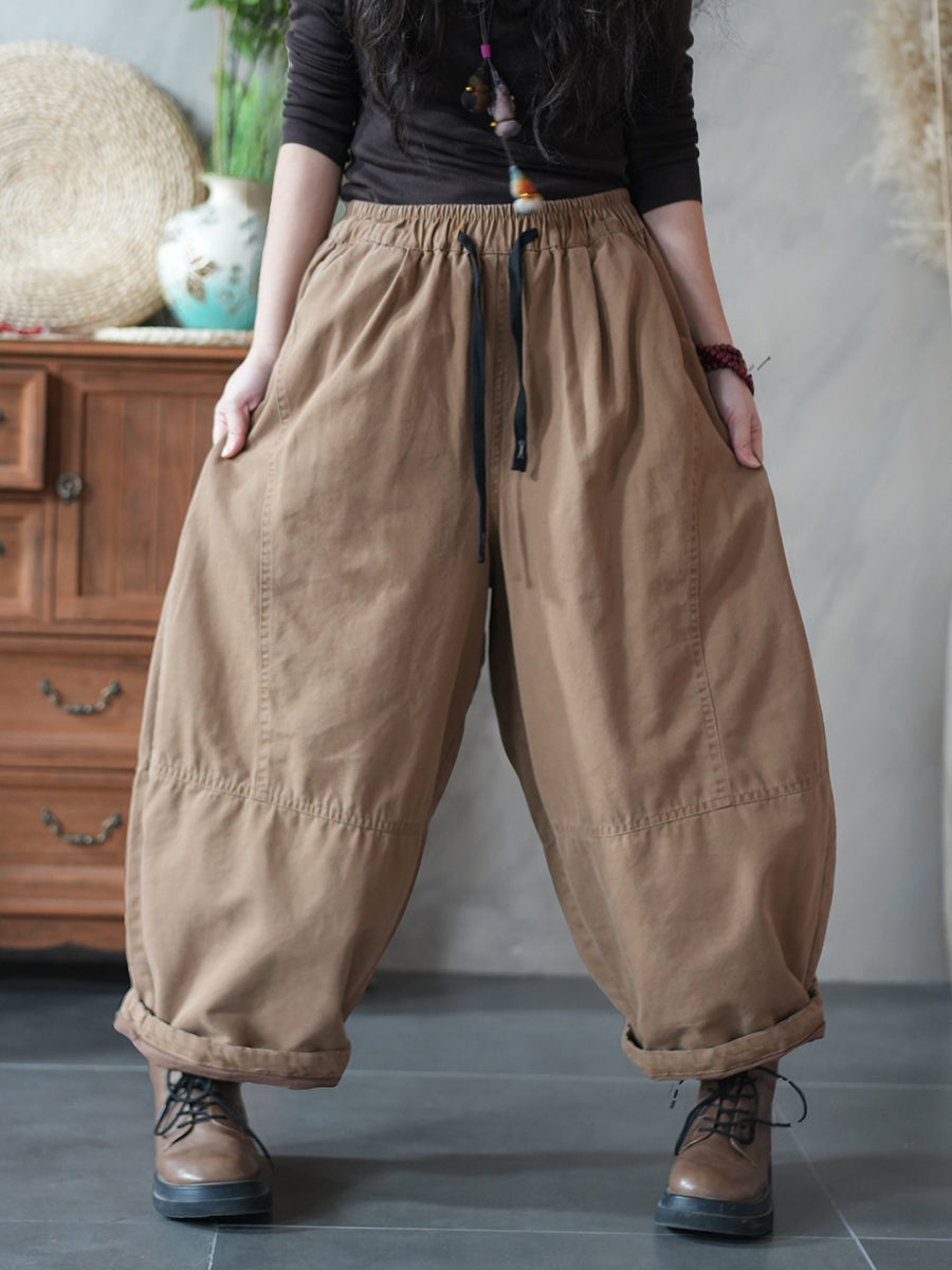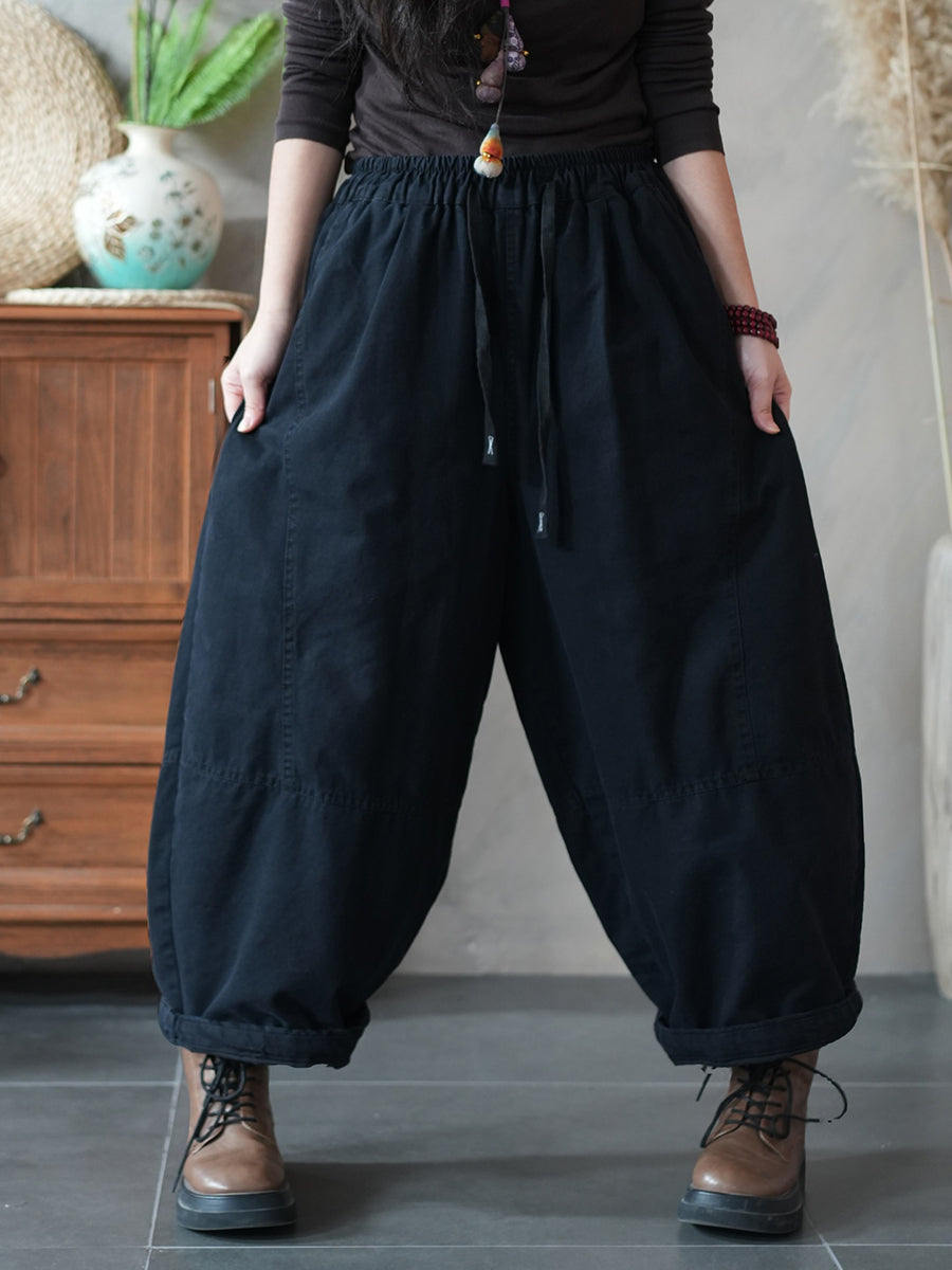 Pantalones tipo harem de invierno para mujer, estilo retro, color liso, 100% algodón