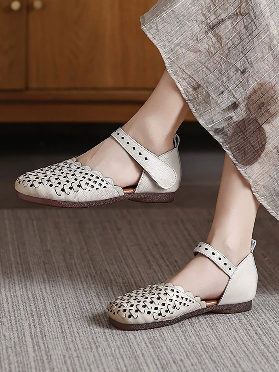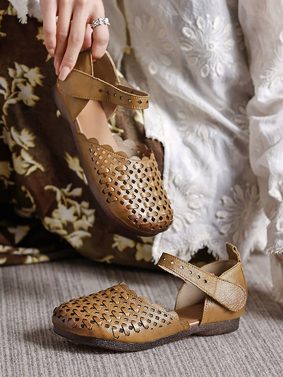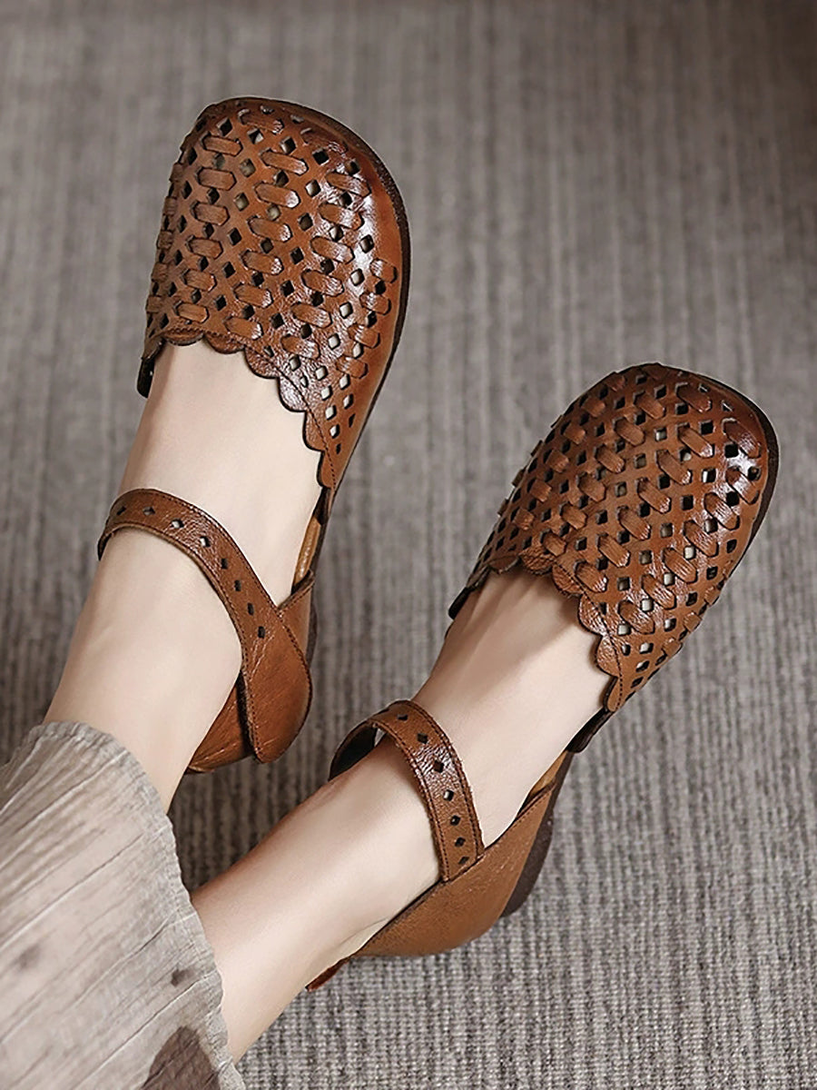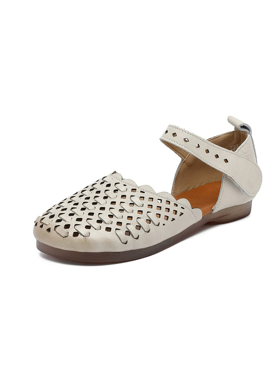 Sandalias de verano para mujer de piel auténtica tejida