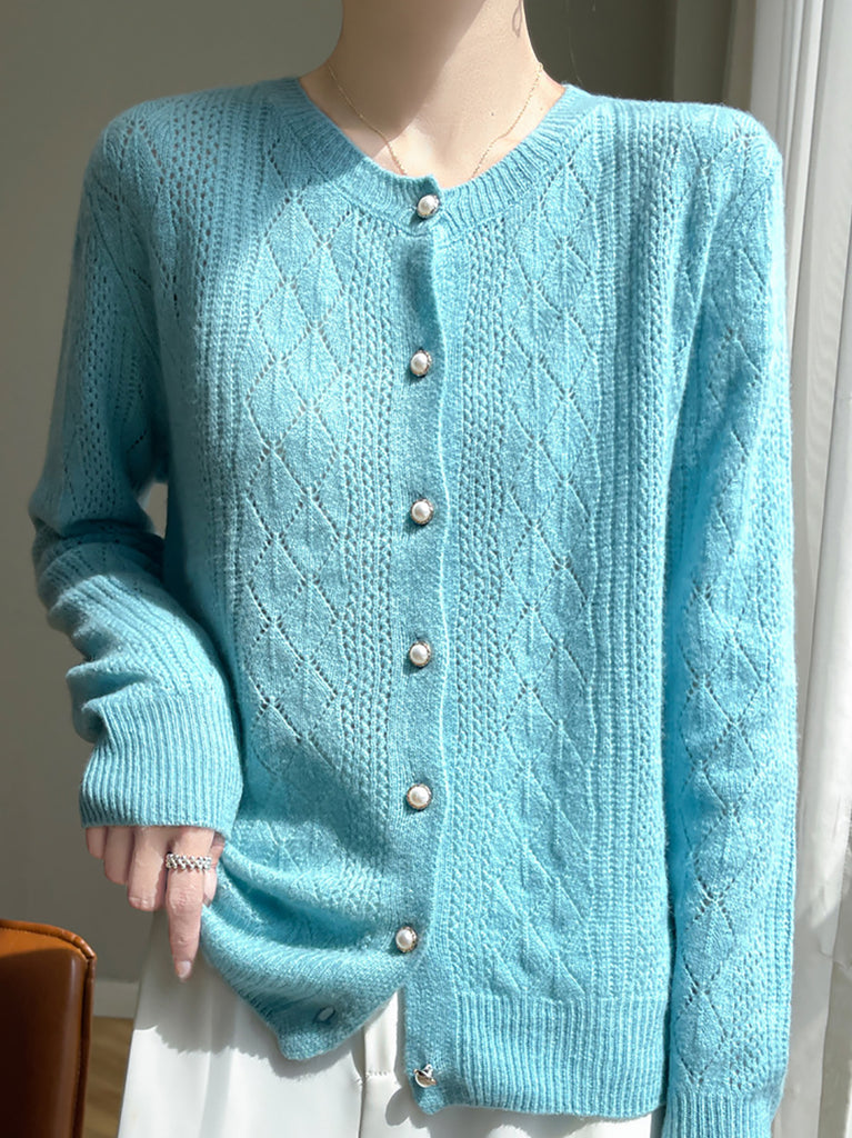Suéter de punto tipo cárdigan de cuello redondo de lana de otoño para mujer