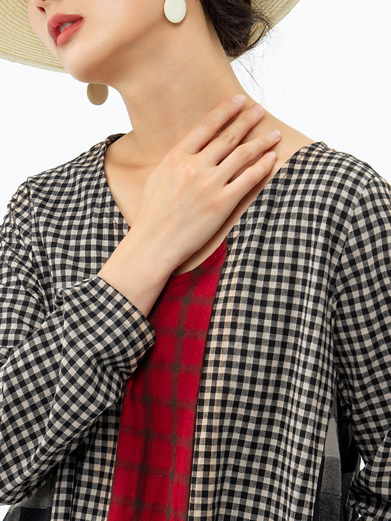 Vestido retro de lino y algodón a cuadros de distintos colores y talla grande