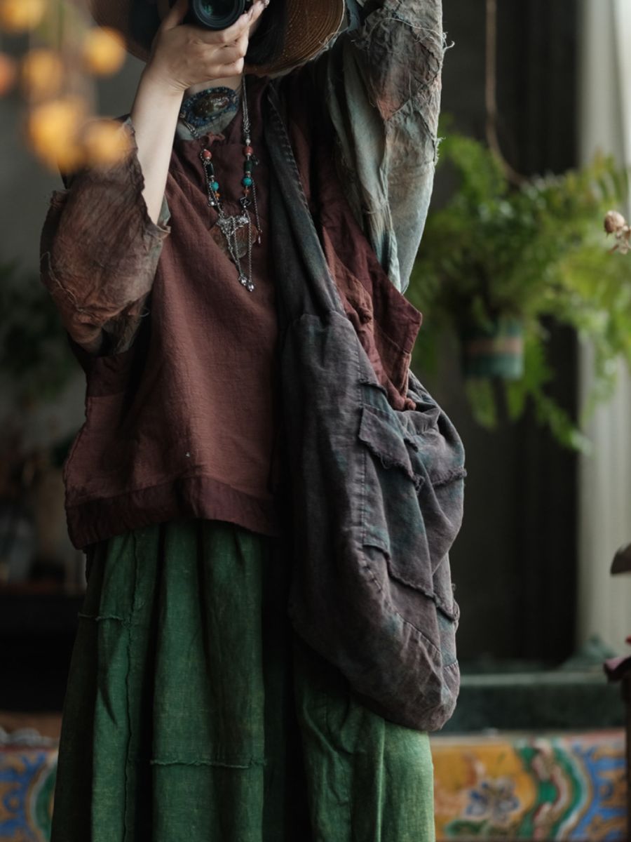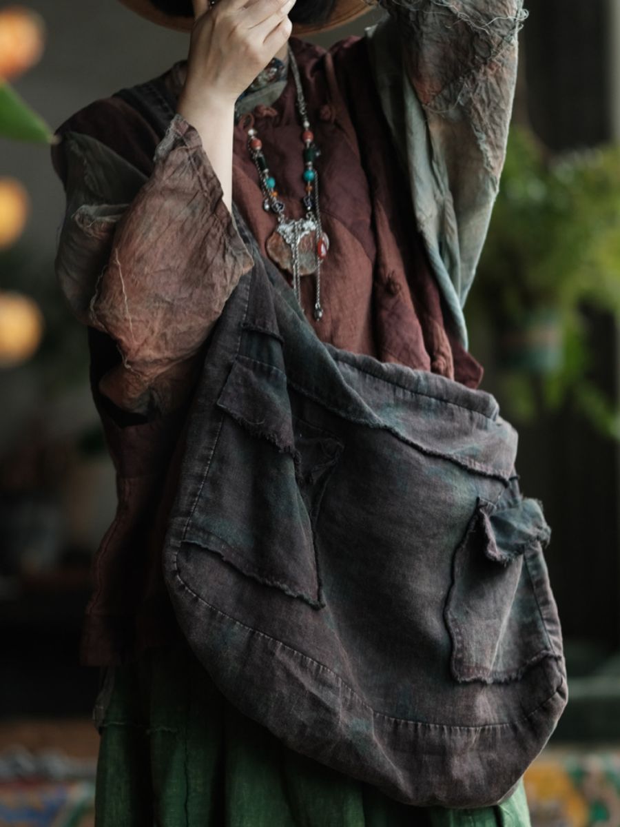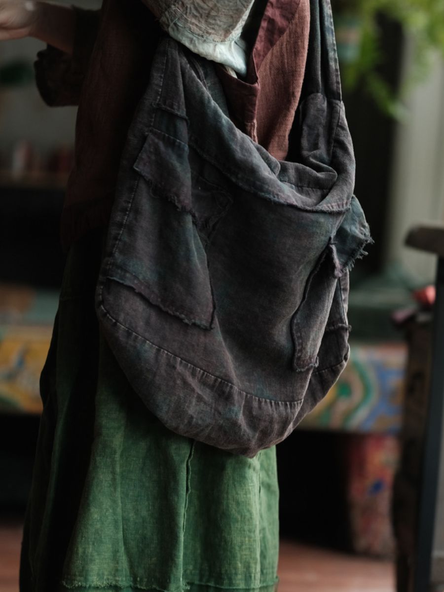 02281 Bolso de hombro vintage de algodón con patchwork verde (copia)