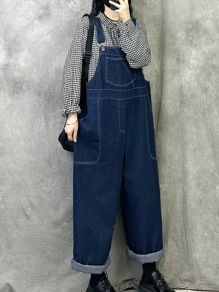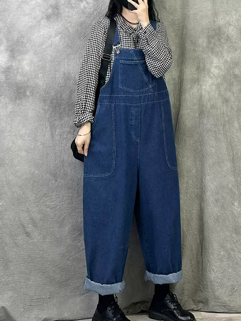 Monos de mezclilla sueltos sólidos de primavera Retro para mujer