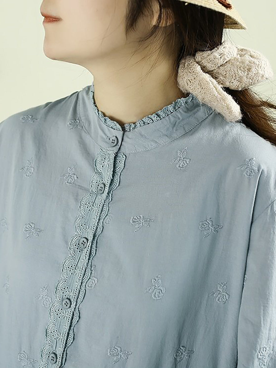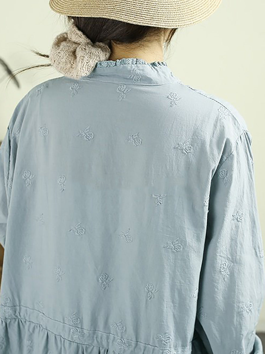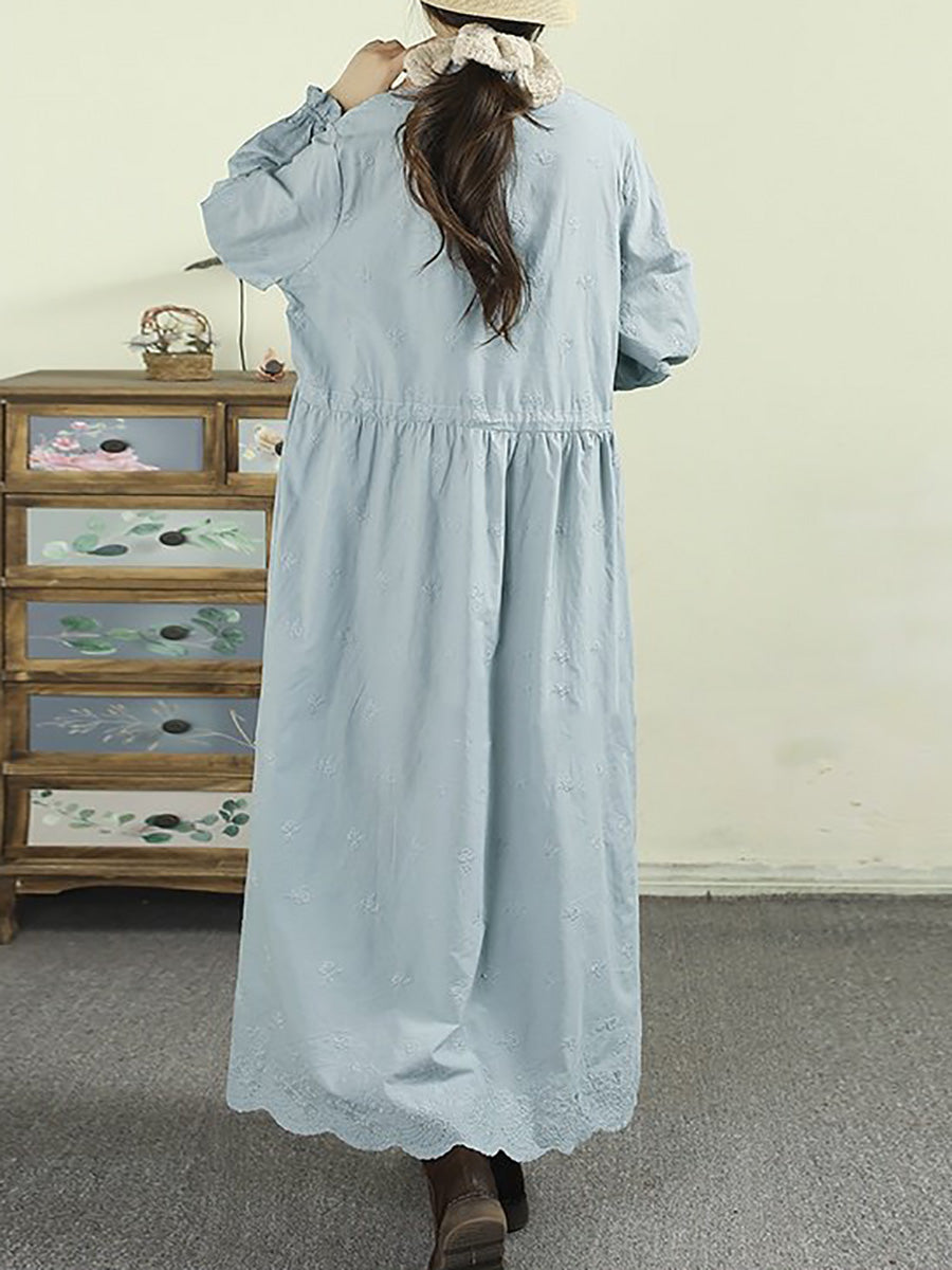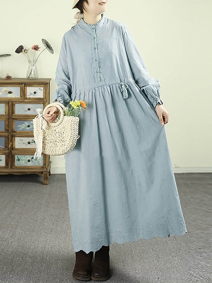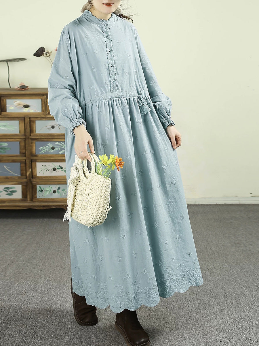 Vestido de primavera para mujer, 100 % algodón, con cuello alto y bordado artístico