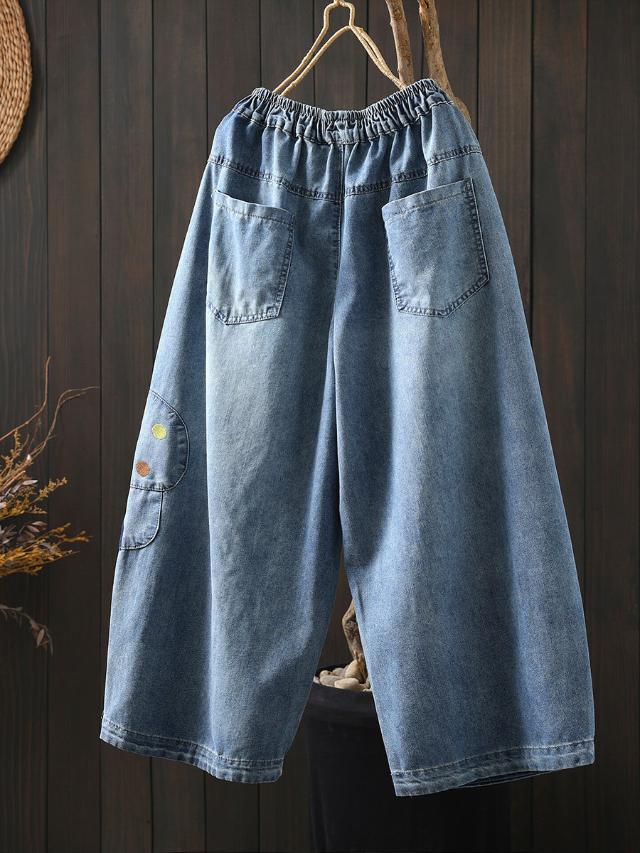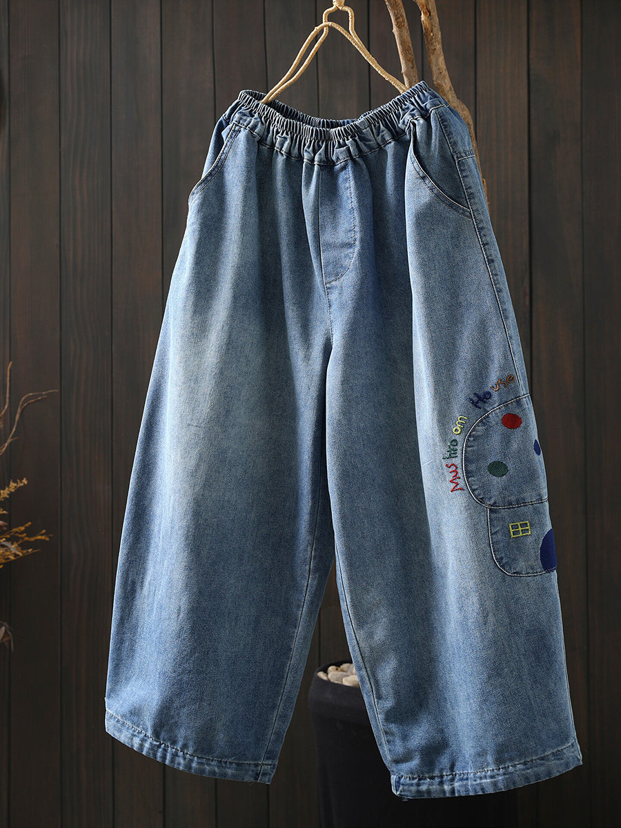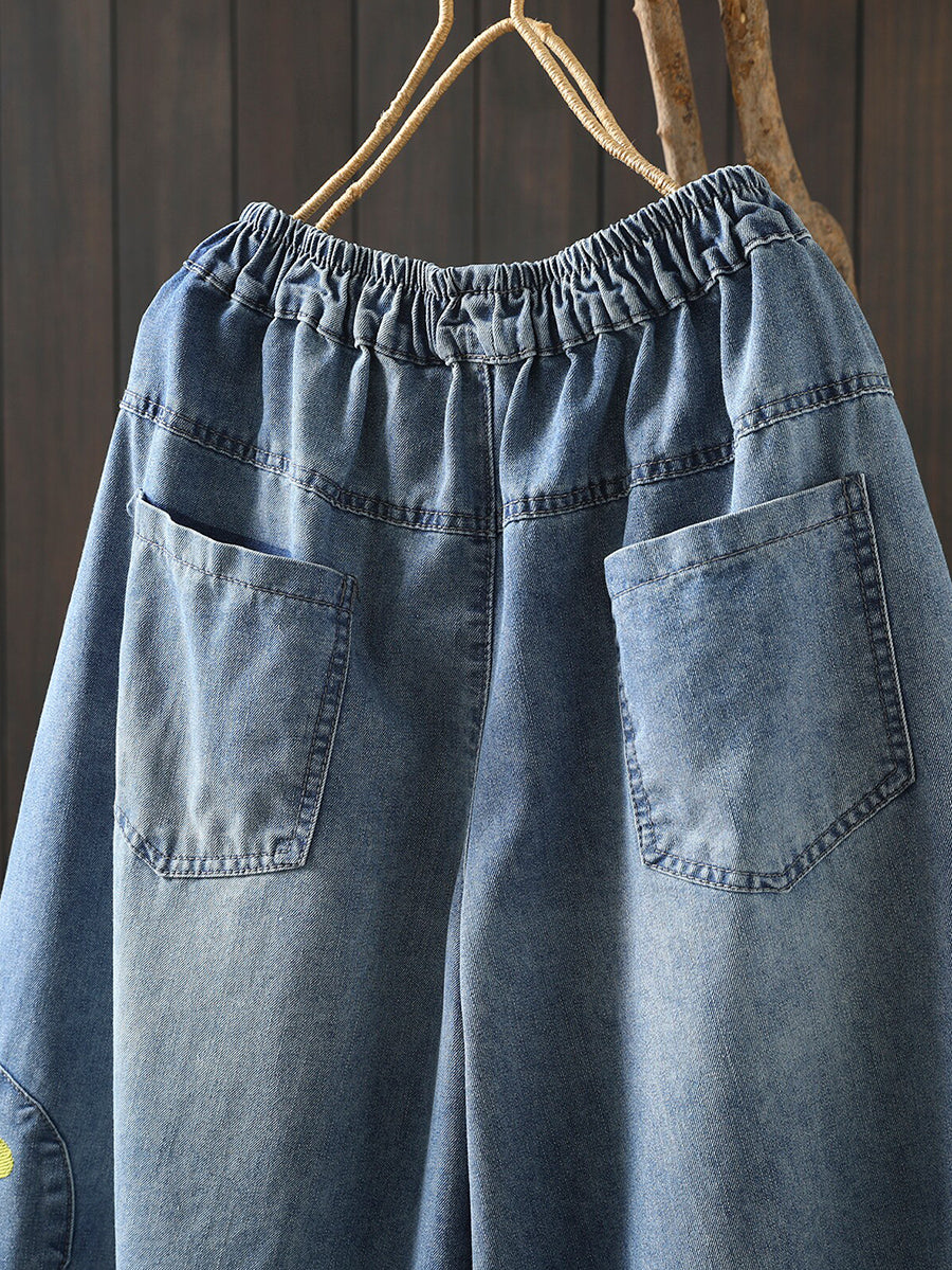 Pantalones anchos de mezclilla con bordado retro de primavera para mujer