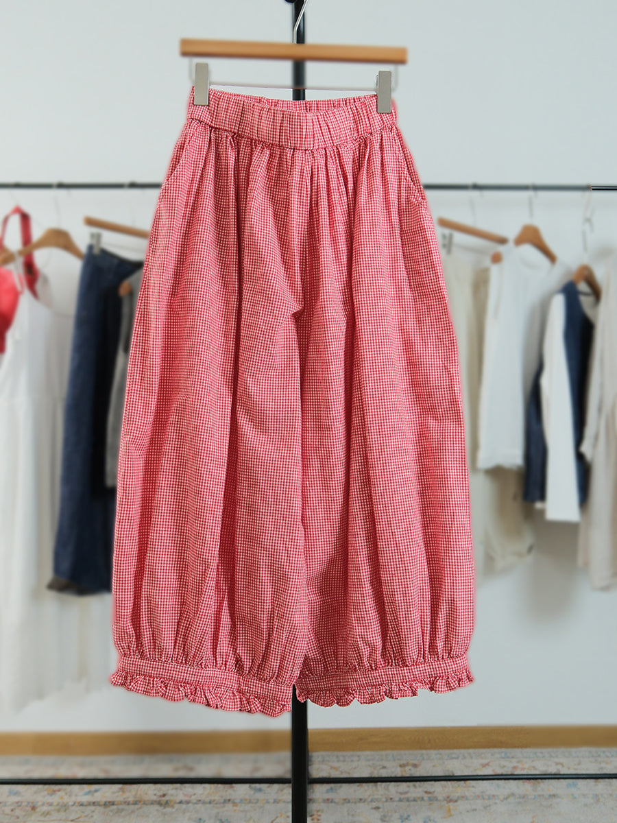 Pantalones anchos de mujer con estampado de rejilla y estilo artístico para verano.