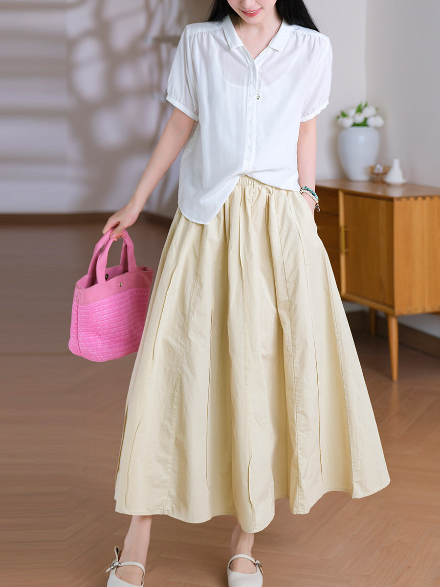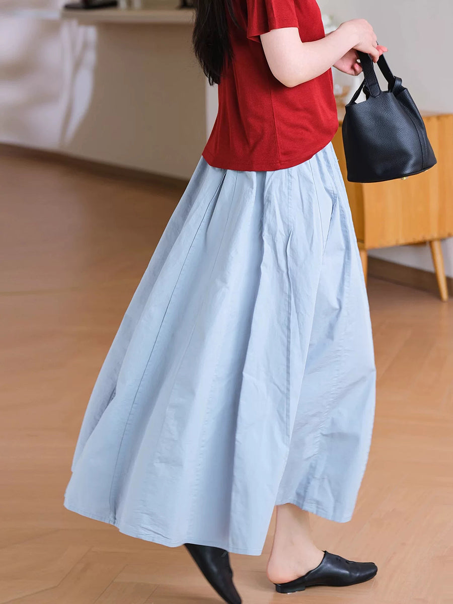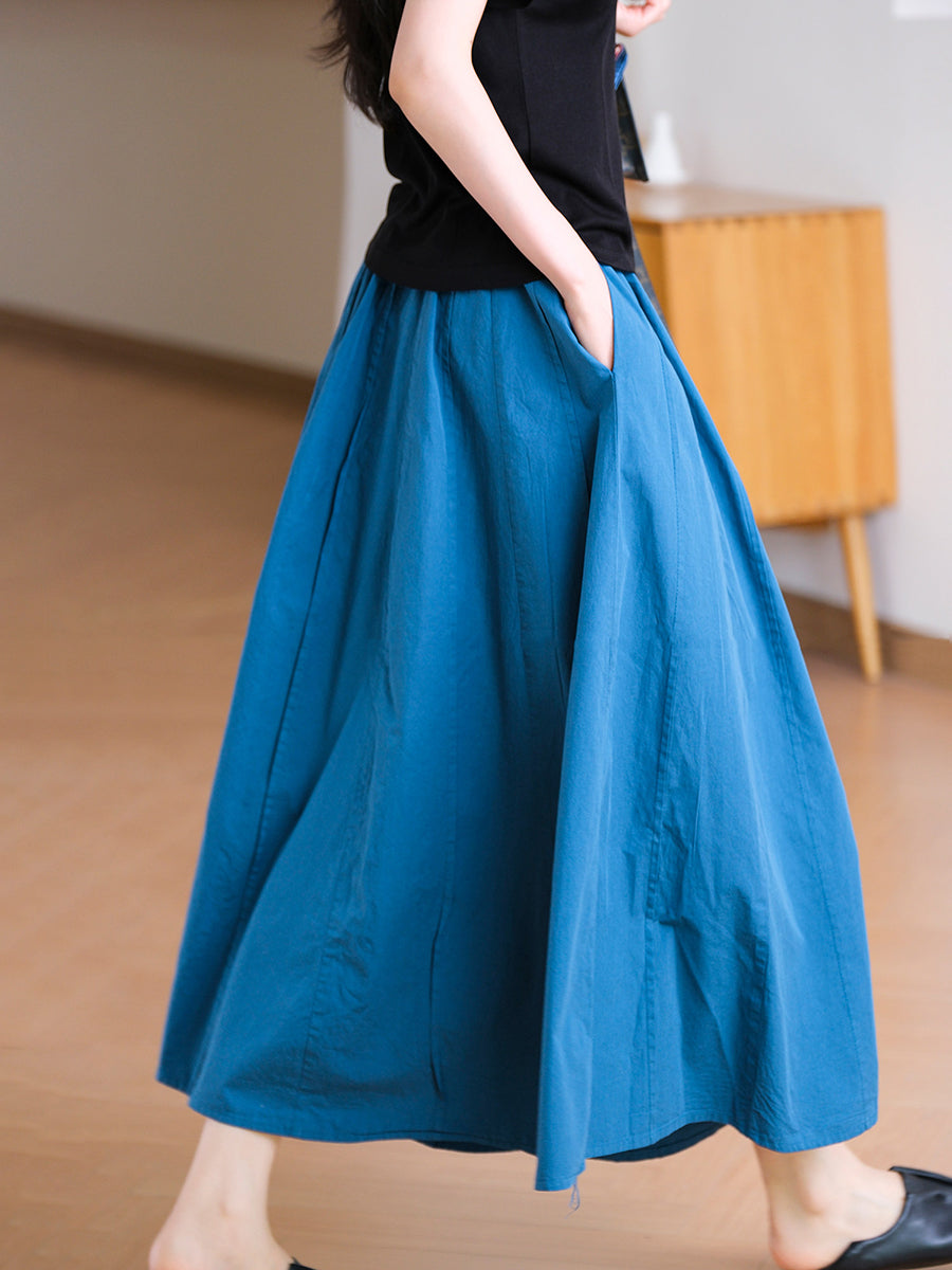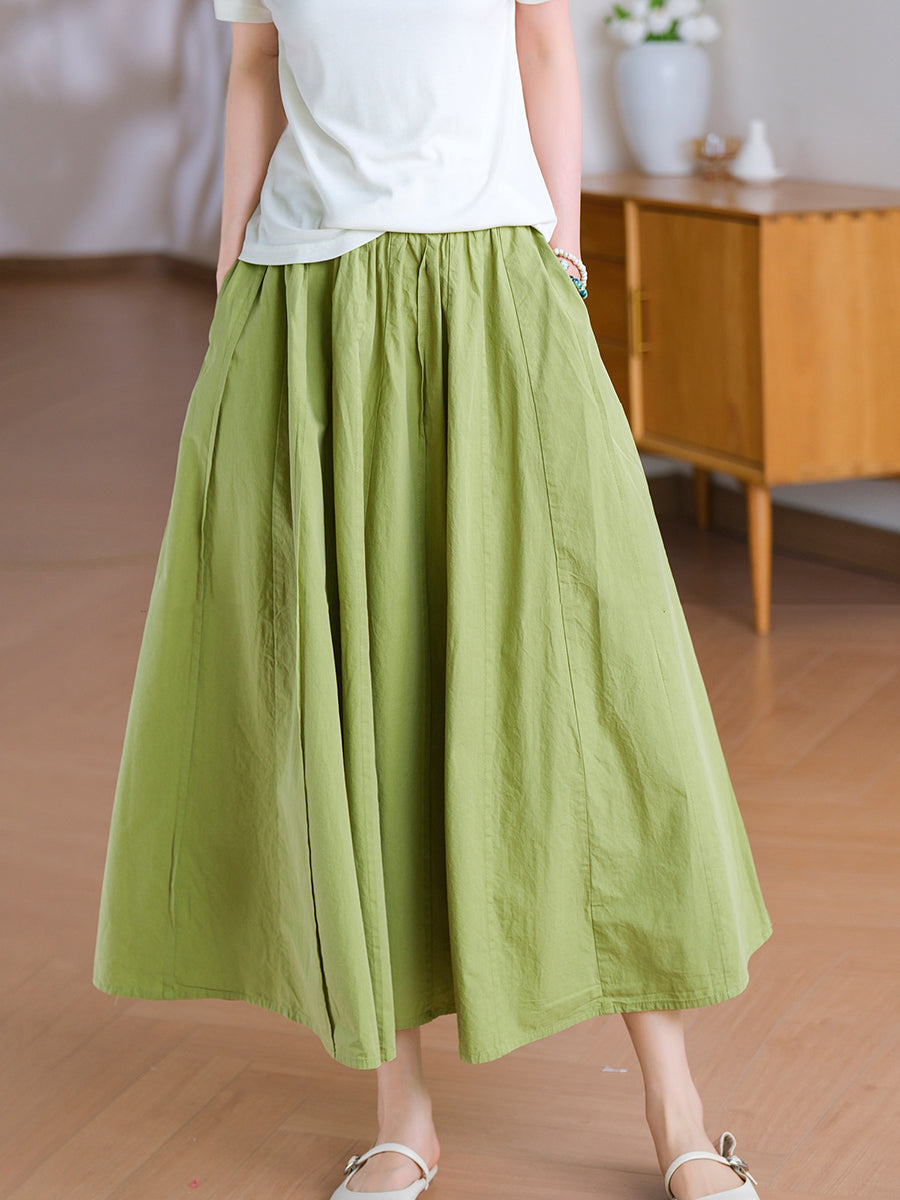 Falda casual de verano para mujer, color liso, 100% algodón.