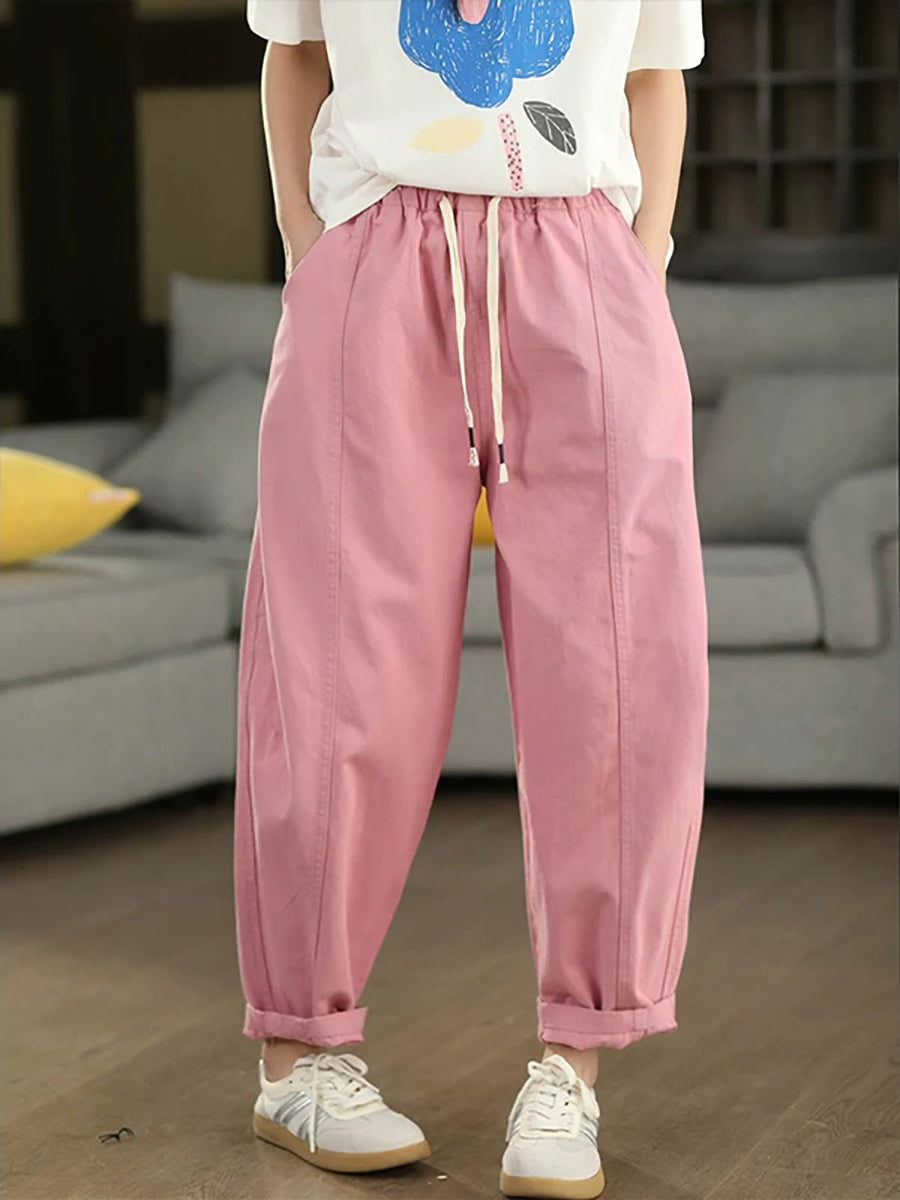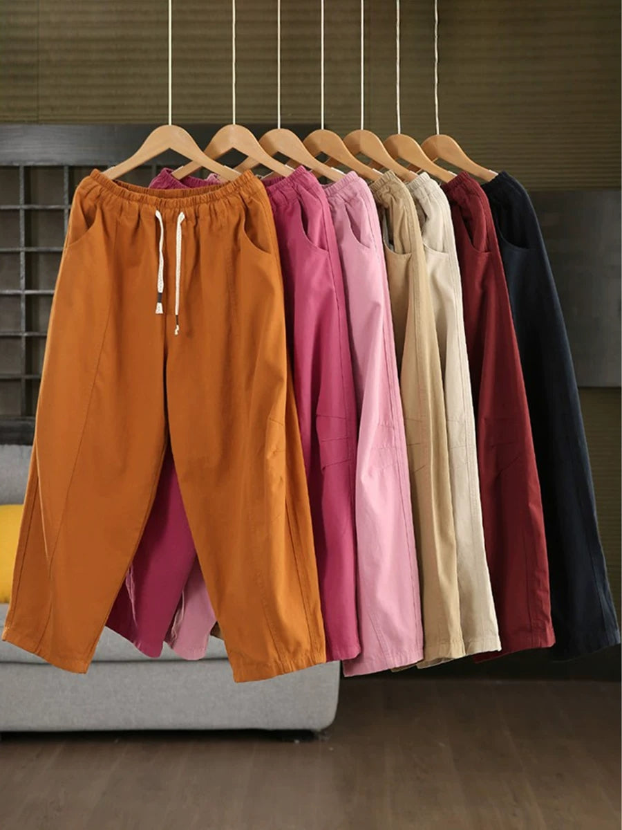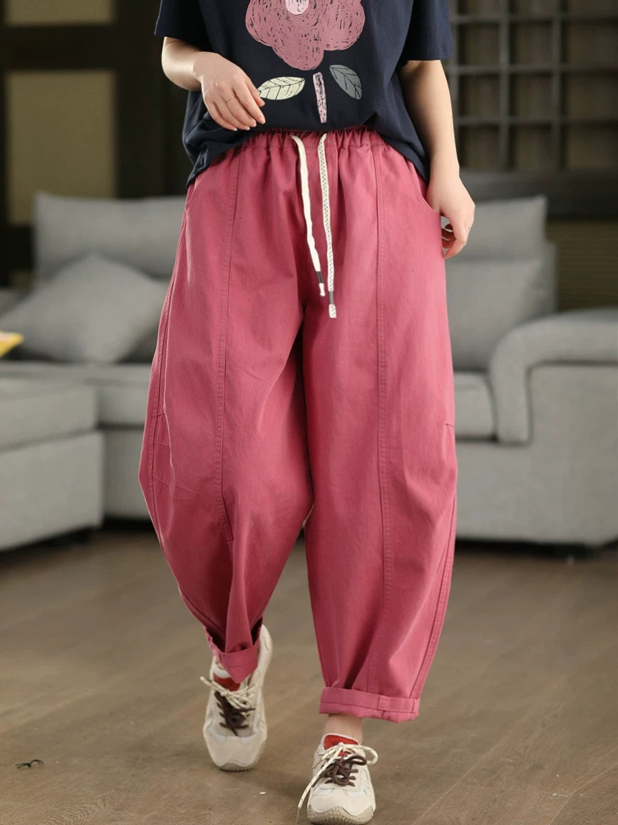 Pantalones harem de algodón de color liso para mujer, ideales para el verano.
