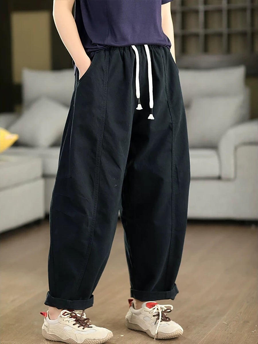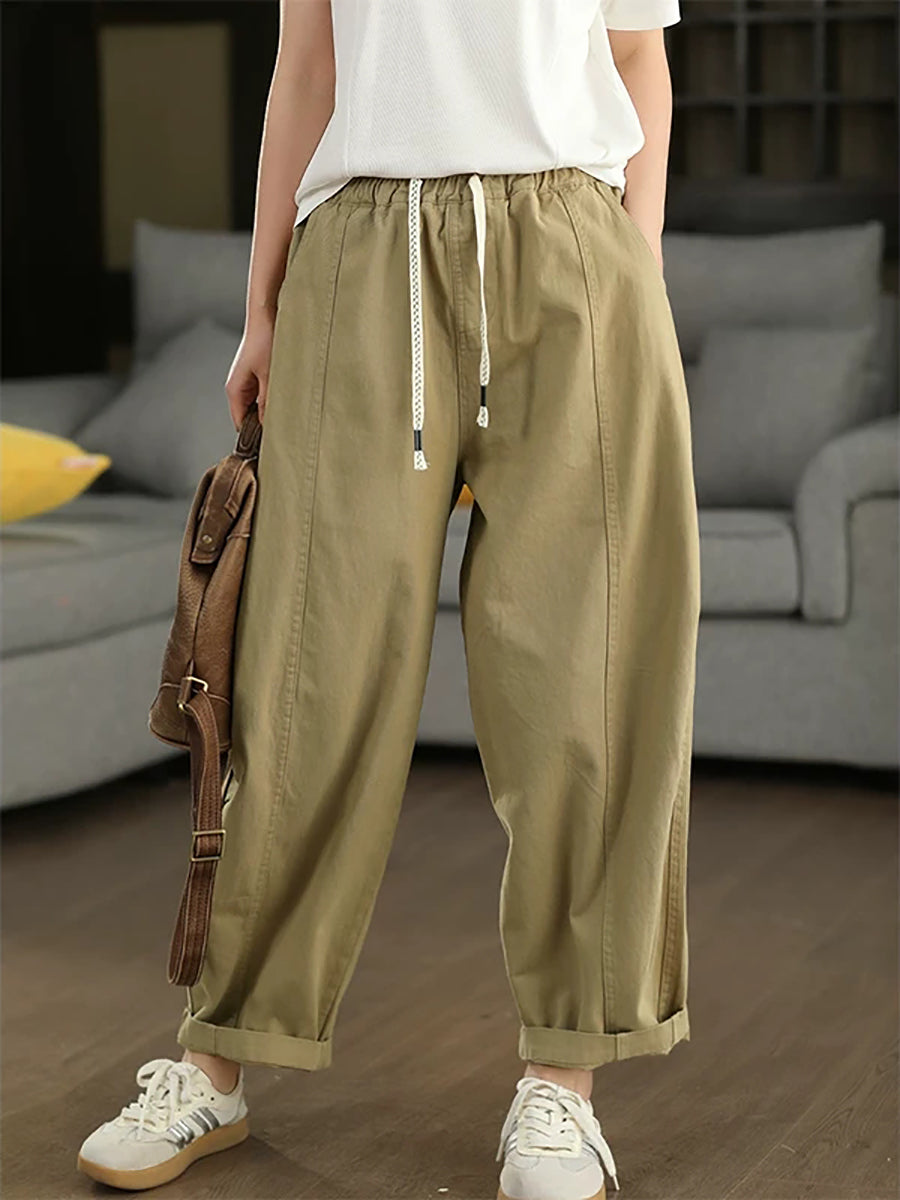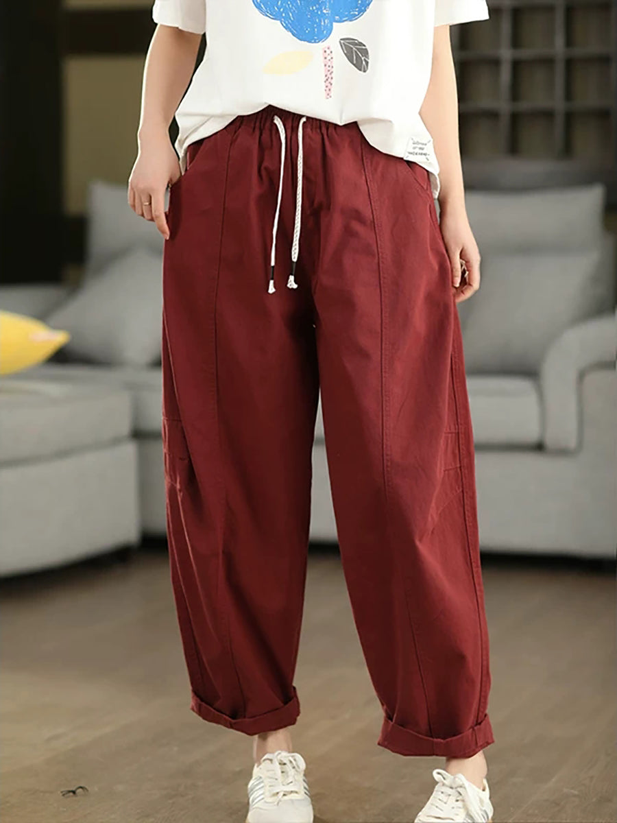 Pantalones harem de algodón de color liso para mujer, ideales para el verano.