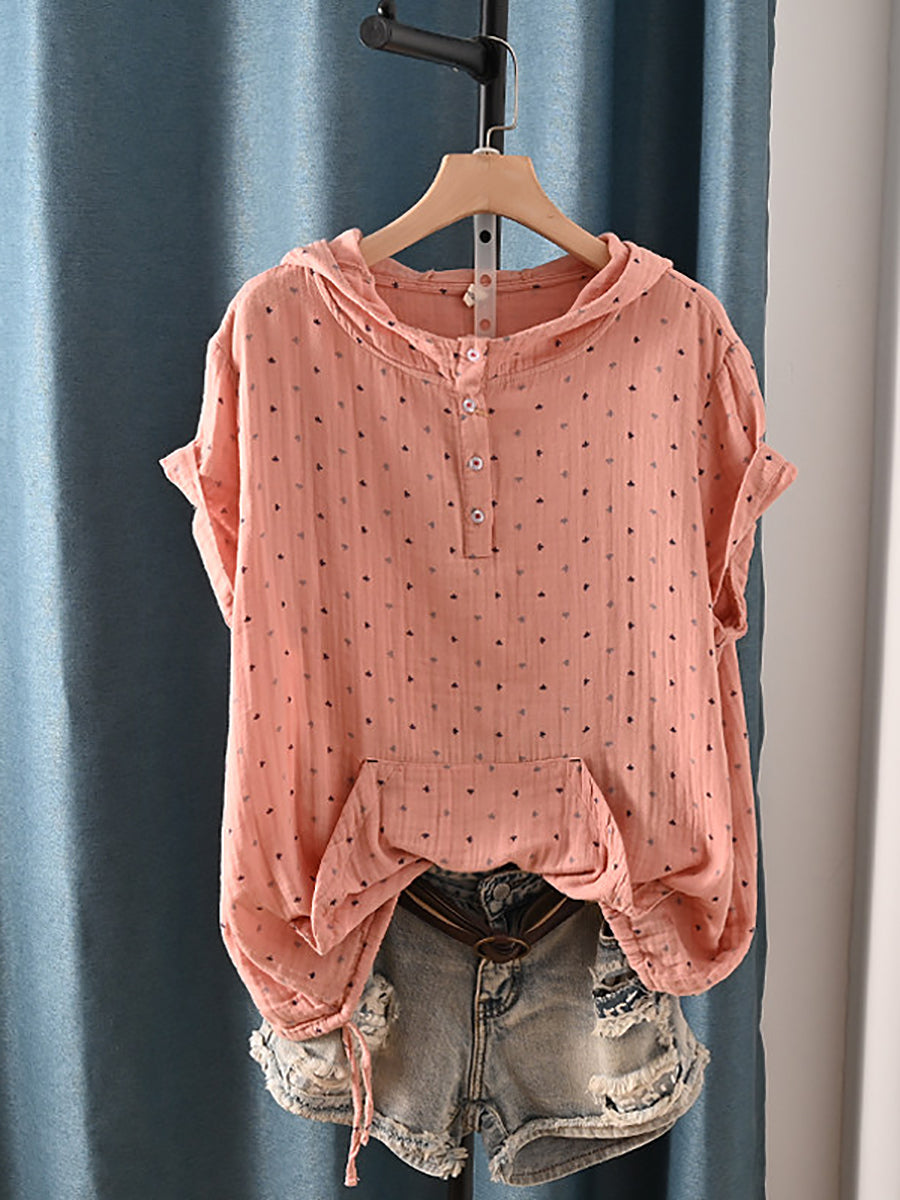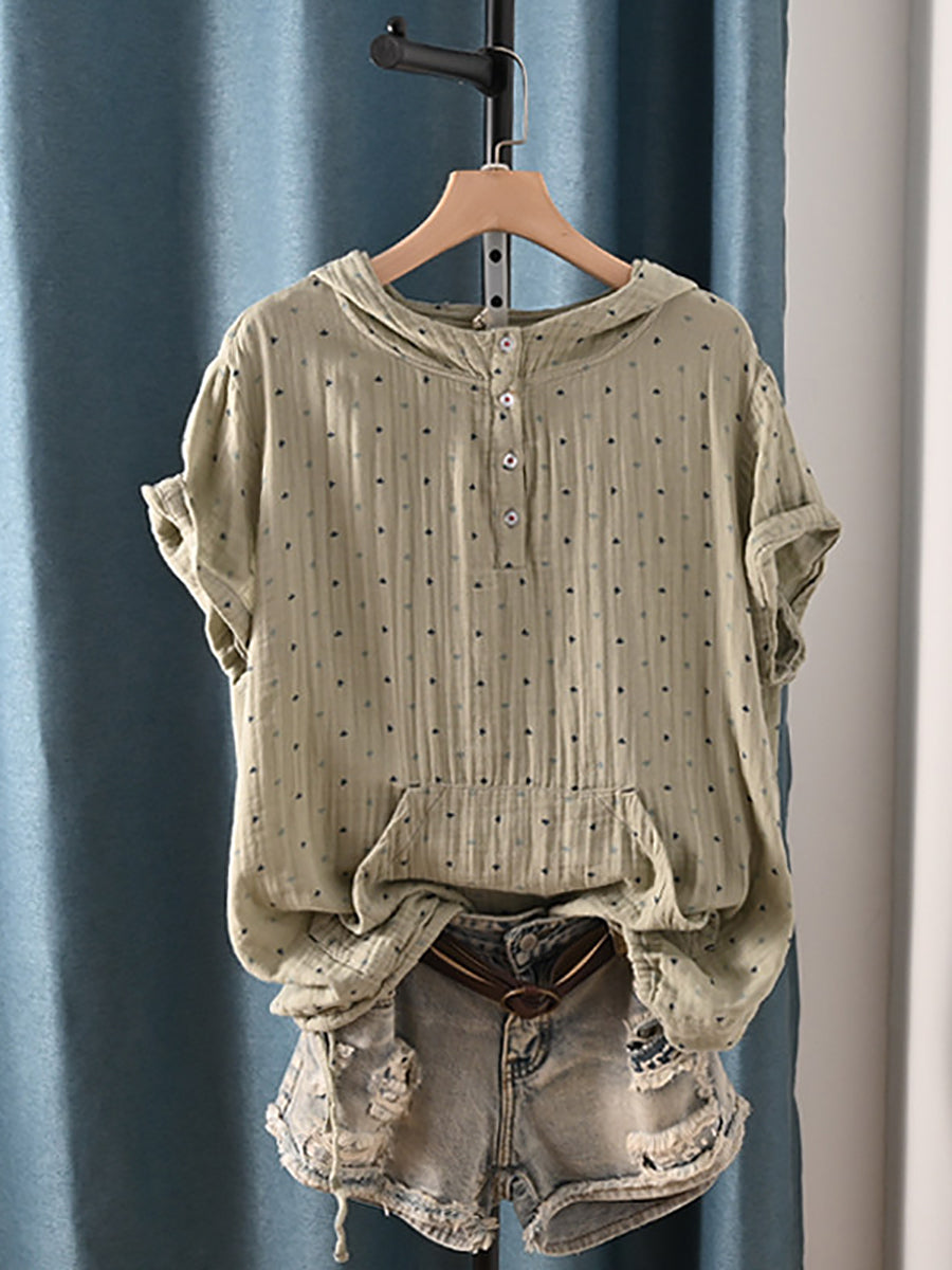 Sudadera con capucha de verano retro triangular para mujer, 100 % algodón.