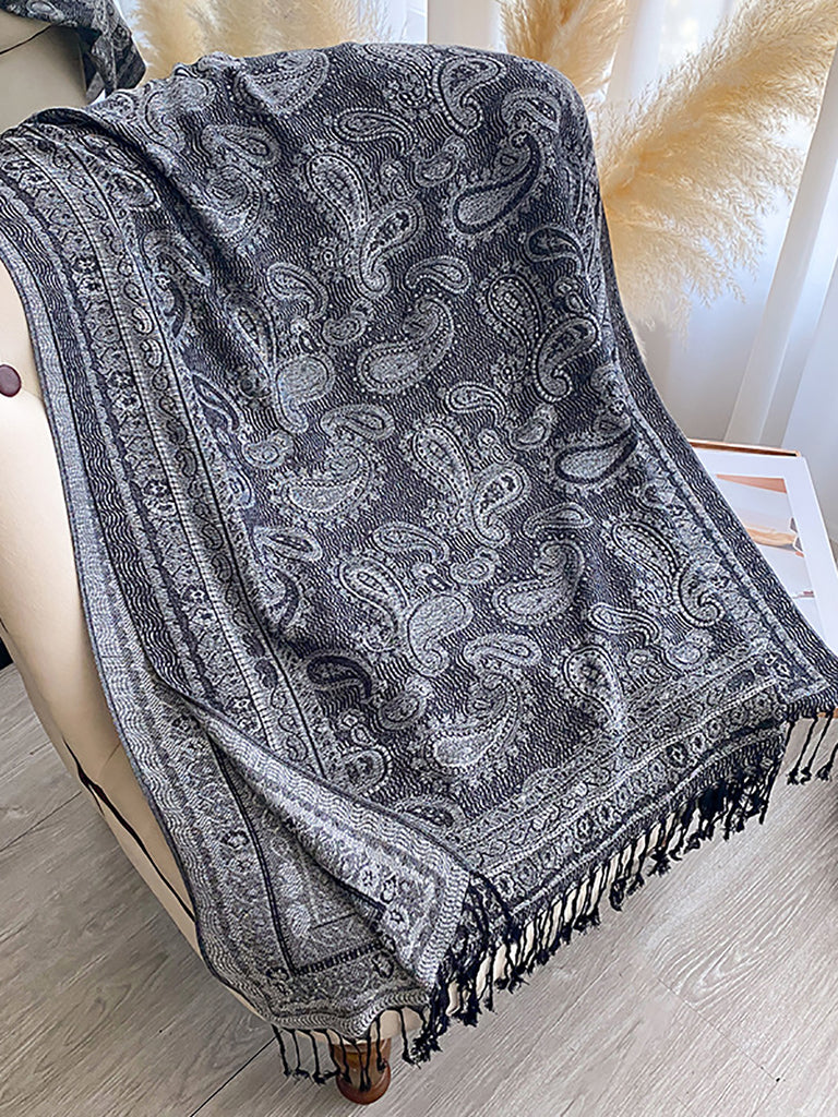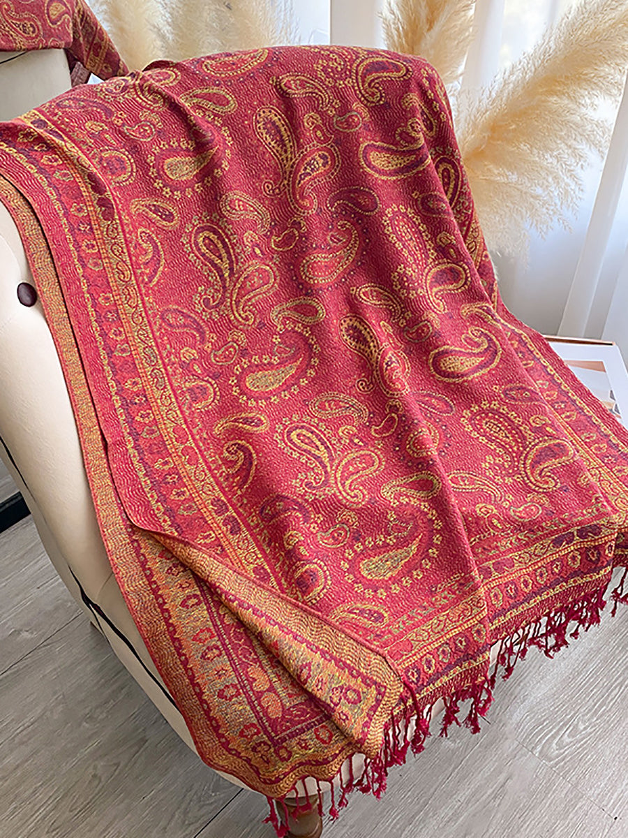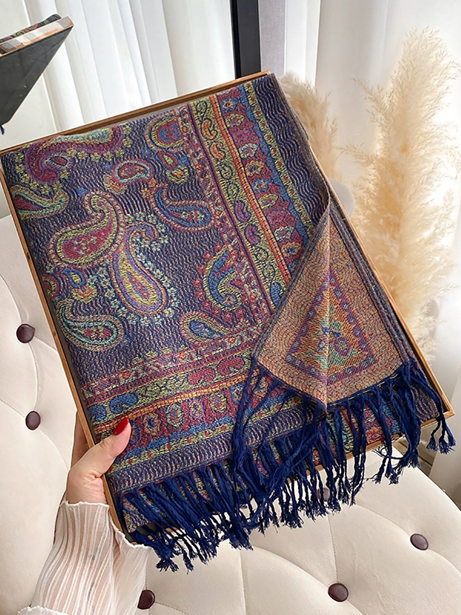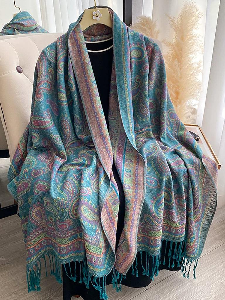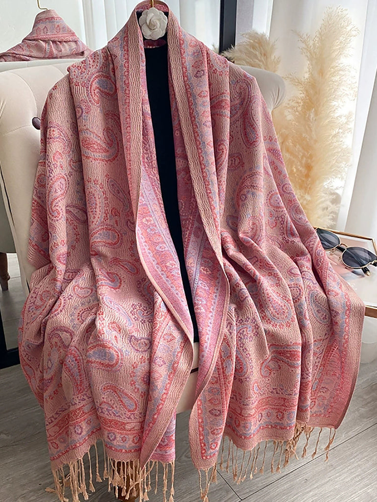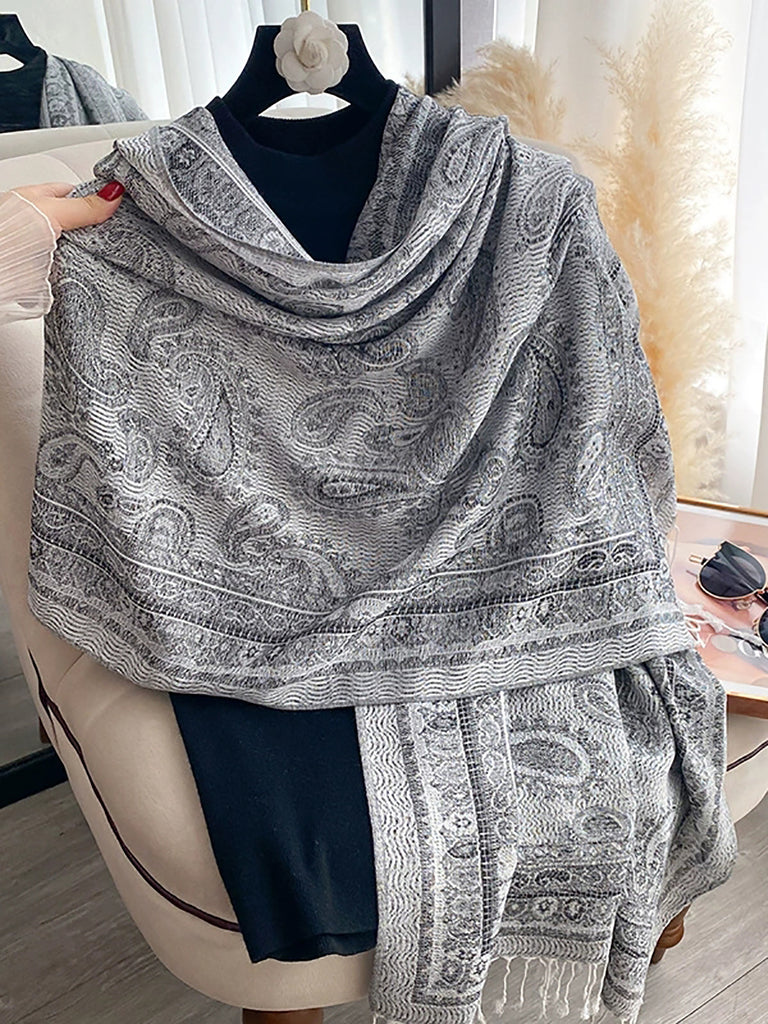 Bufanda chal con borlas de jacquard y flores de invierno para mujer