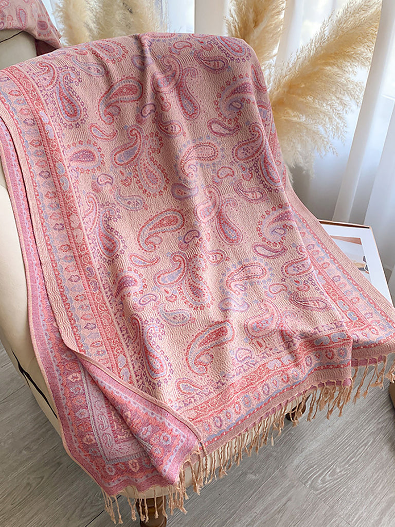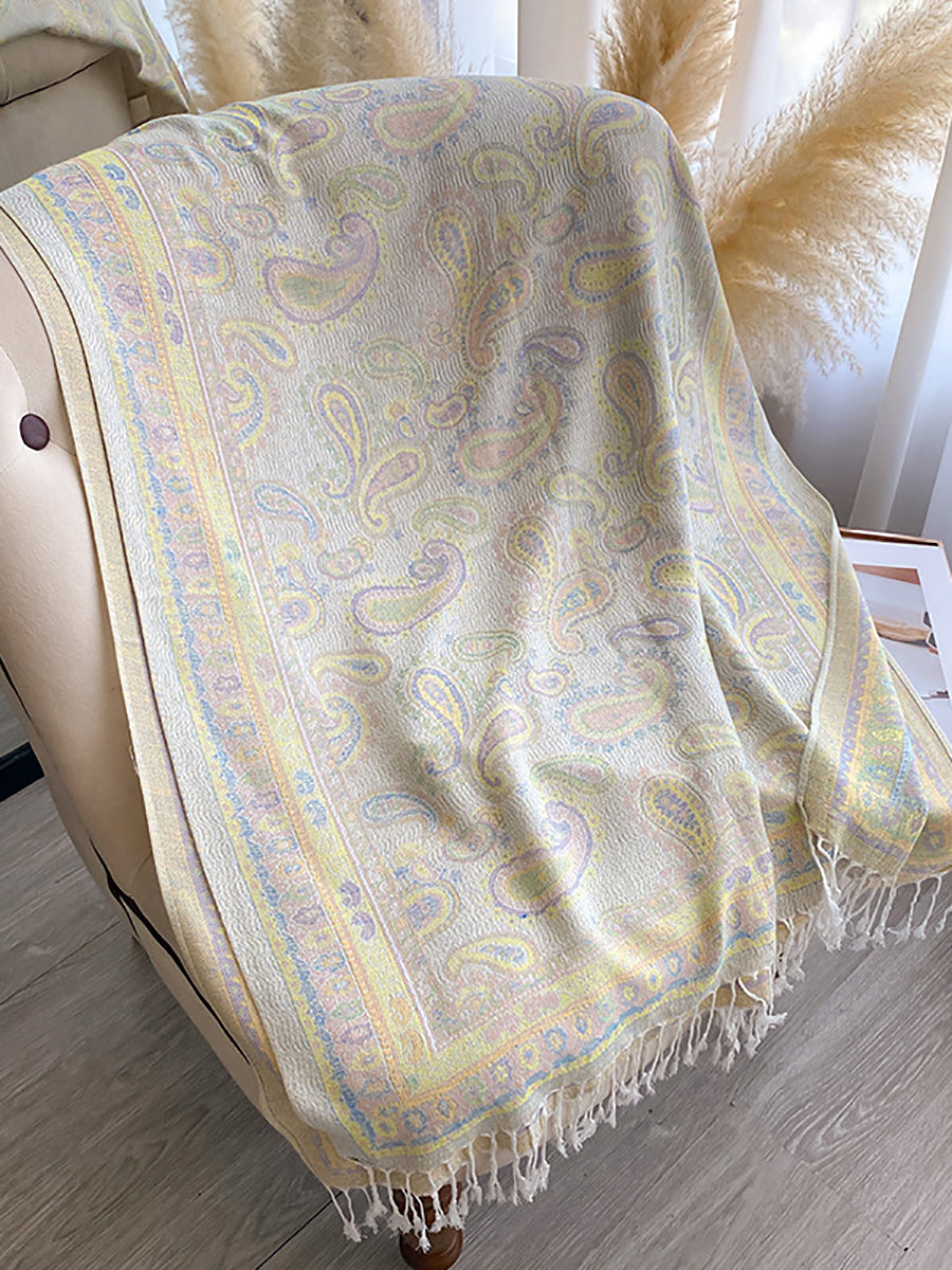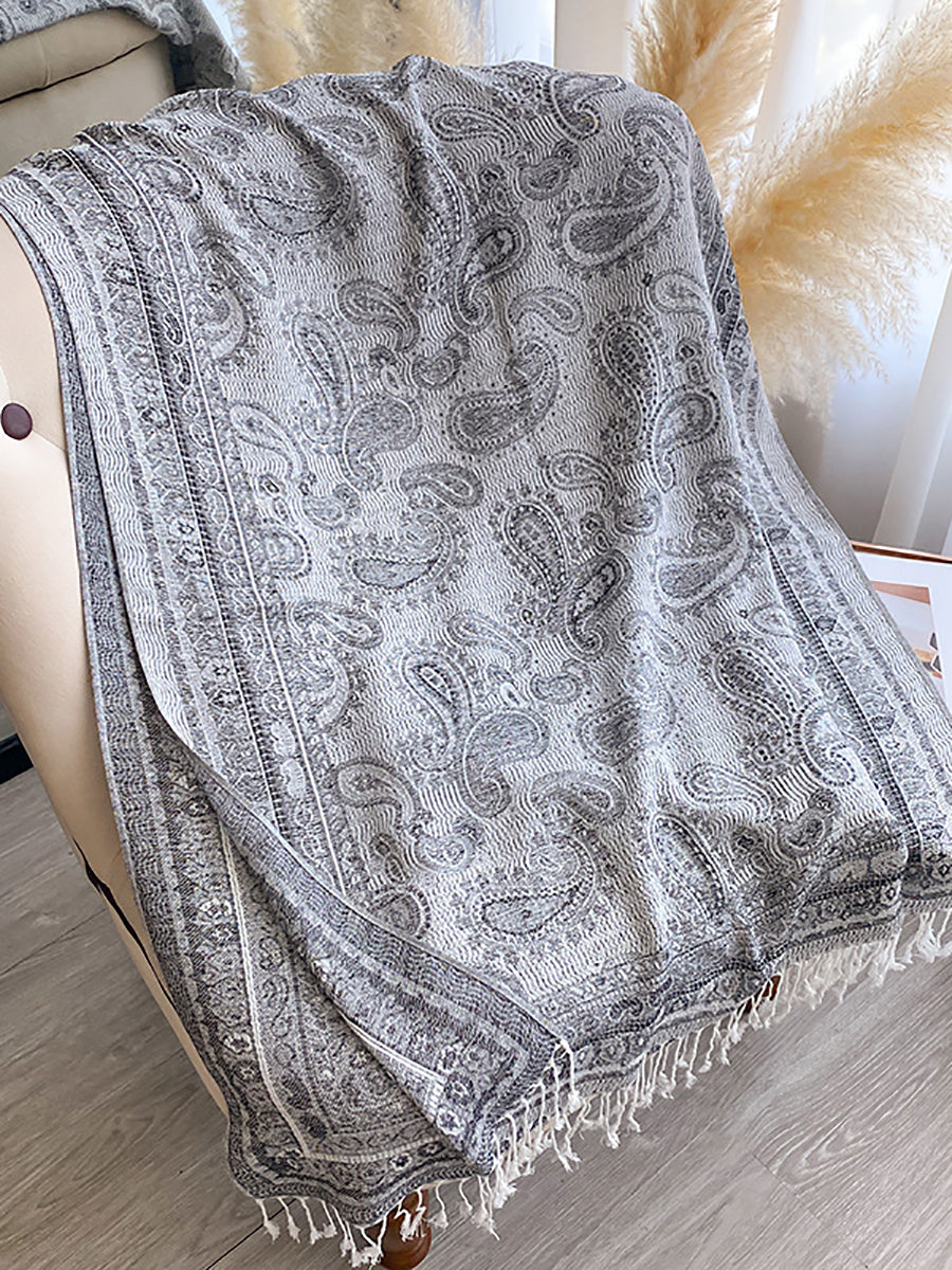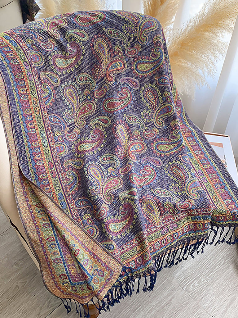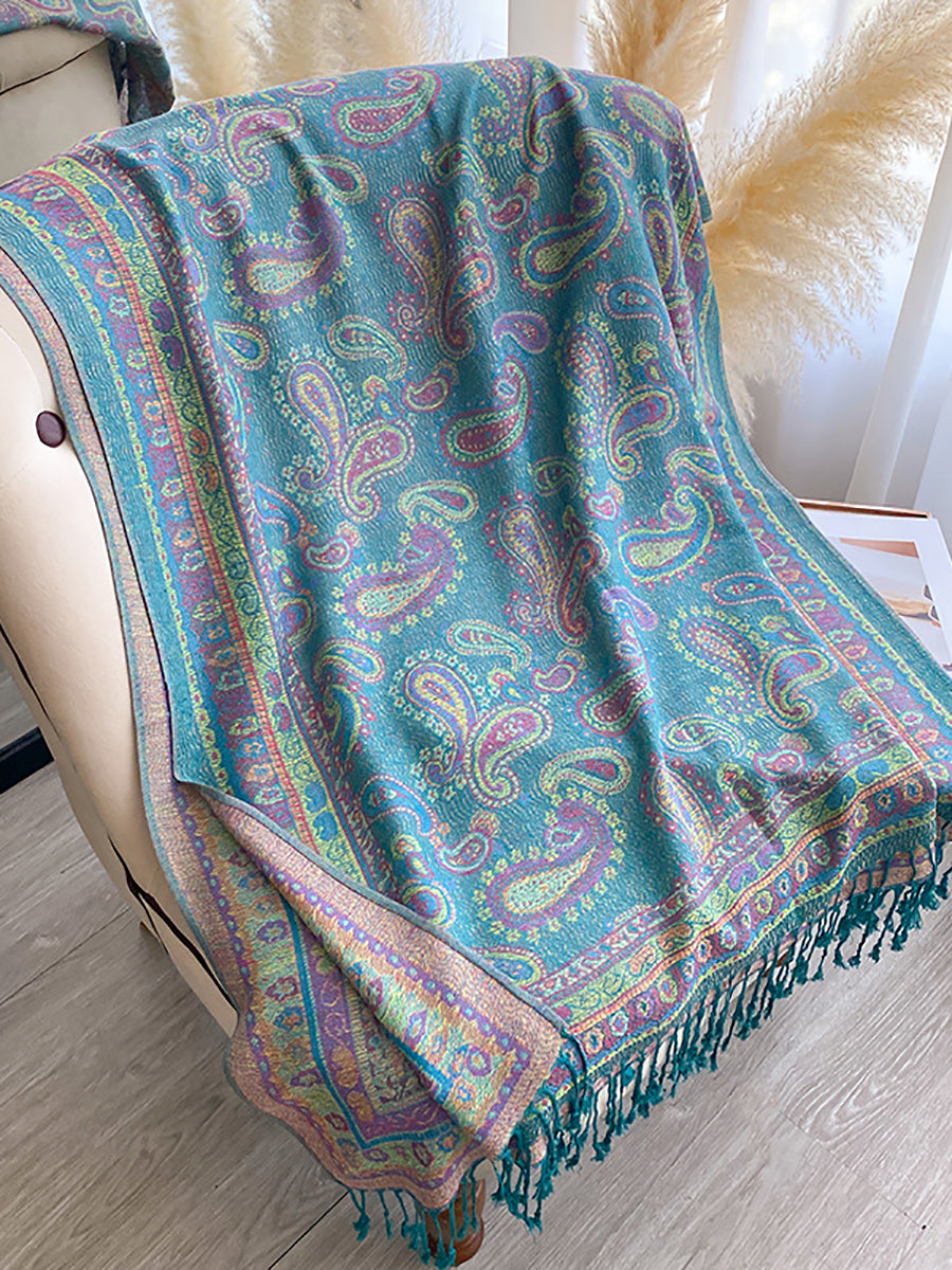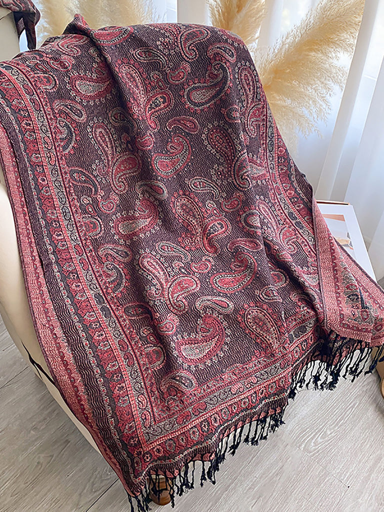Bufanda chal con borlas de jacquard y flores de invierno para mujer