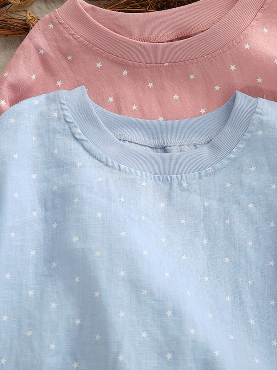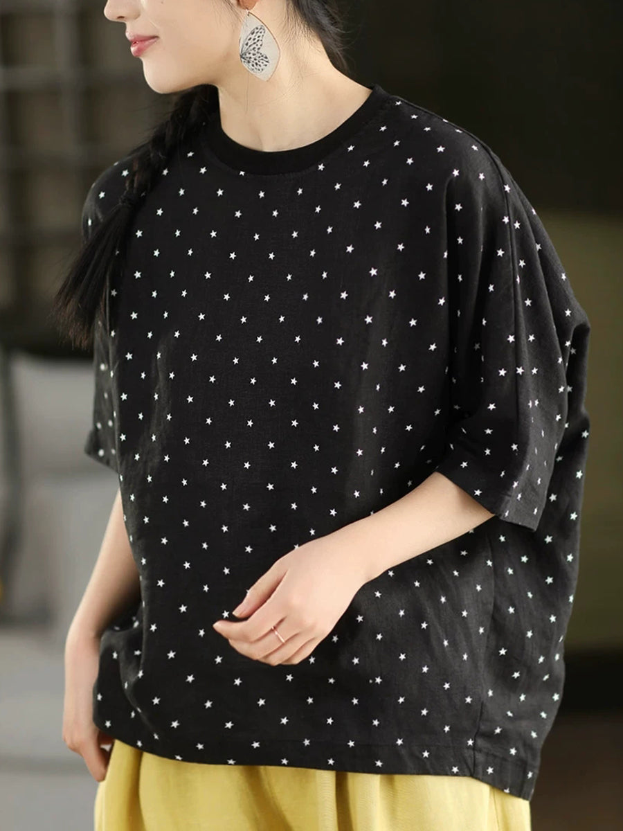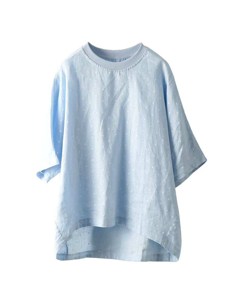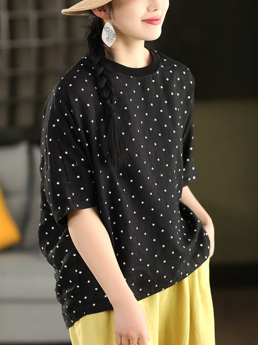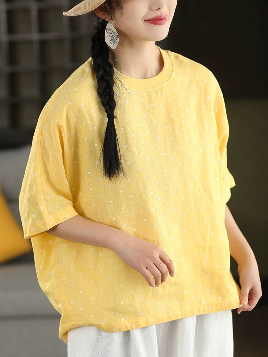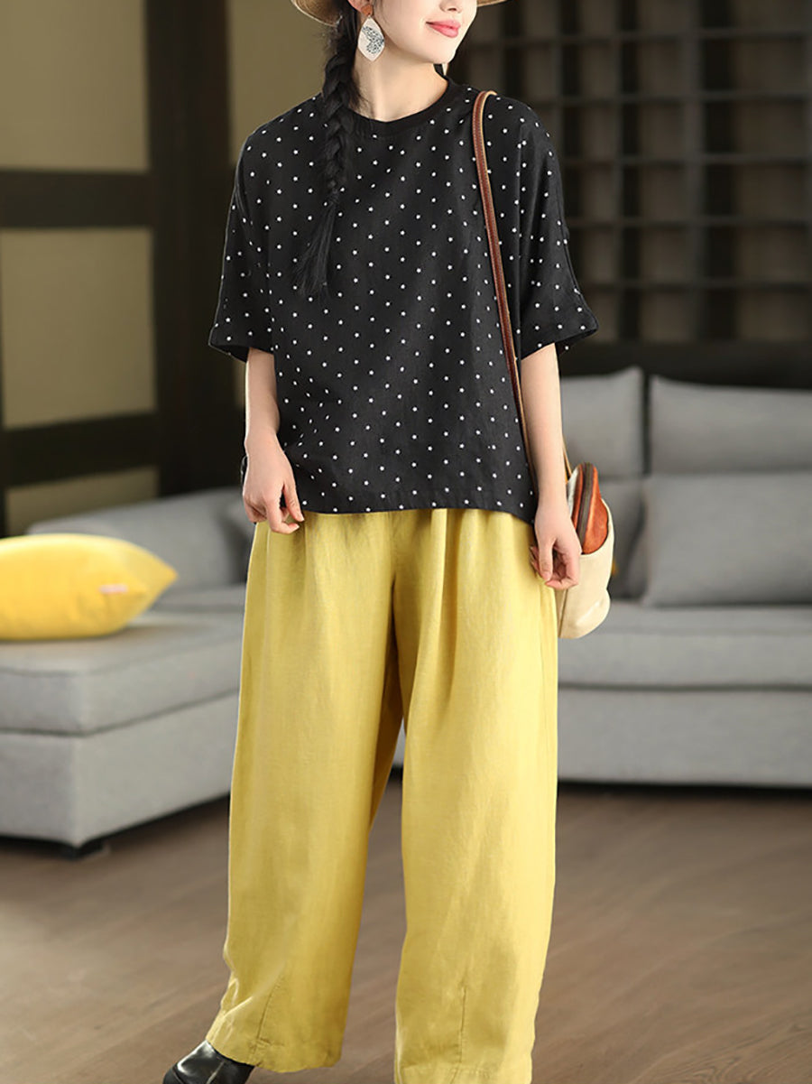 Chemisier d'été à pois artistiques pour femme, col rond, 100 % lin