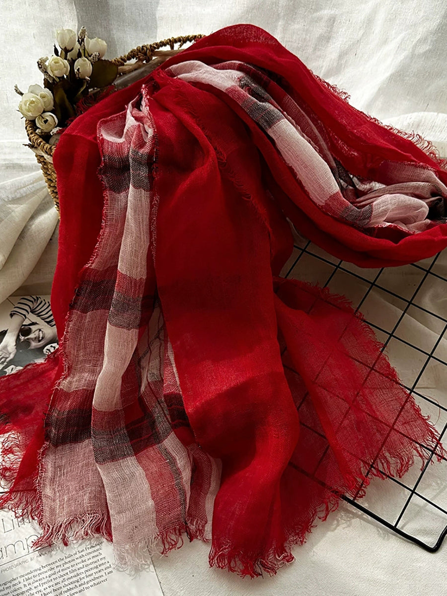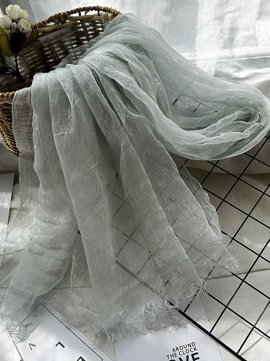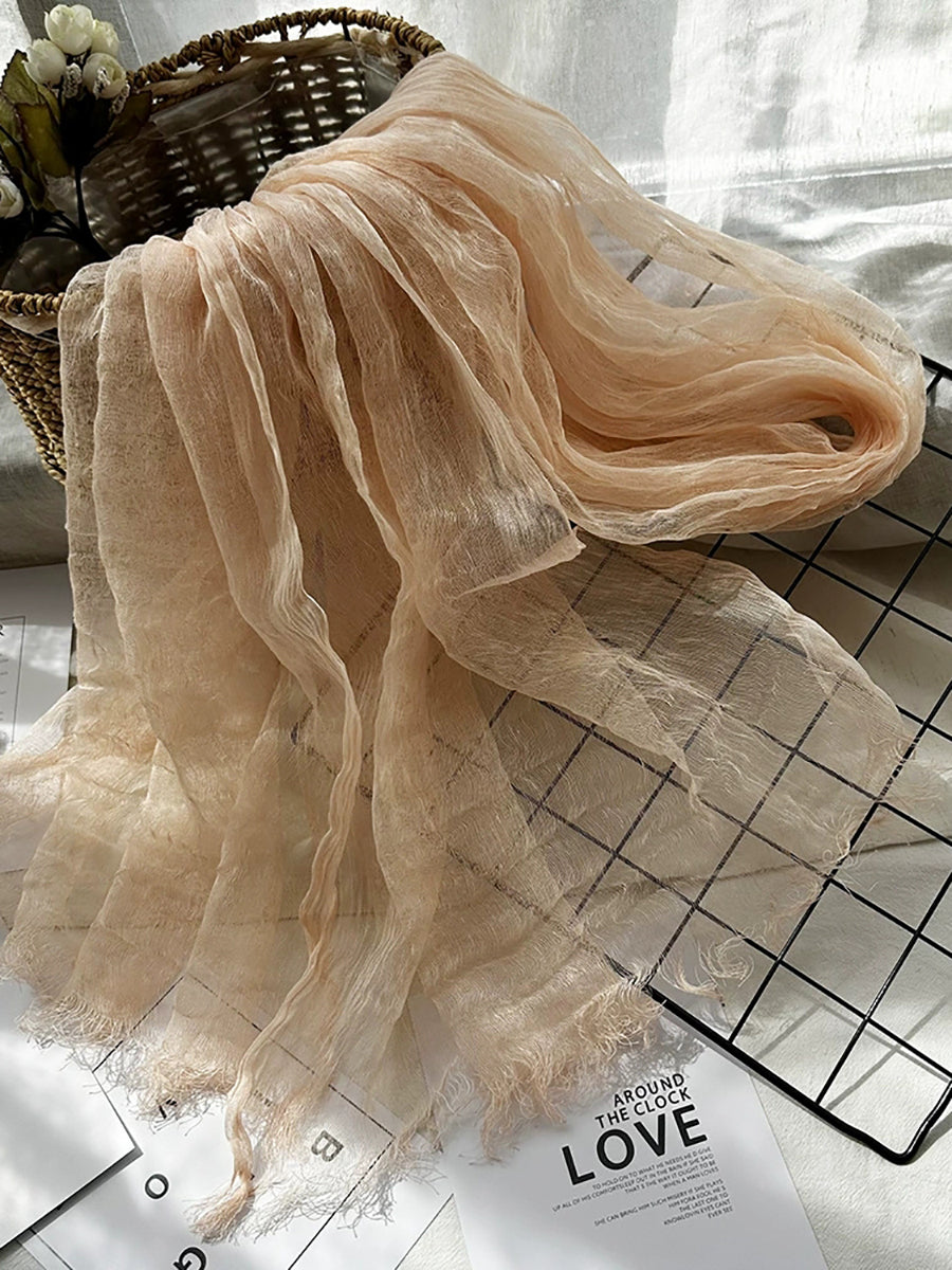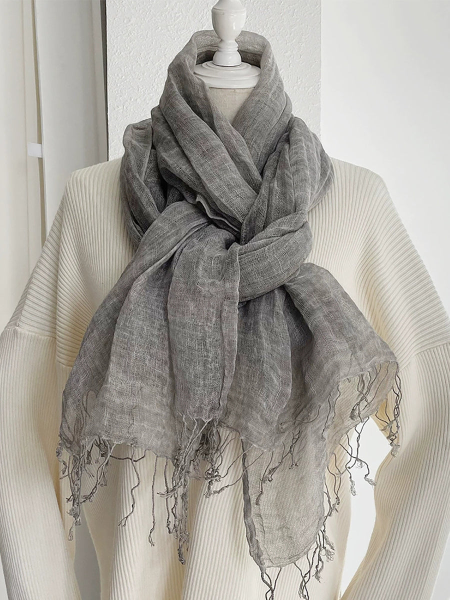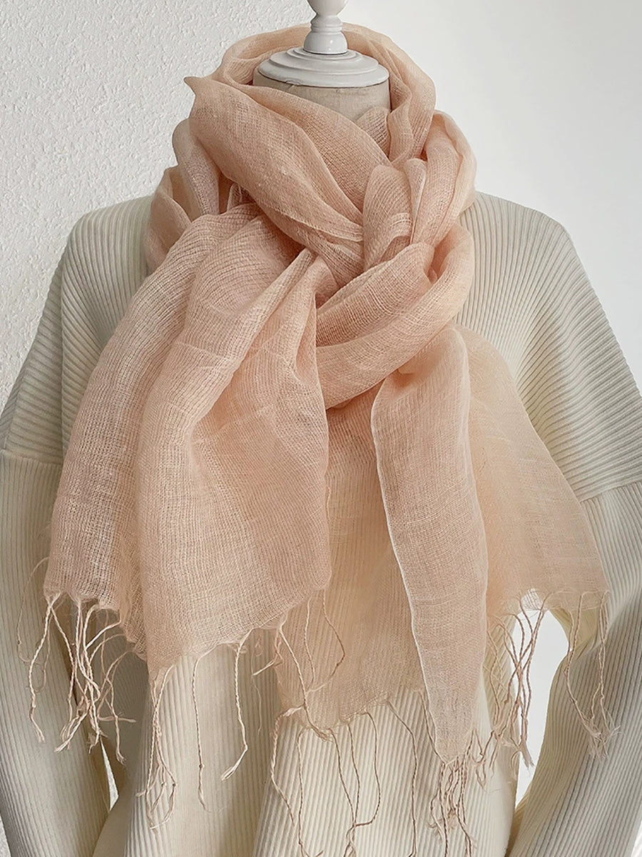 Châle/écharpe fine à pompons pour femme, couleur unie