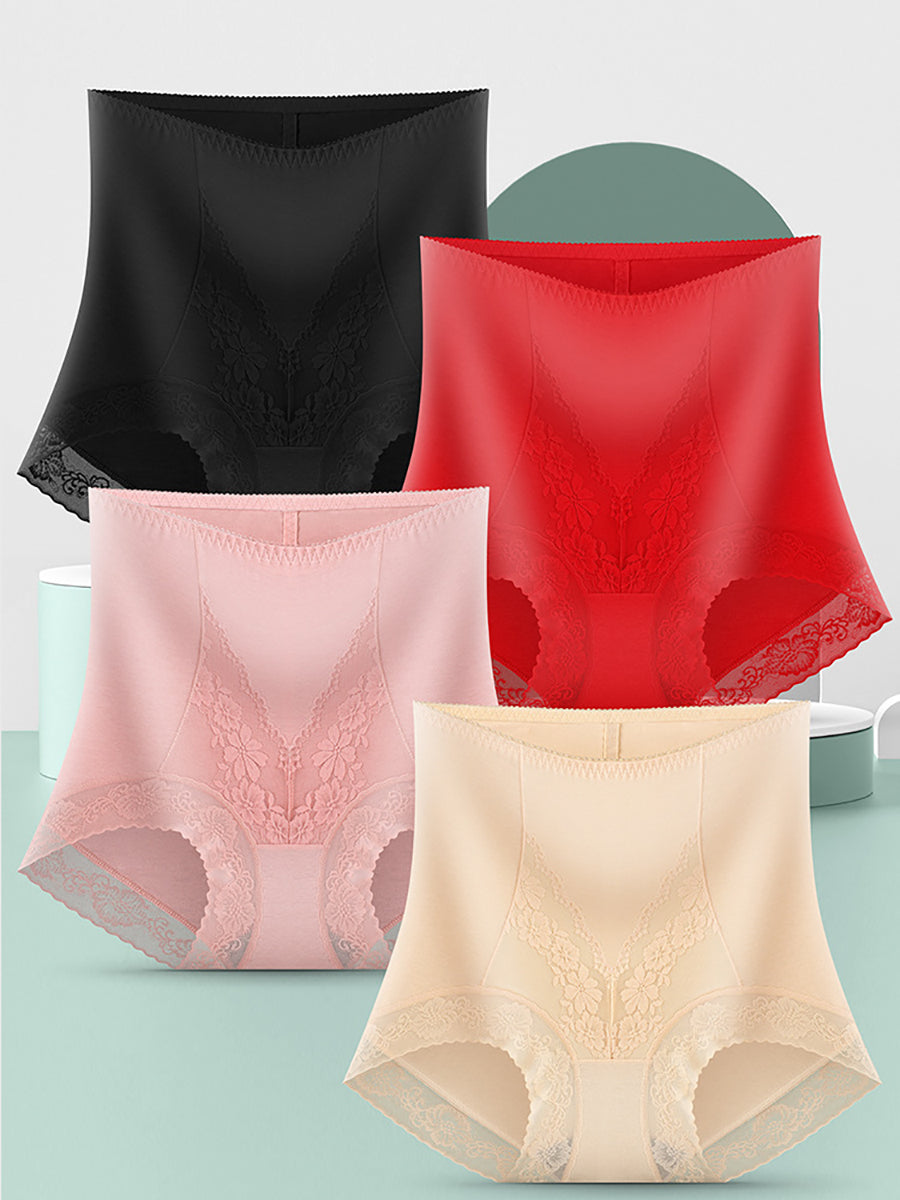 Ensemble de 4 pièces de lingerie féminine en dentelle artistique taille haute