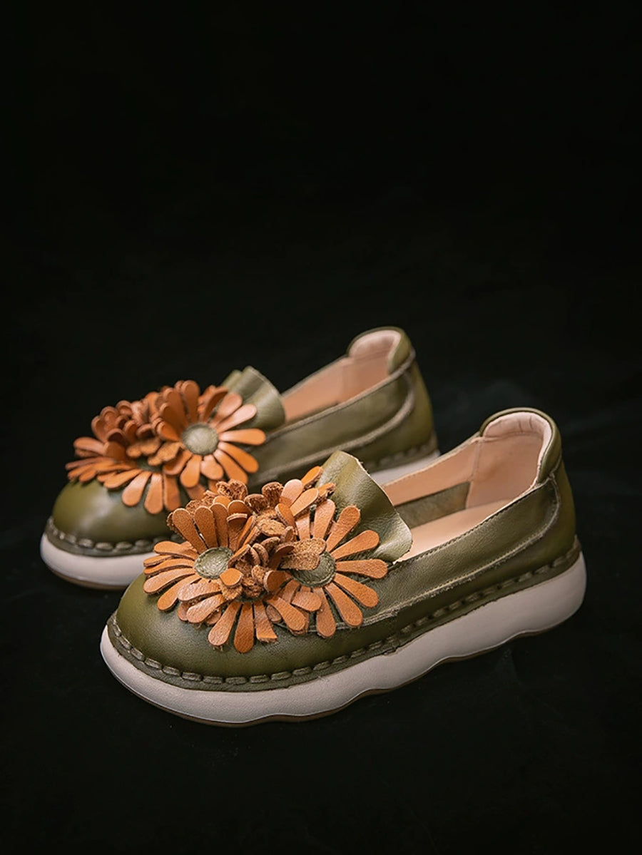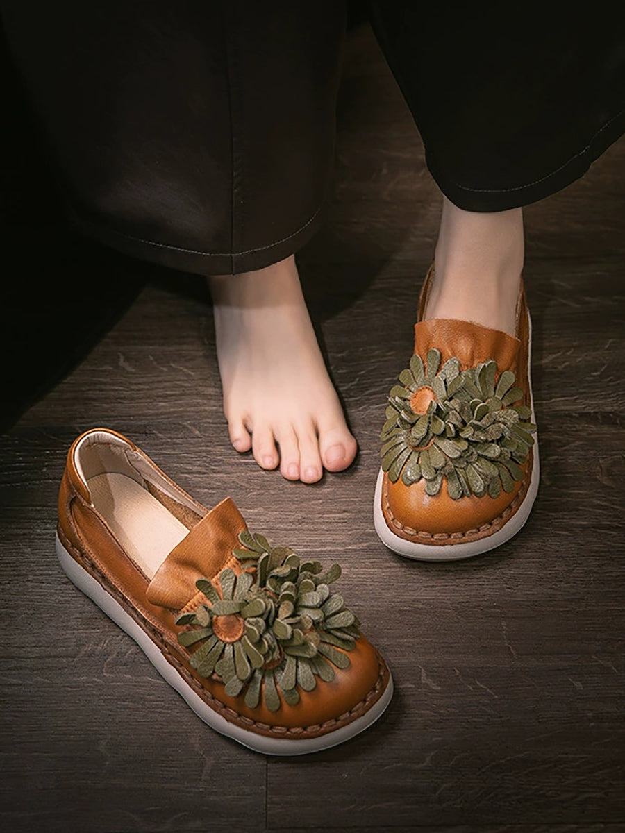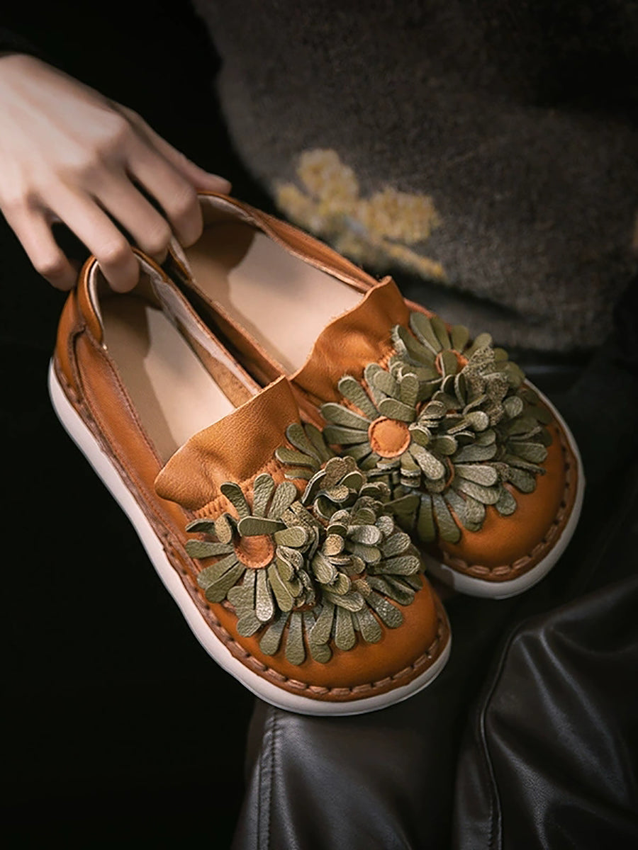 Chaussures fleuries printanières en cuir véritable pour femmes