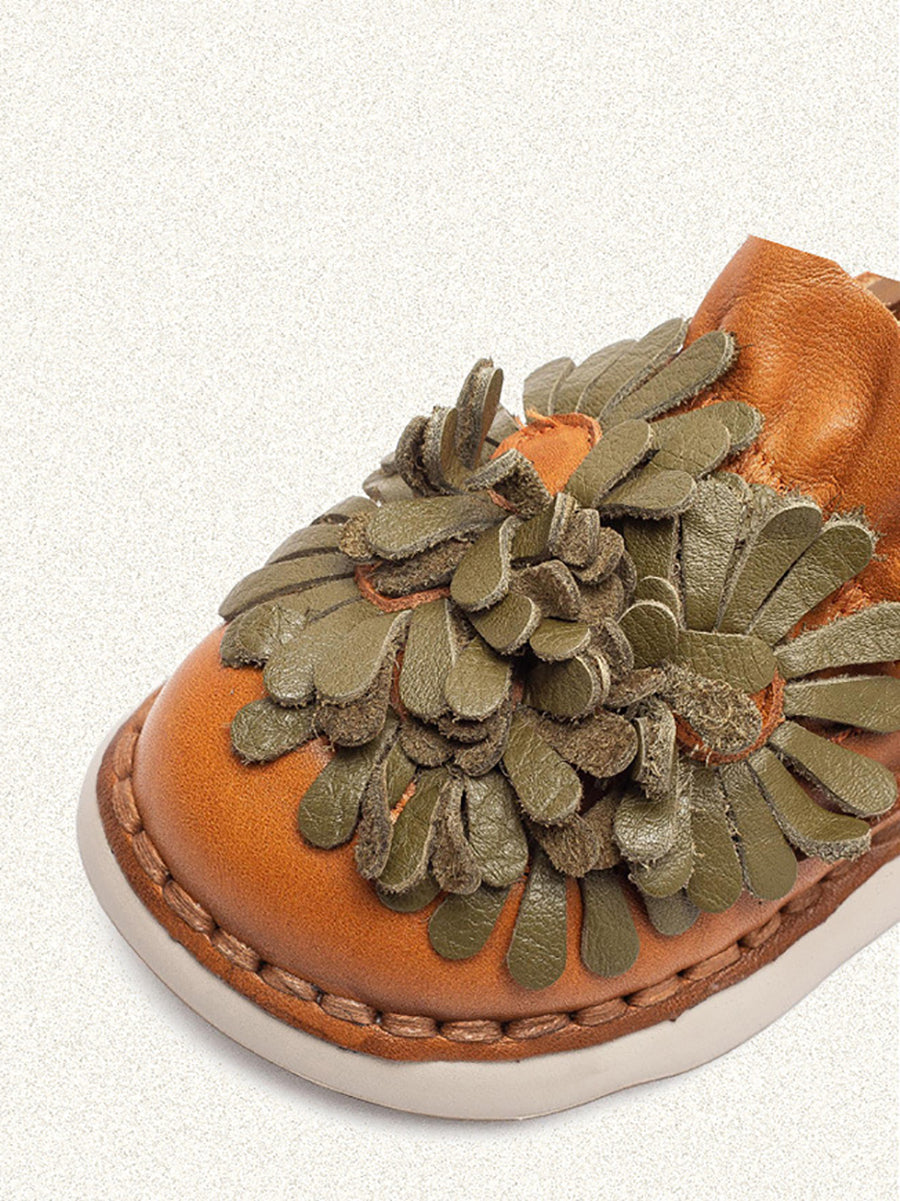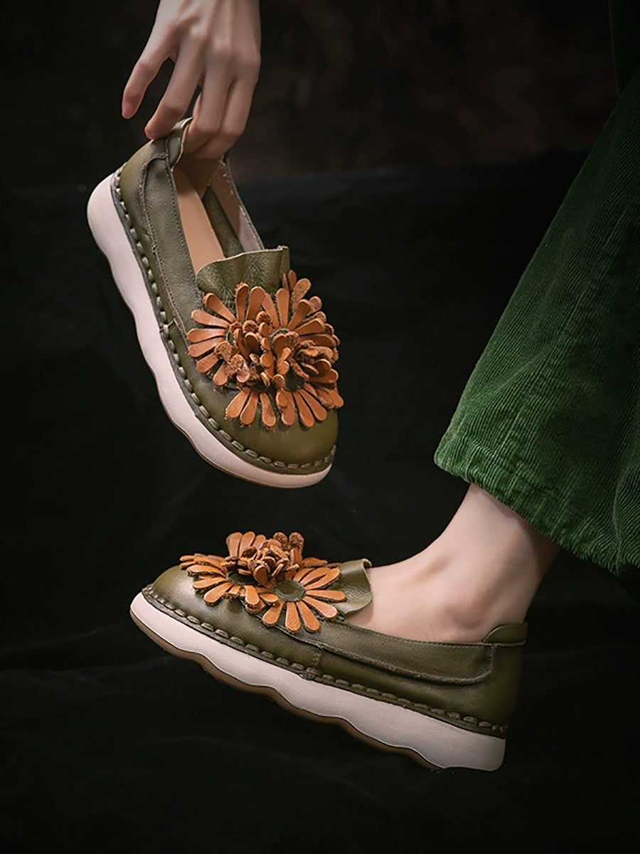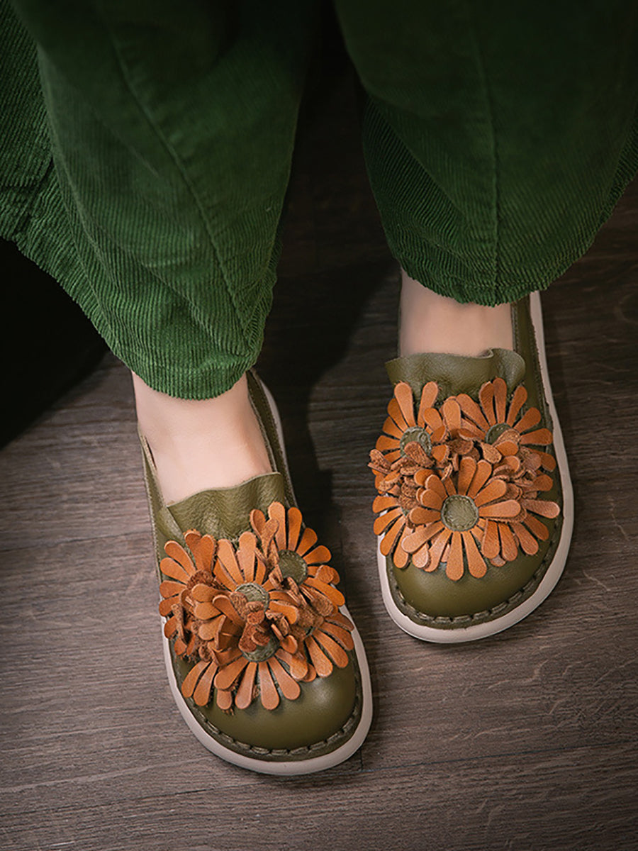 Chaussures fleuries printanières en cuir véritable pour femmes