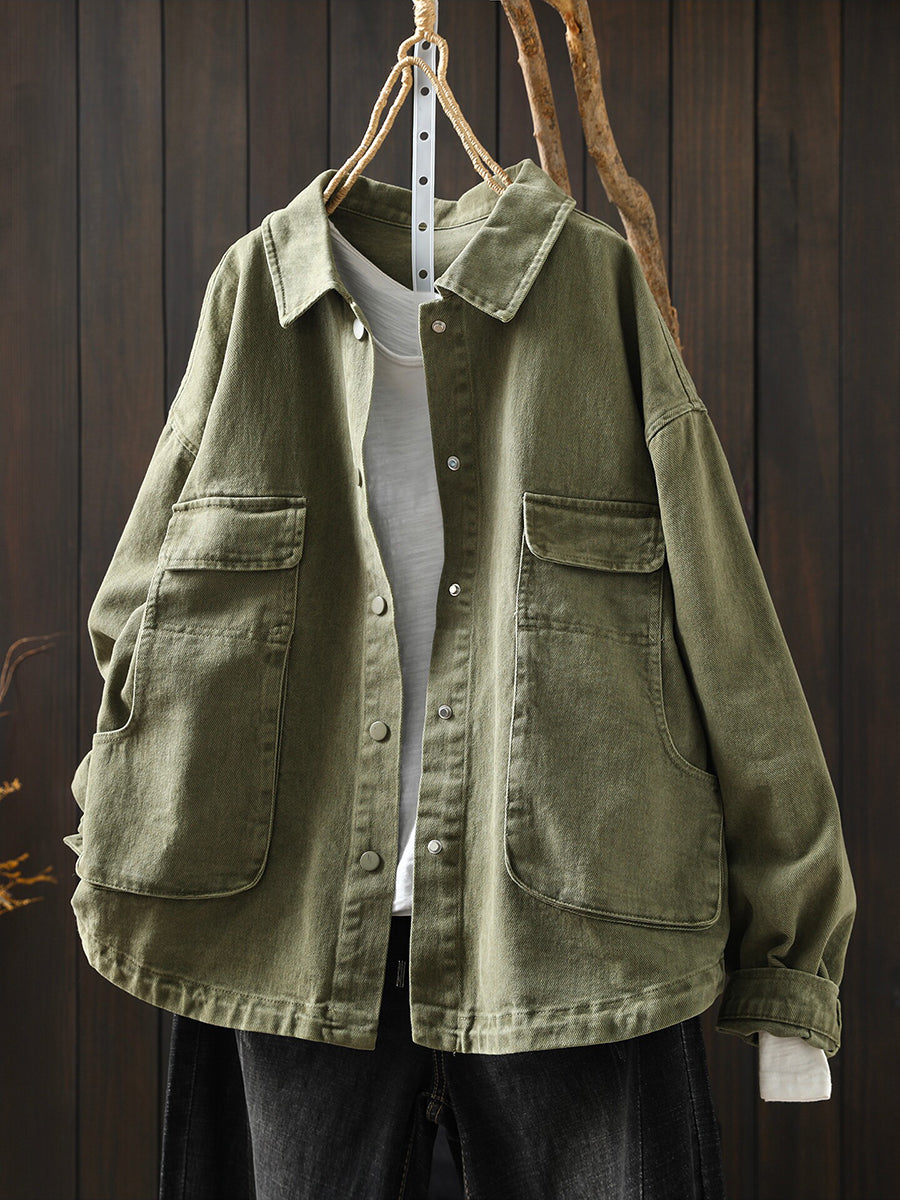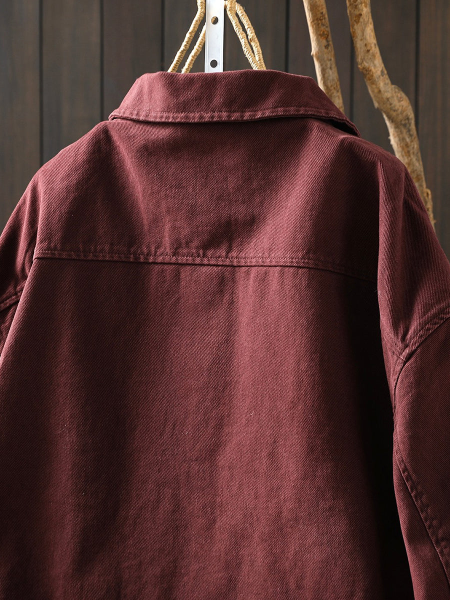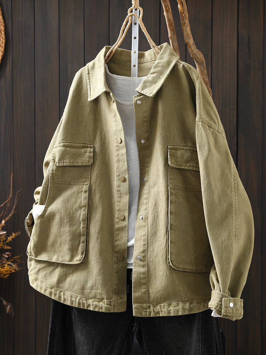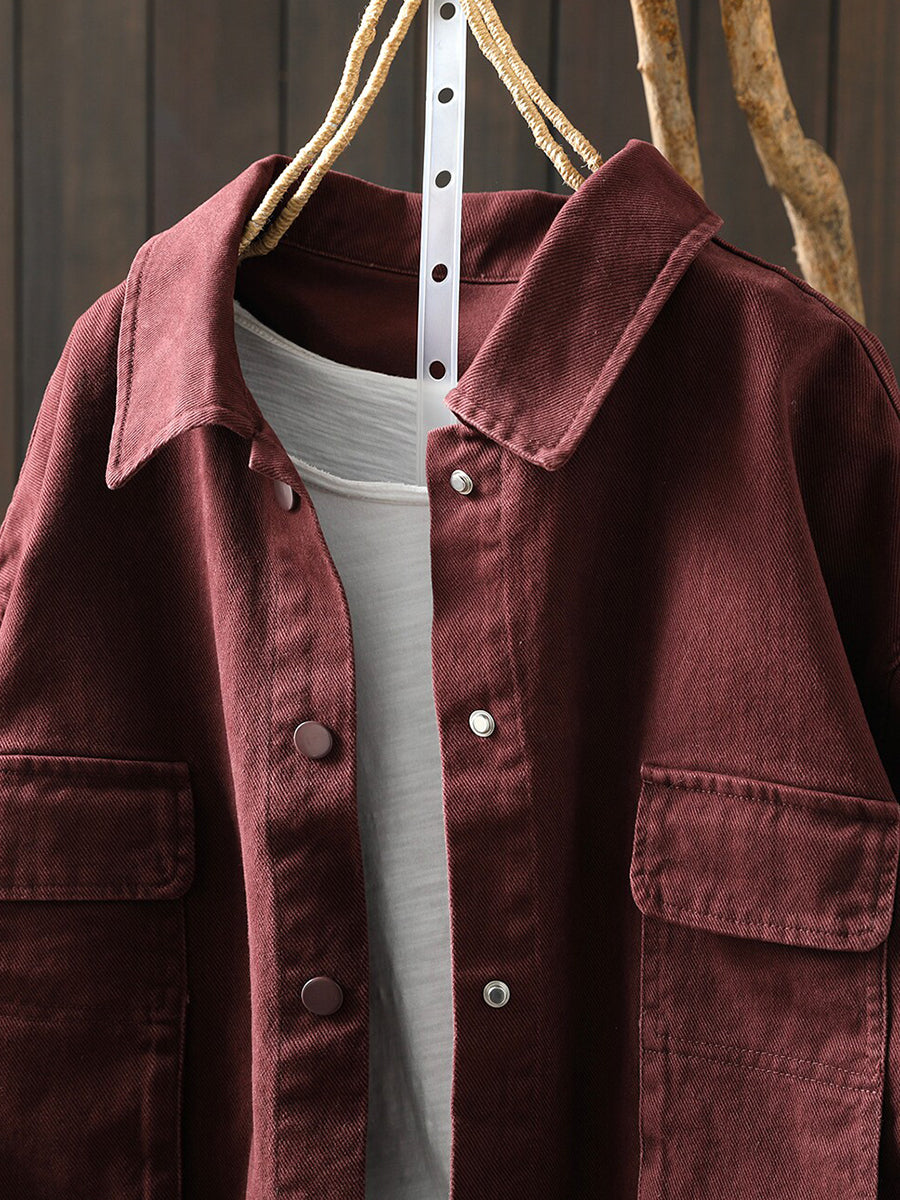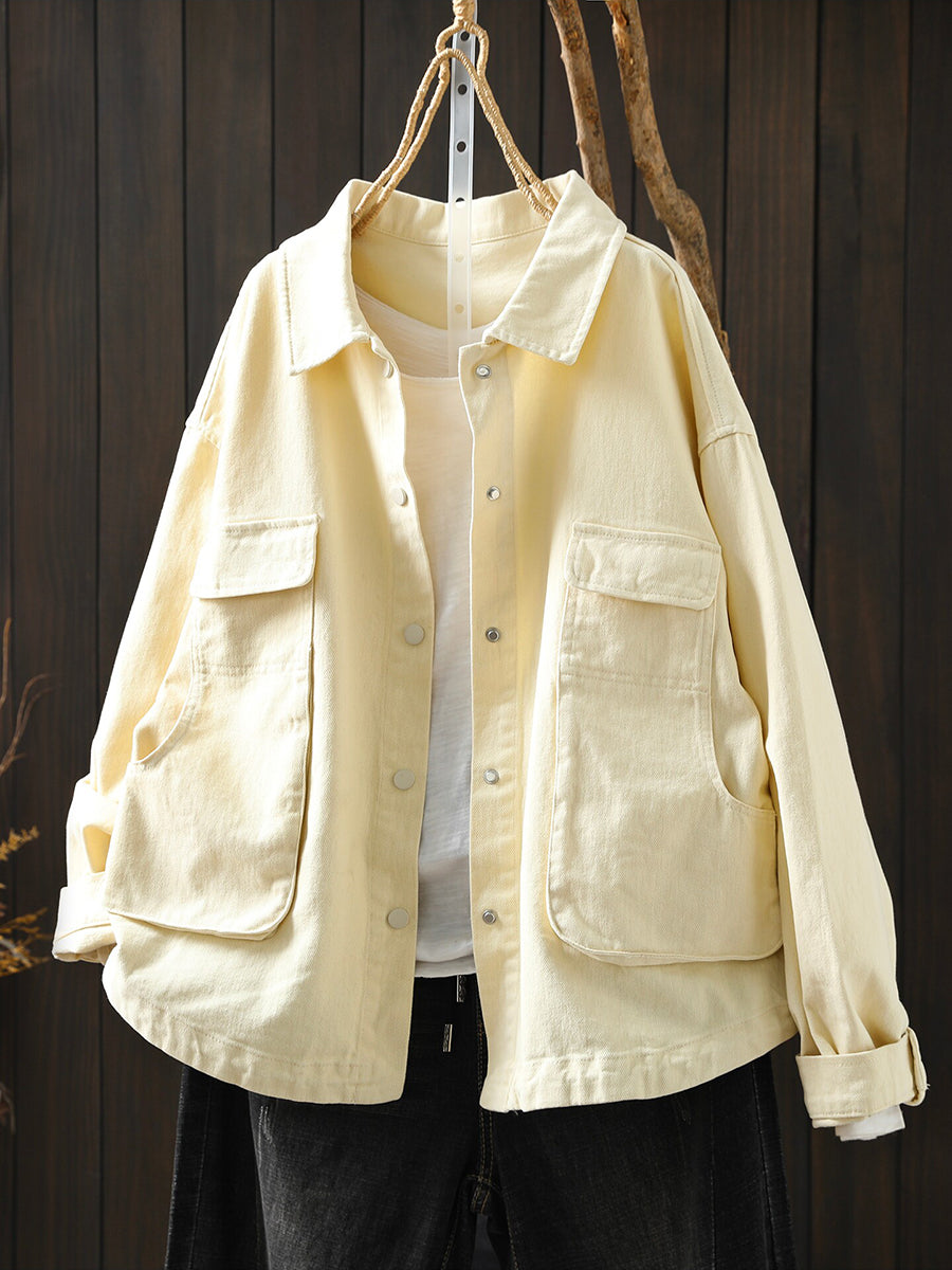 Veste en coton uni couleur unie, style rétro printemps pour femme