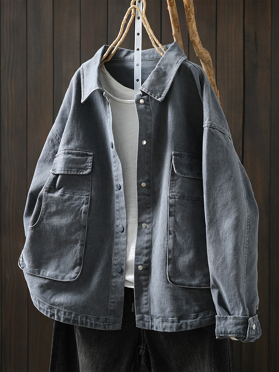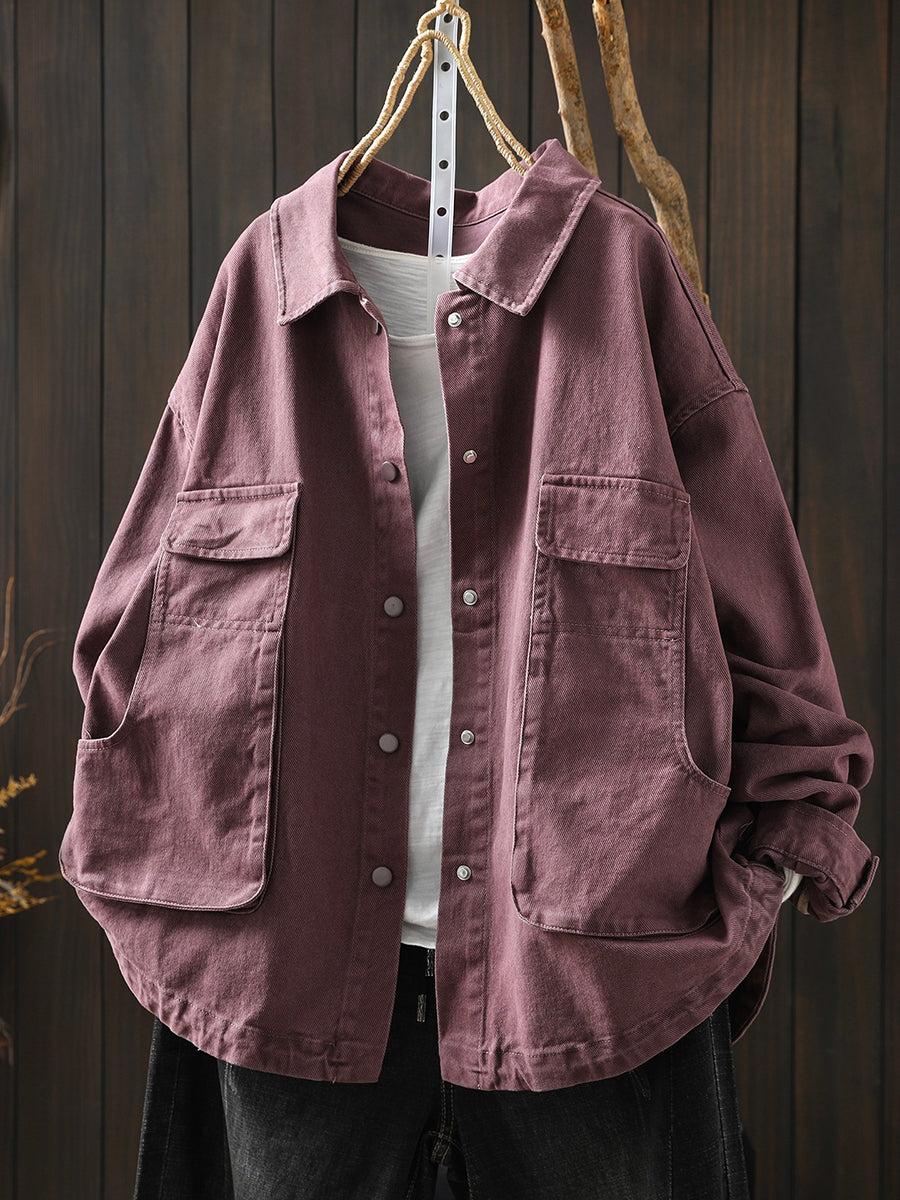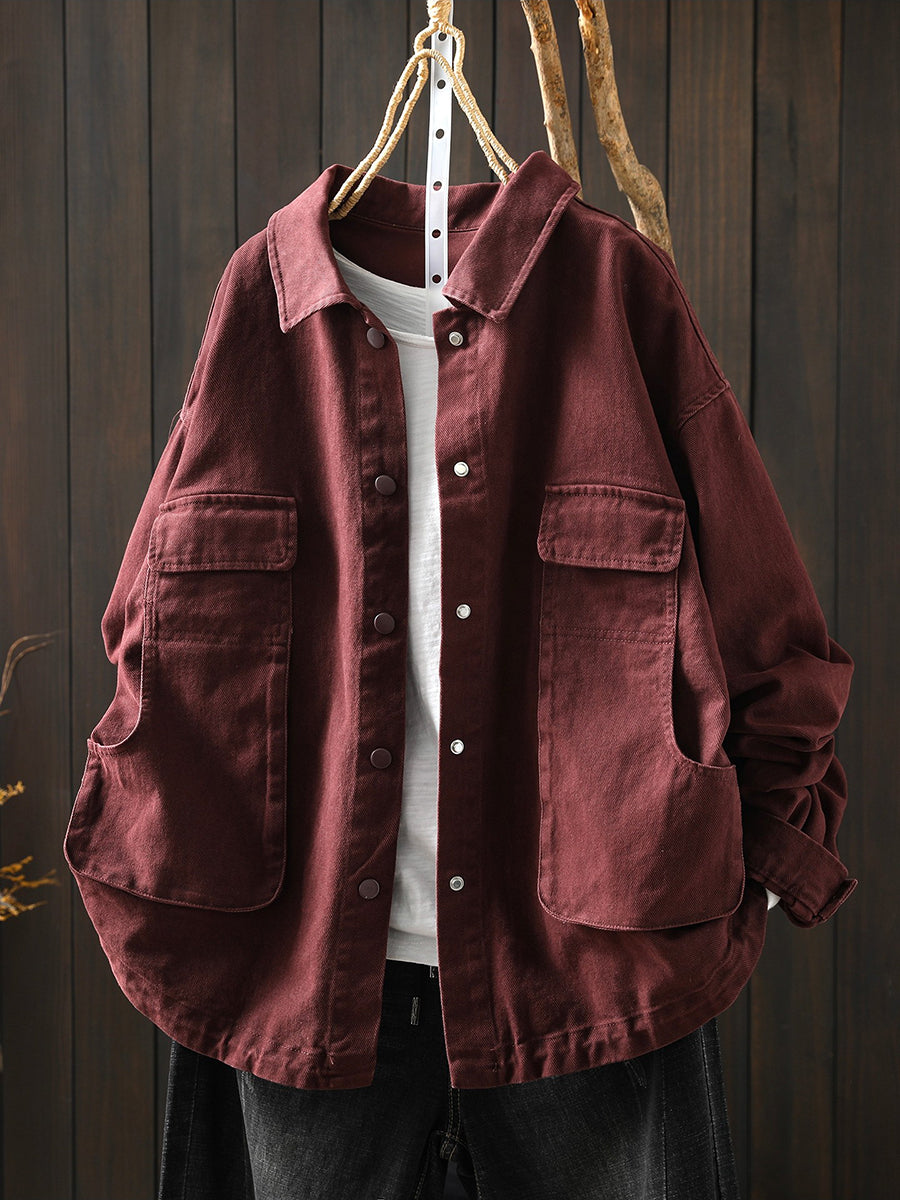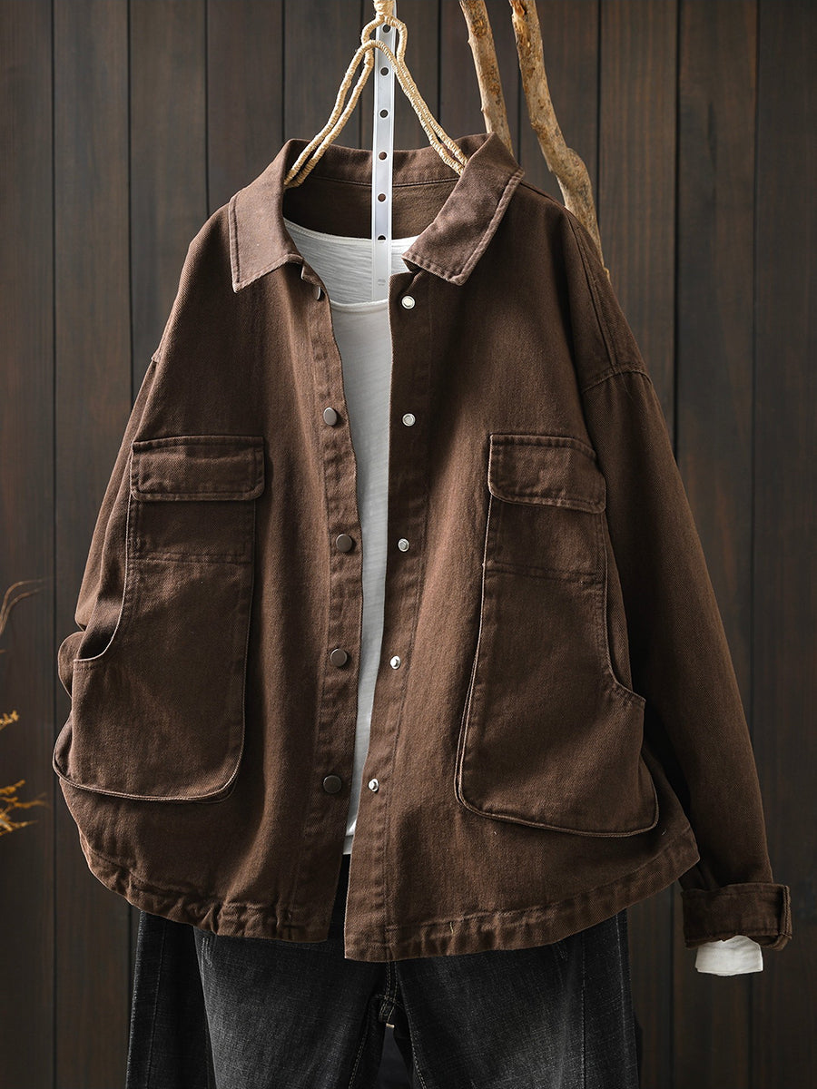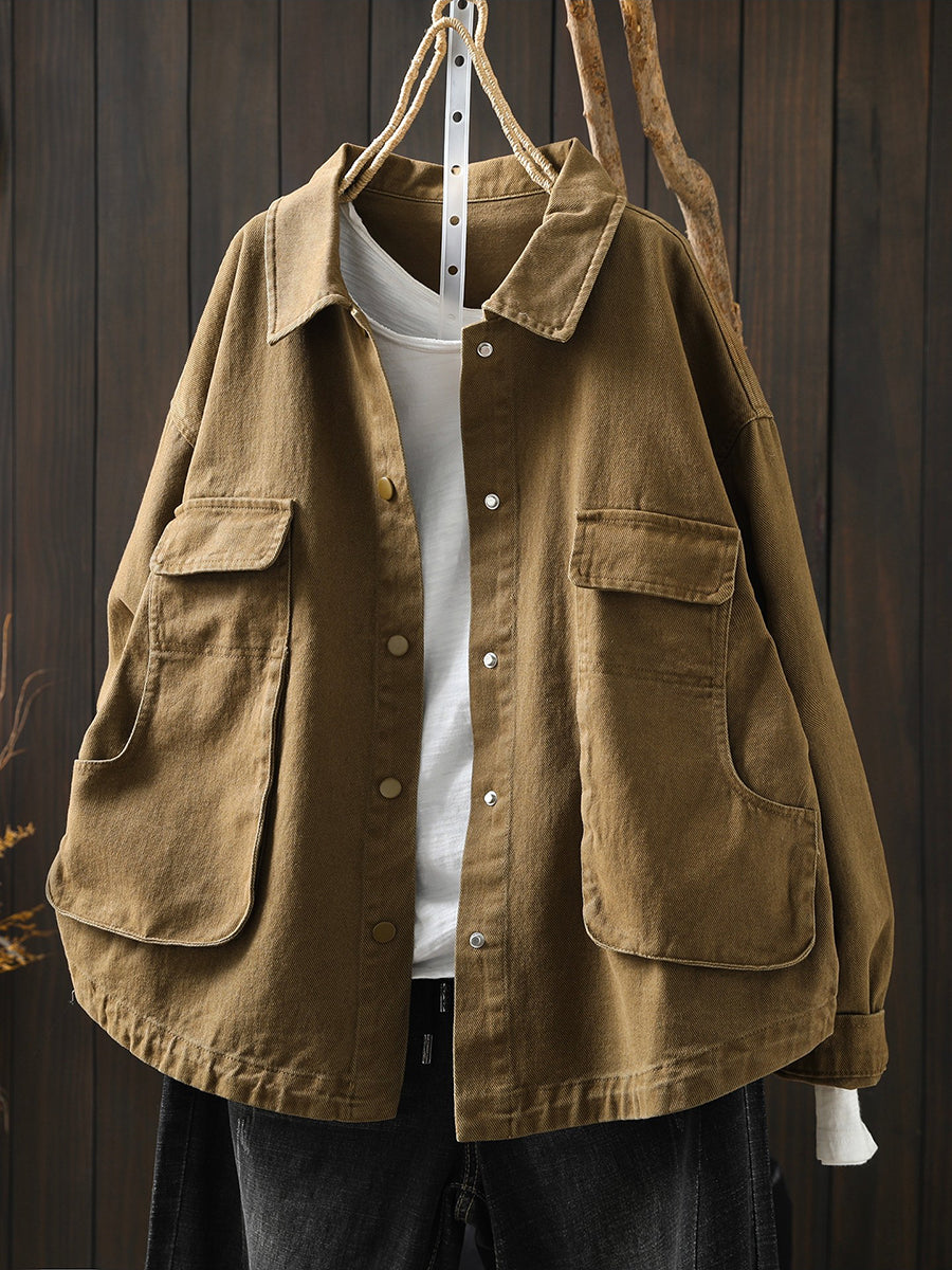 Veste en coton uni couleur unie, style rétro printemps pour femme
