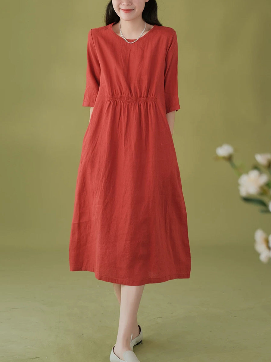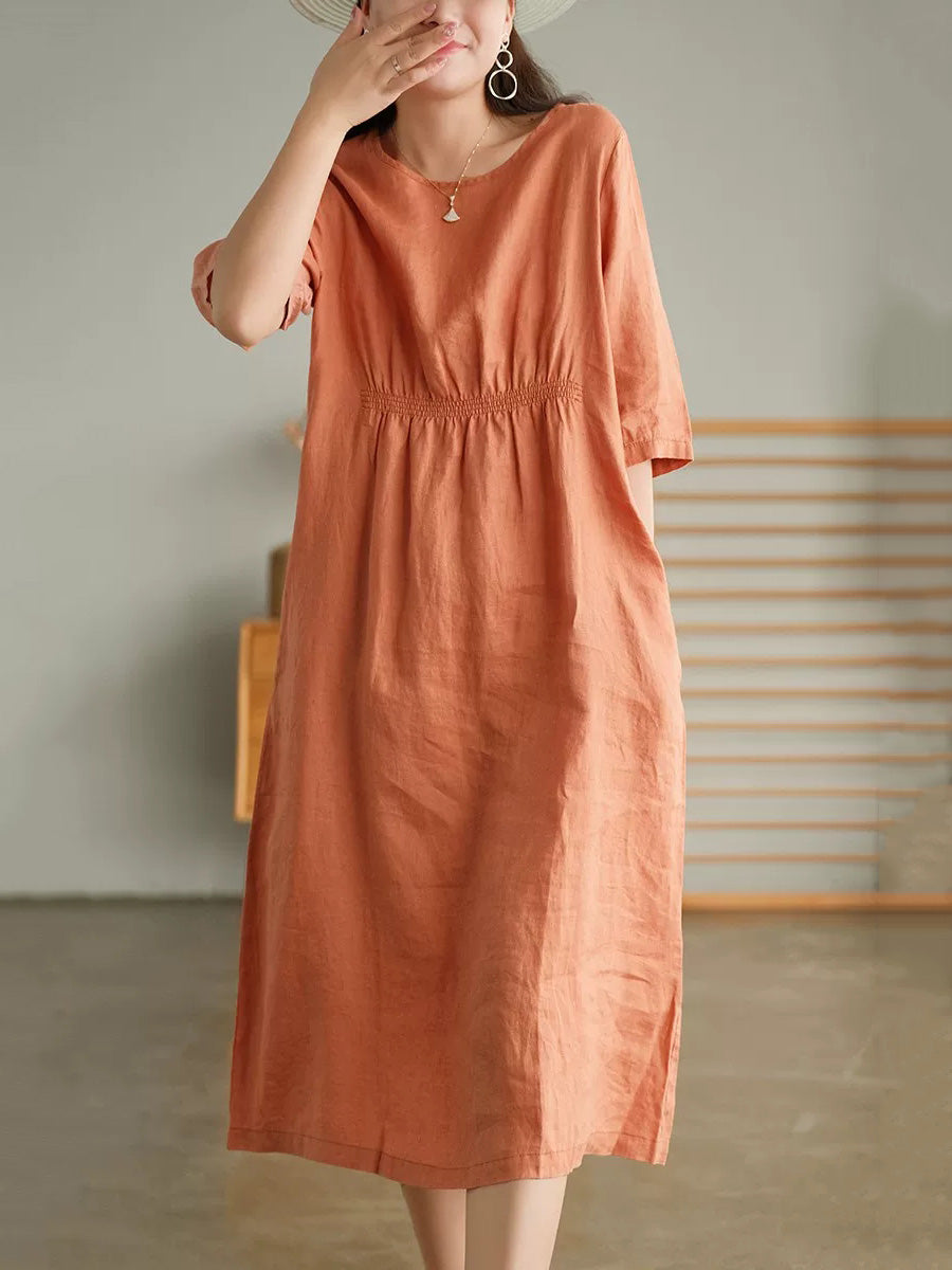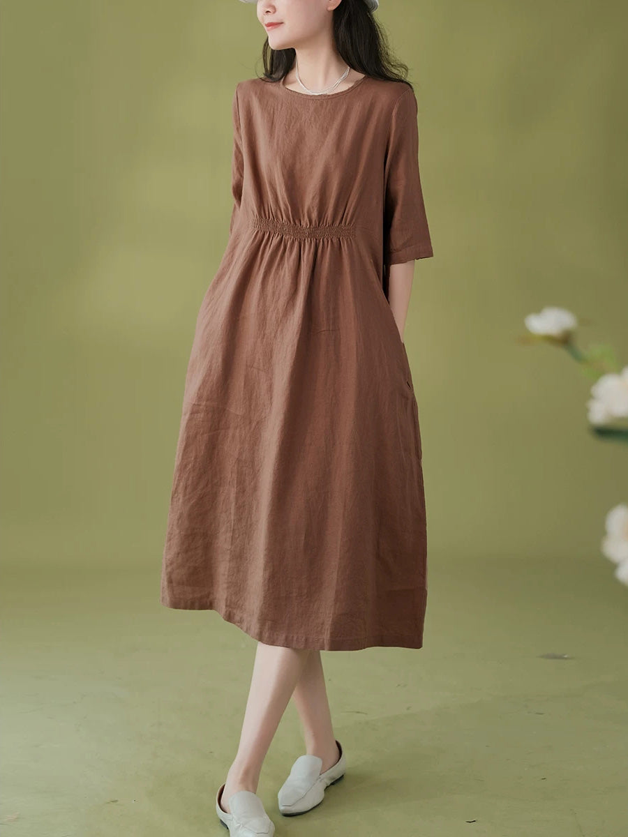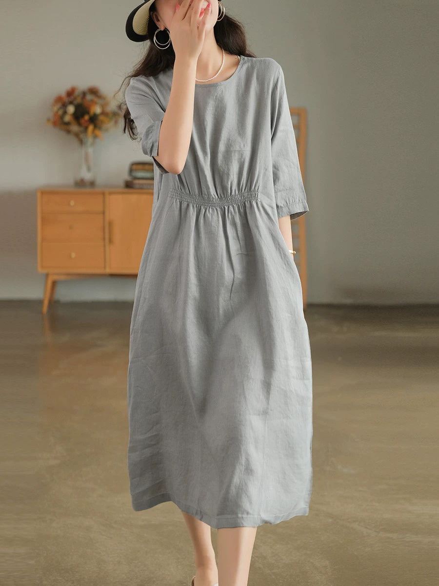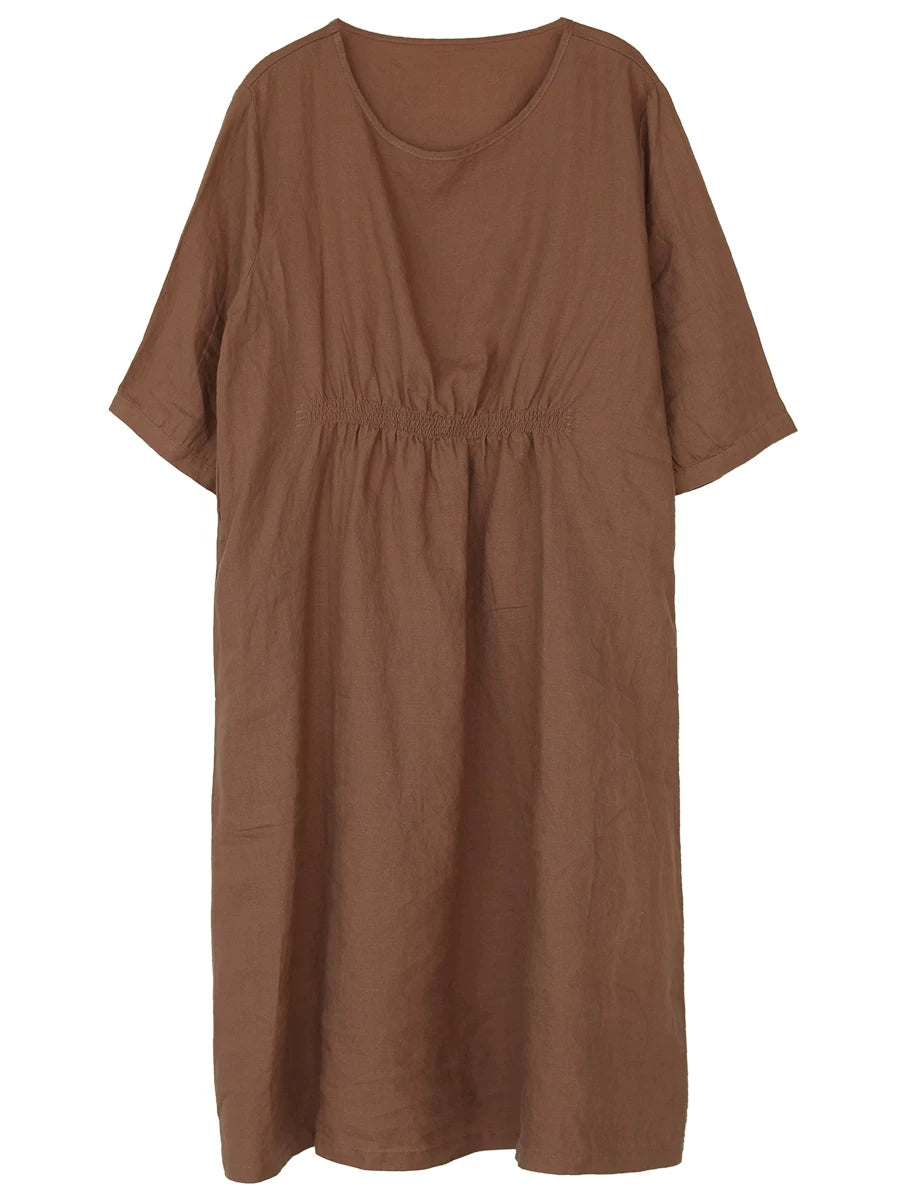 Robe d'été pour femme, style artistique, couleur unie, col rond, 100 % lin