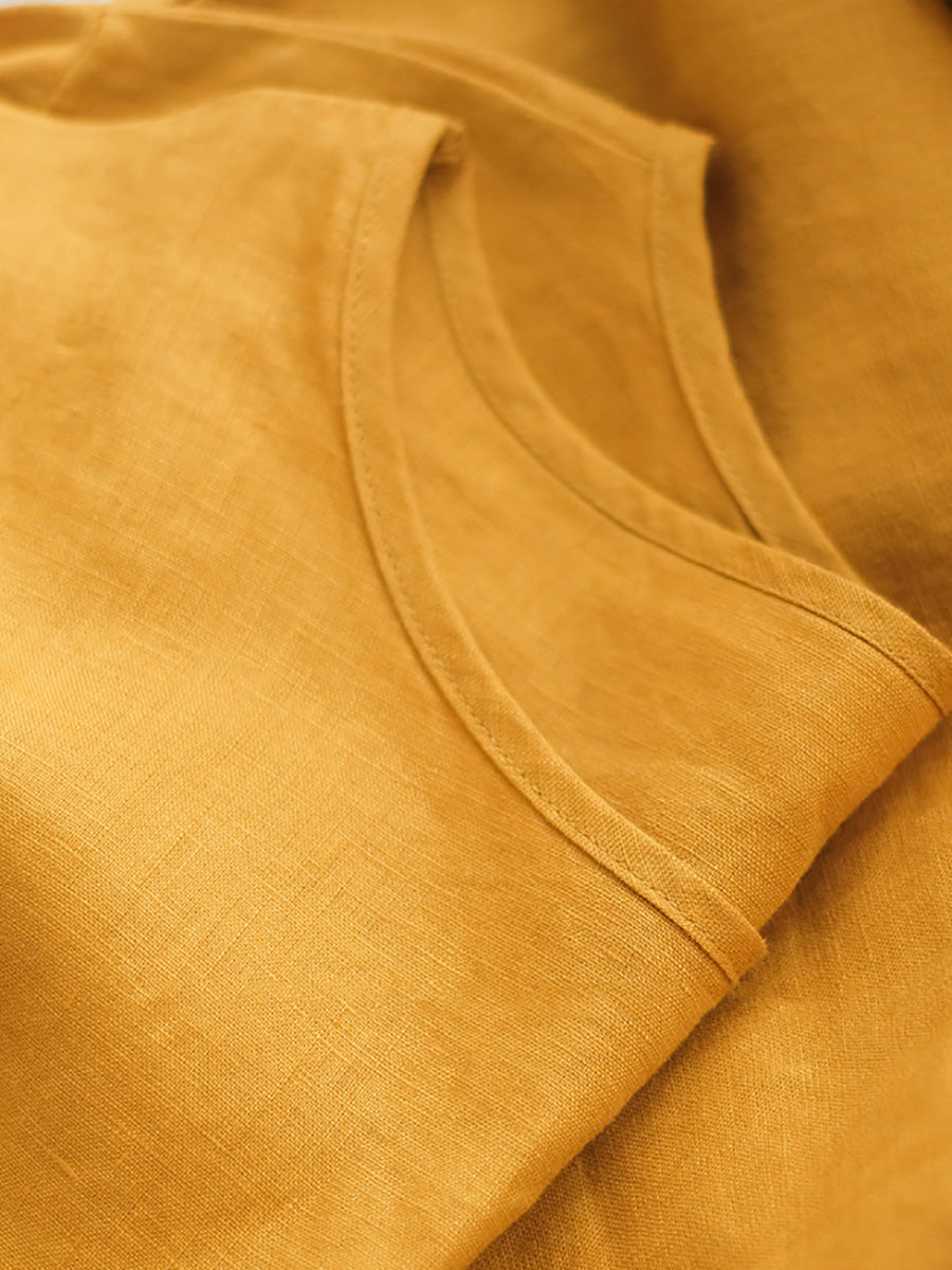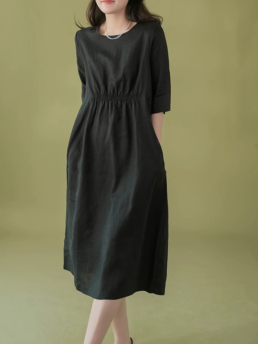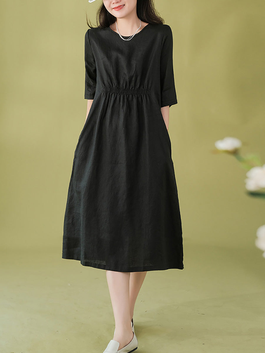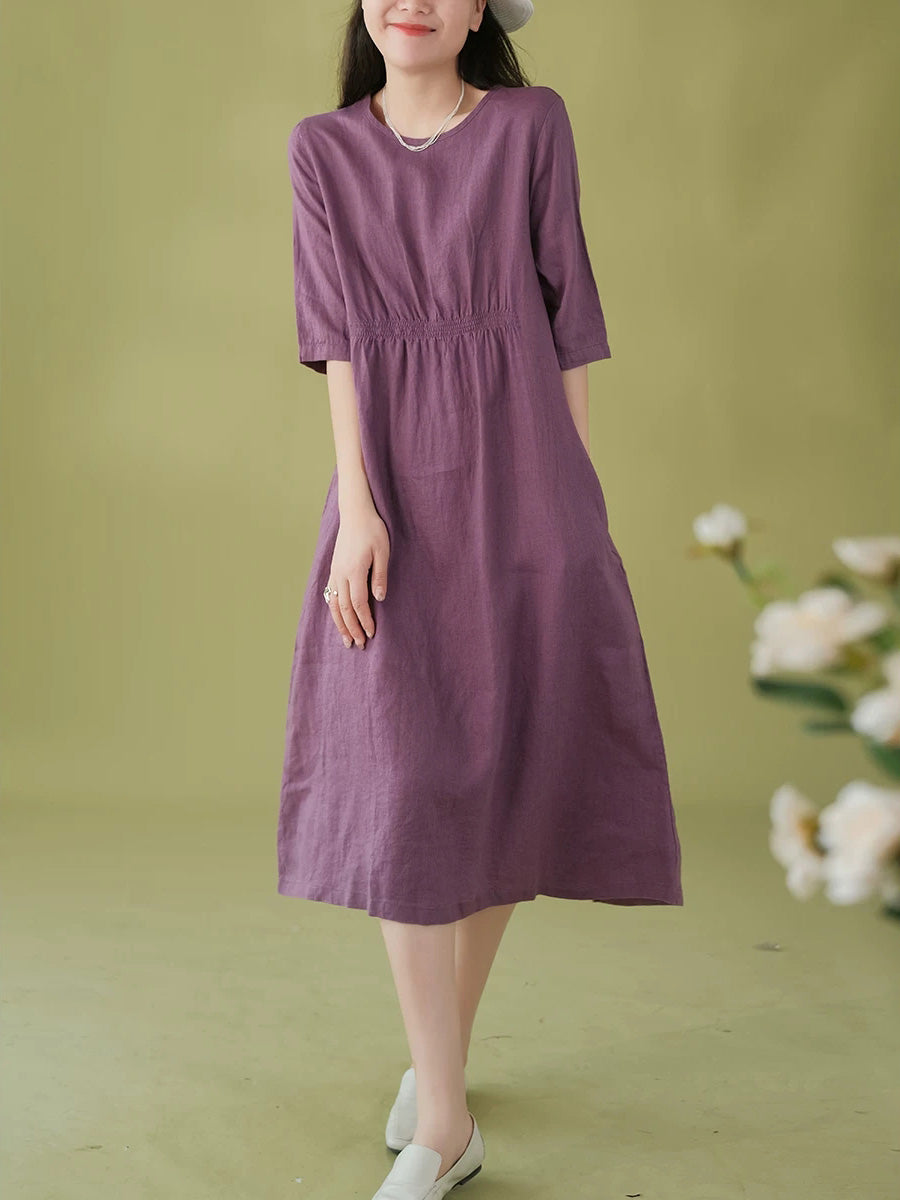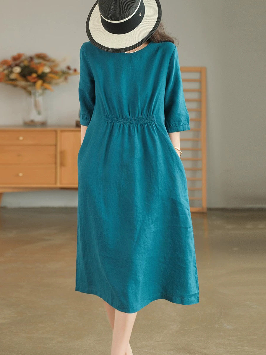 Robe d'été pour femme, style artistique, couleur unie, col rond, 100 % lin