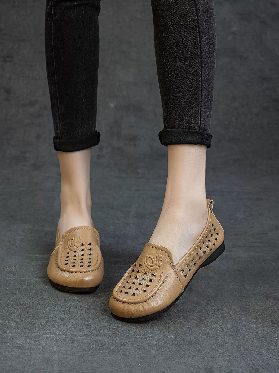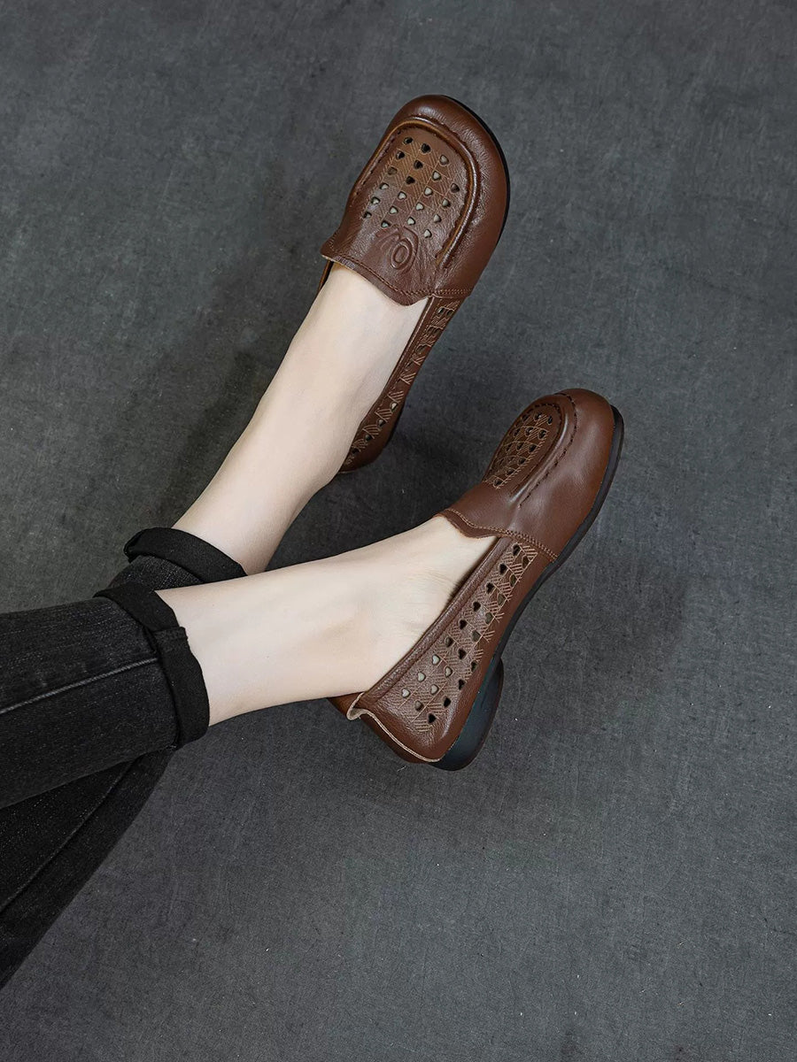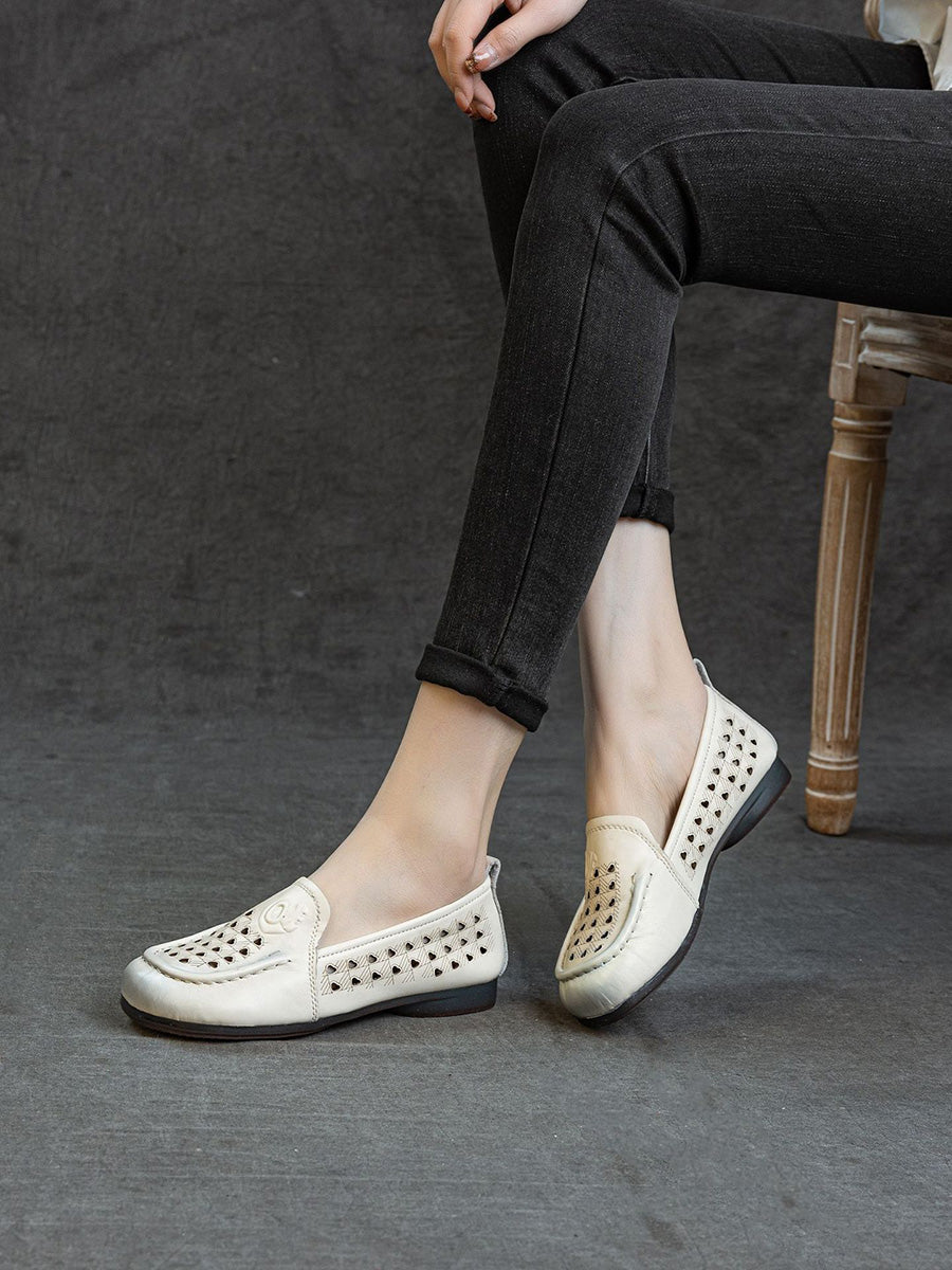 Chaussures d'été pour femmes en cuir véritable ajouré