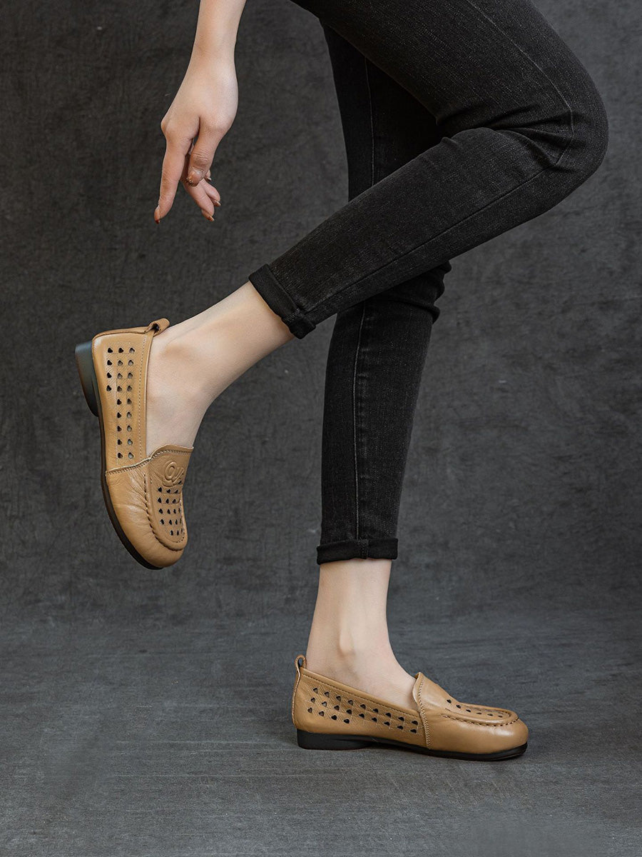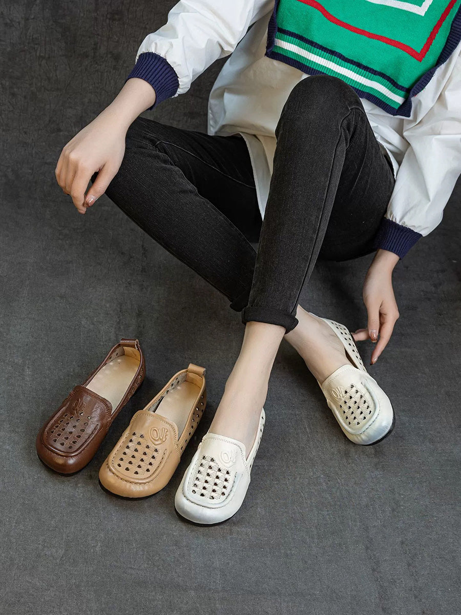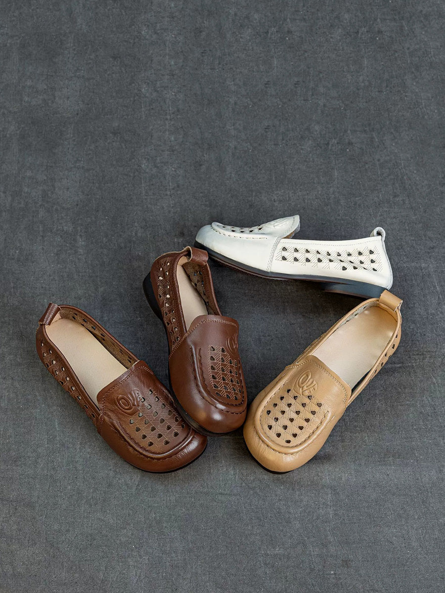Chaussures d'été pour femmes en cuir véritable ajouré