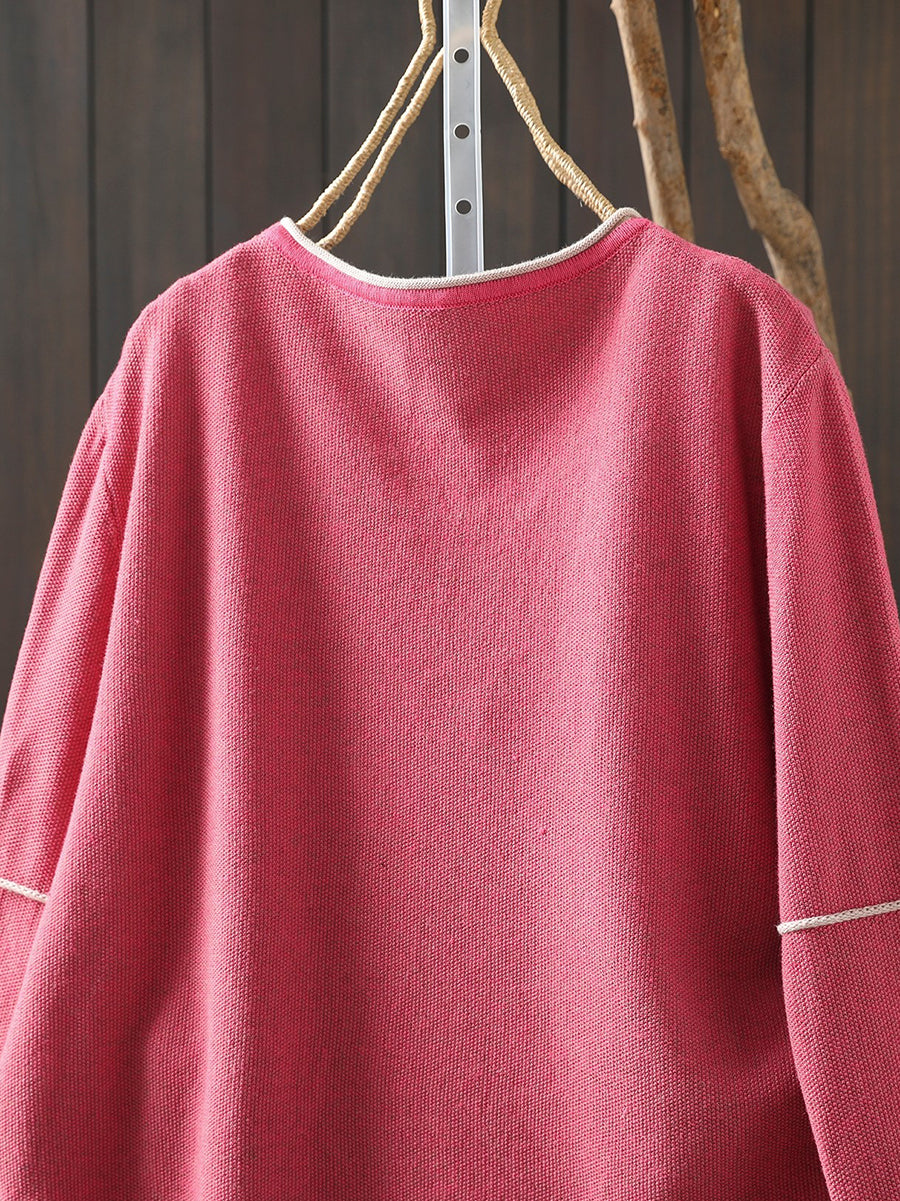 Blouse en coton uni couleur unie, style décontracté printanier pour femme