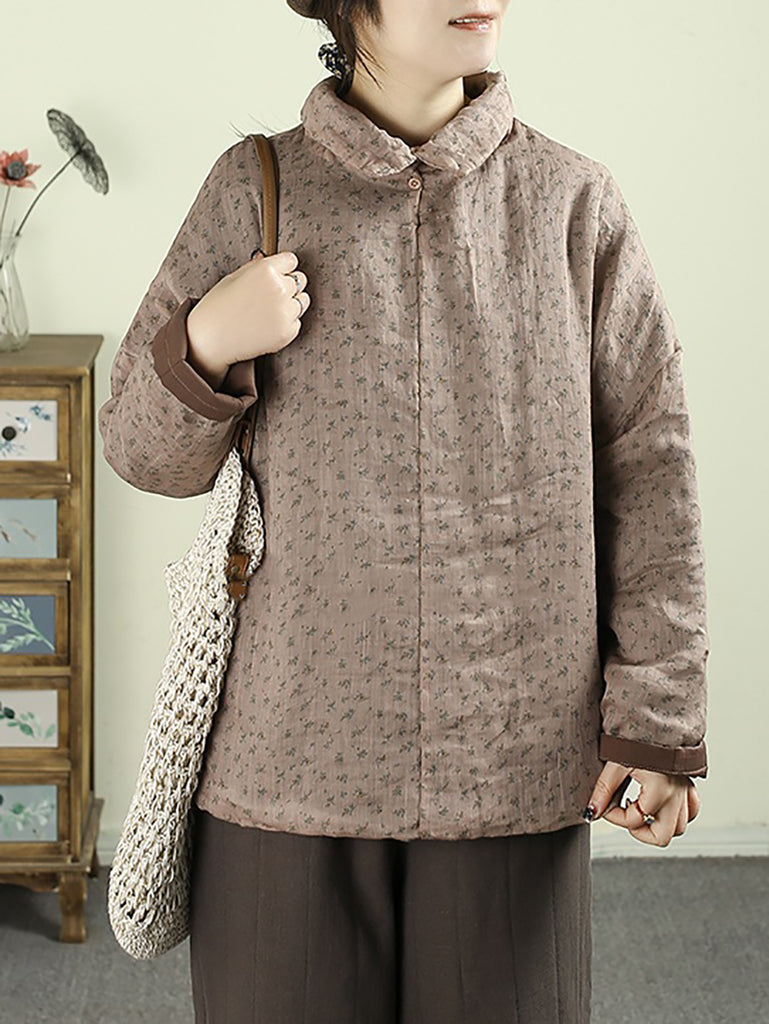 Manteau d'hiver ethnique à fleurs pour femme en ramie rembourrée à col montant