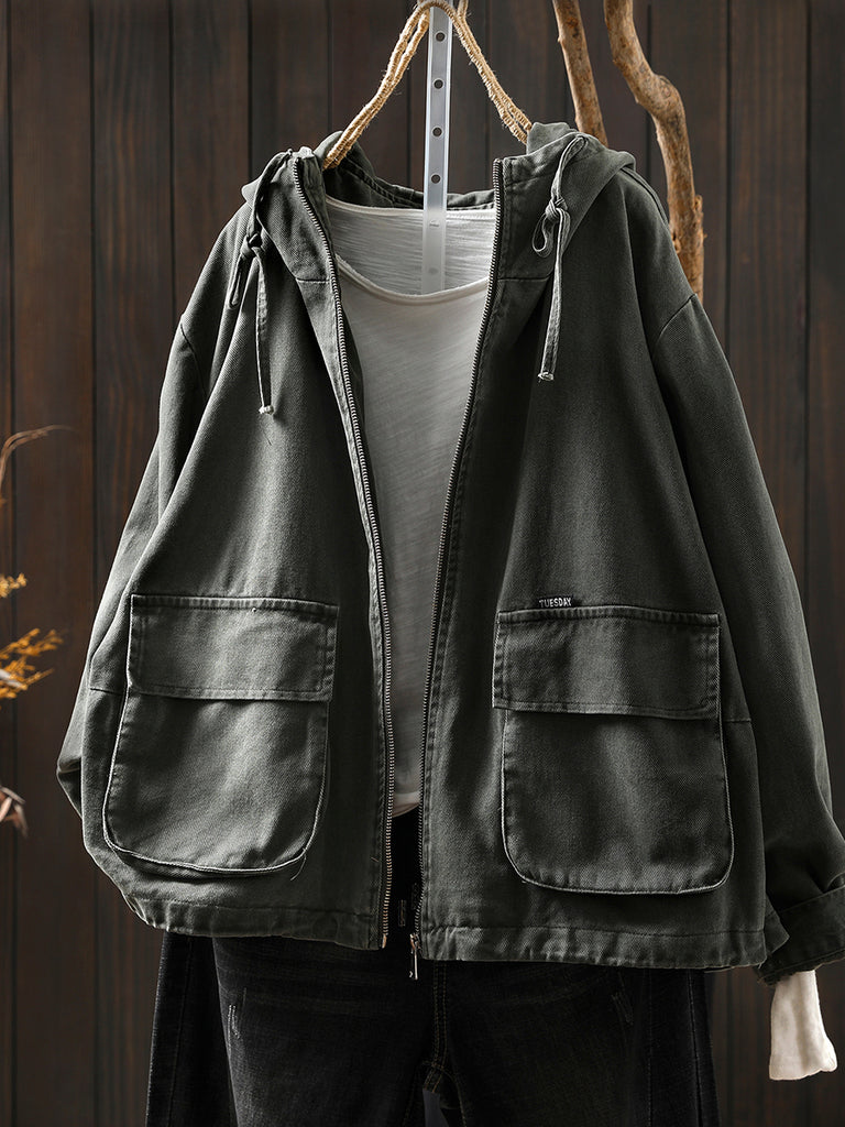 Cardigan à capuche en coton pour femme, couleur unie, automne