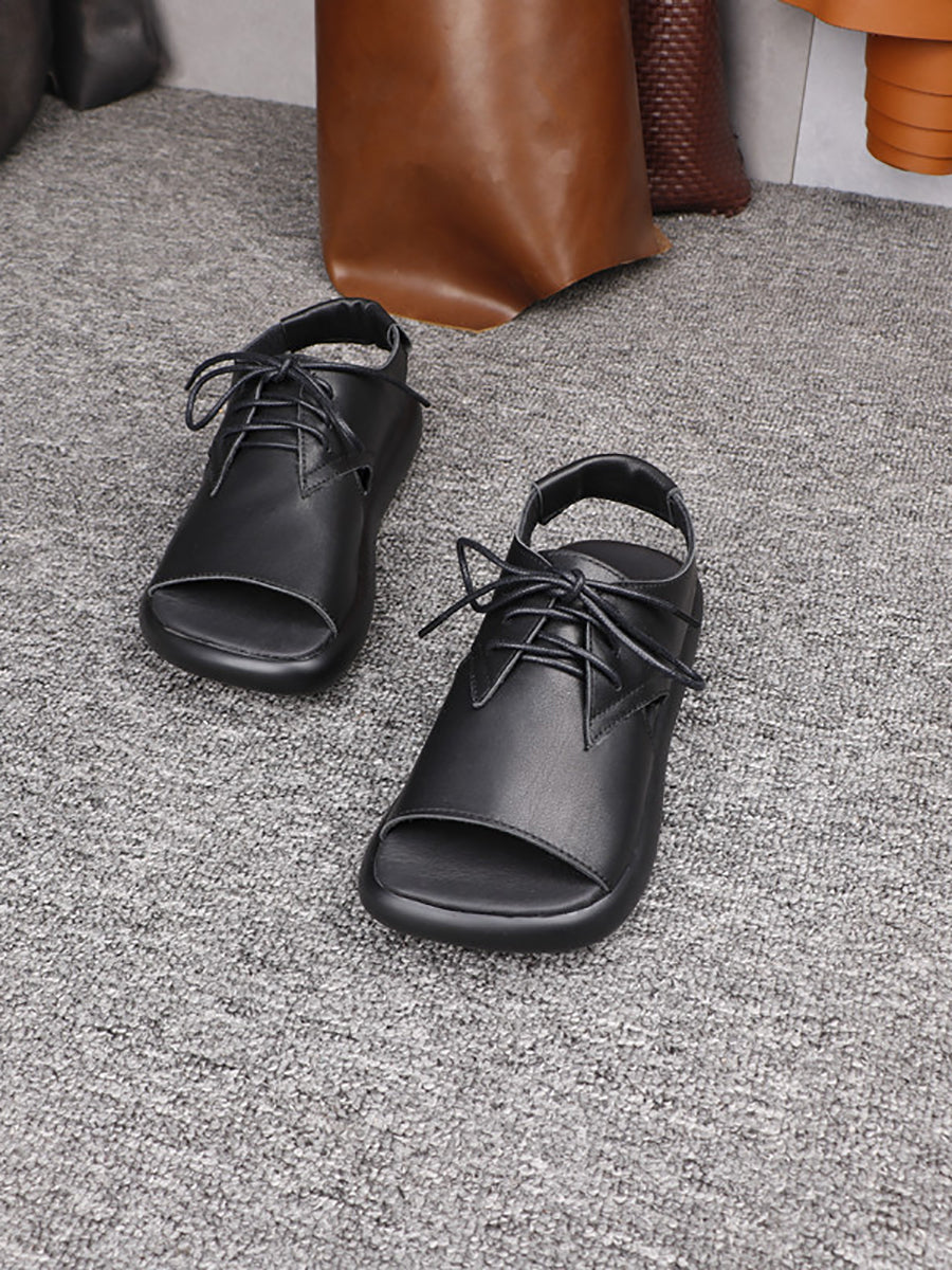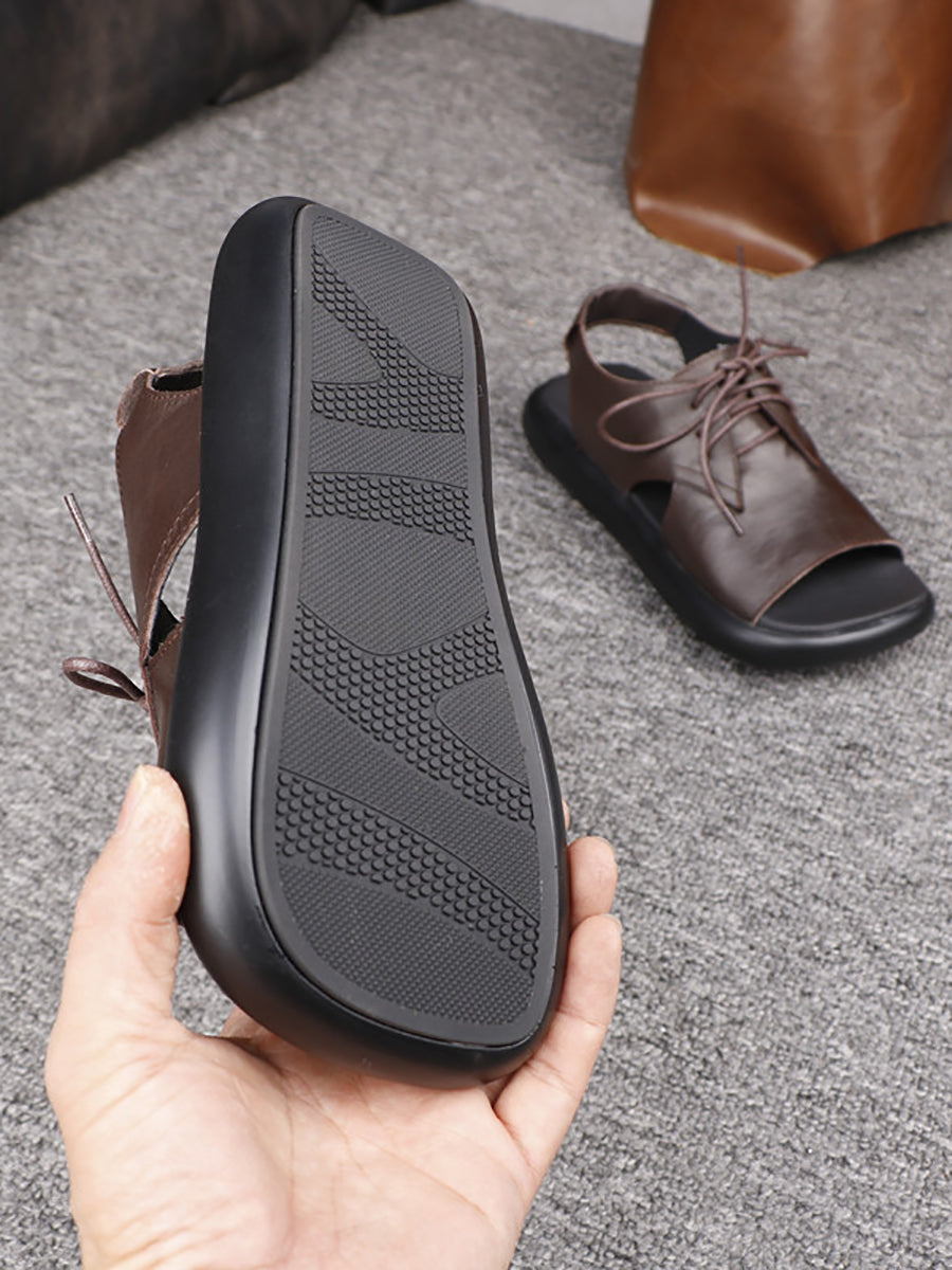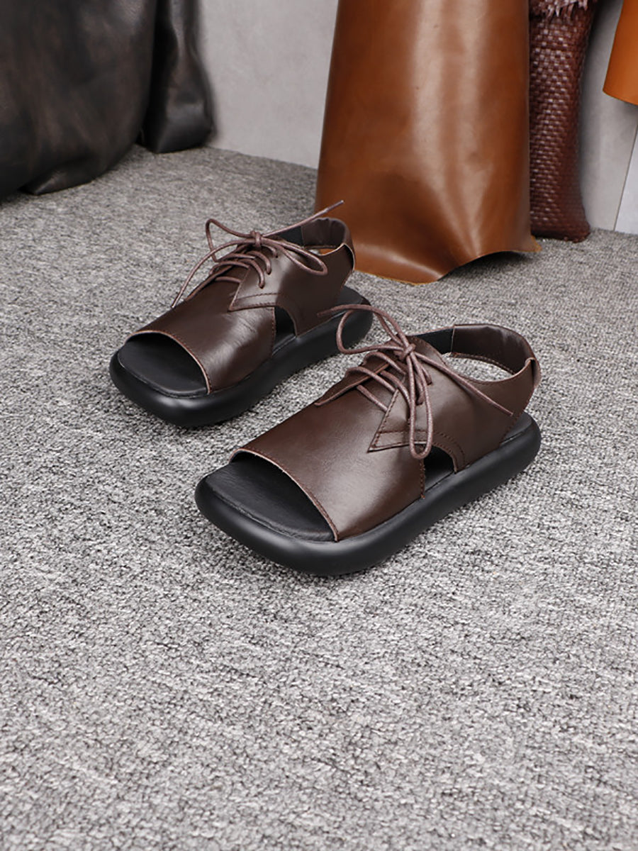 Sandales compensées d'été pour femmes en cuir véritable