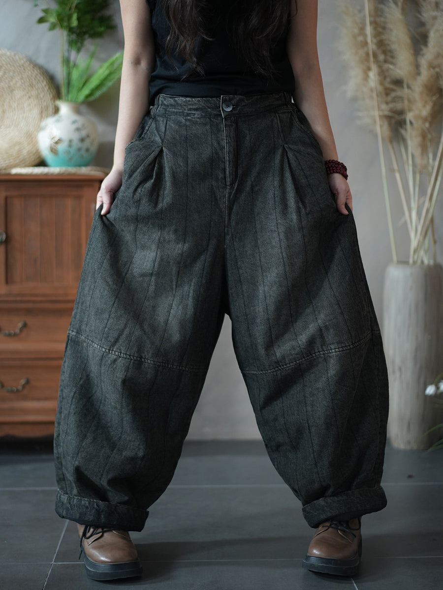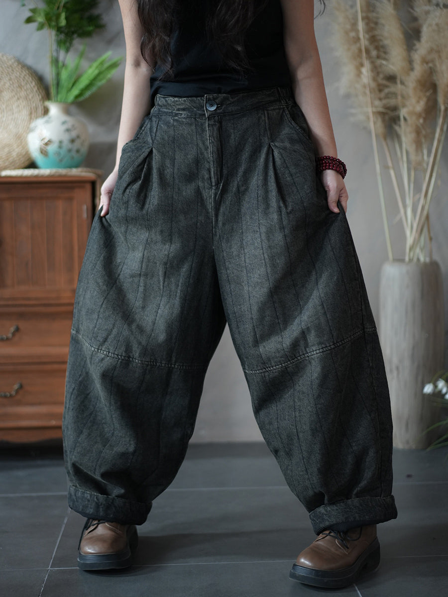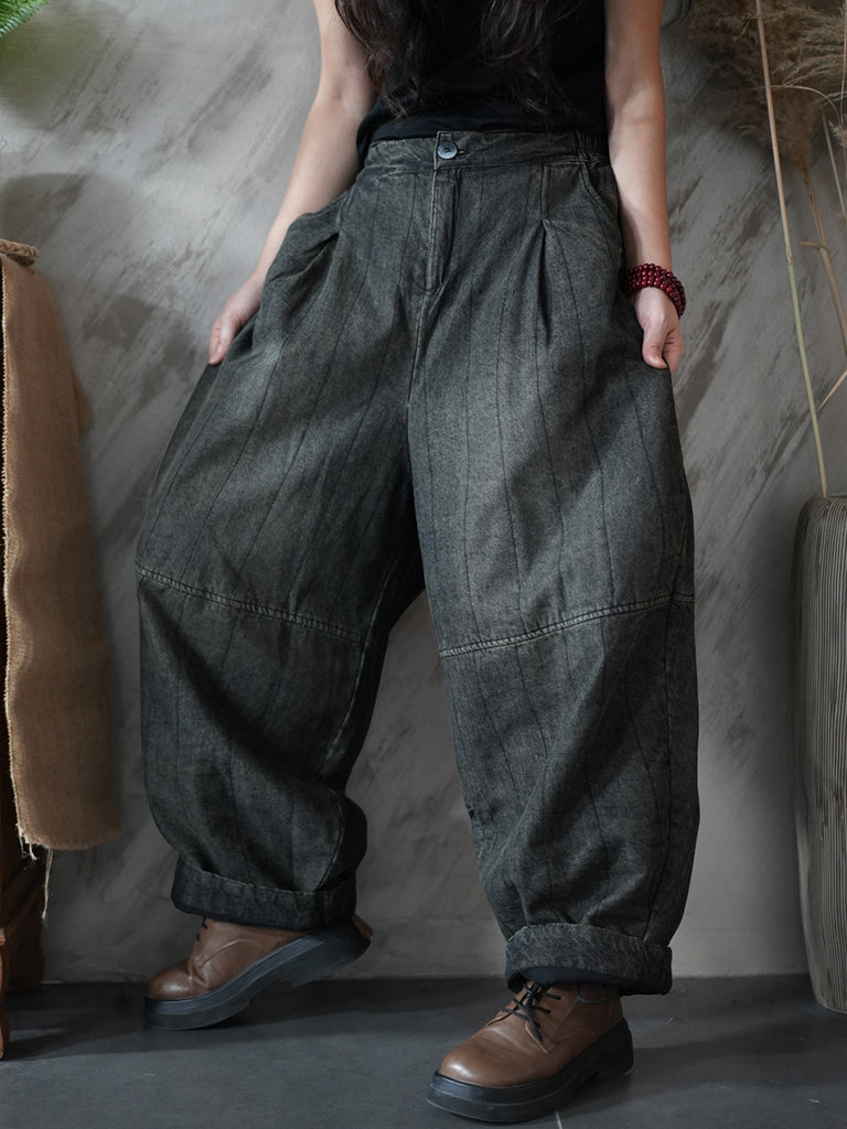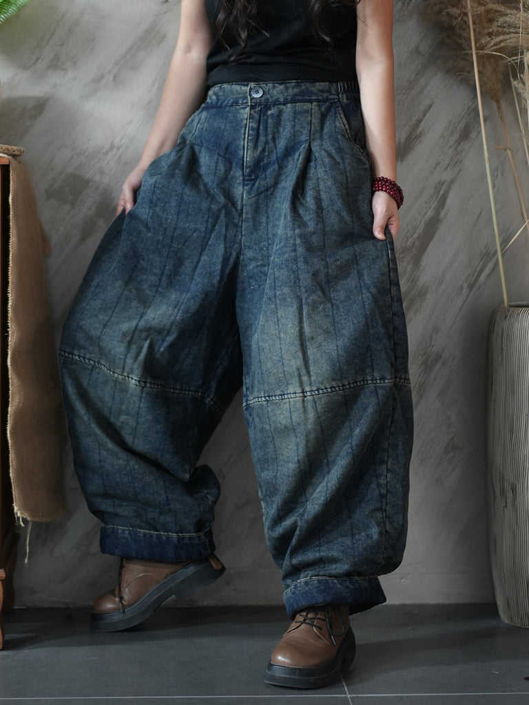 Pantalon harem rembourré rétro hiver femme couleur unie