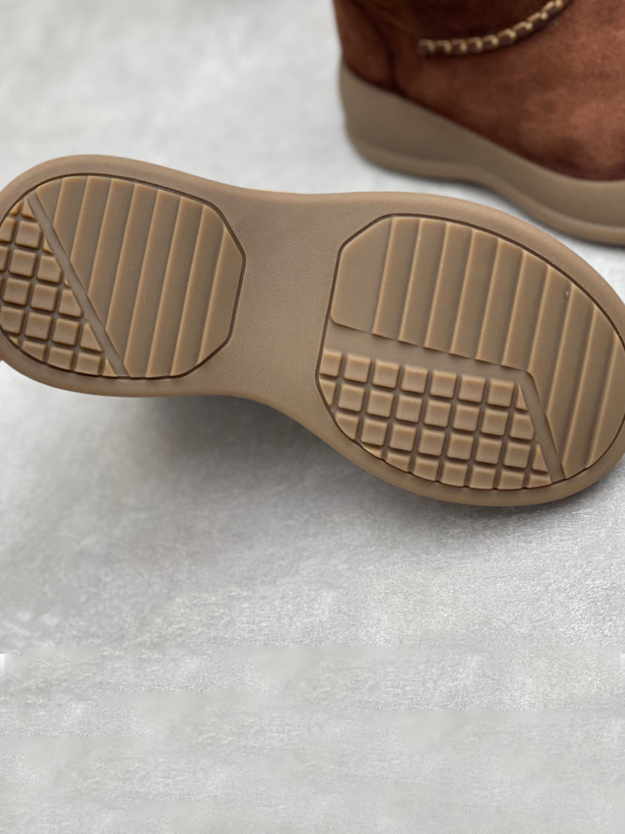 Bottes à plateforme doublées de polaire en cuir véritable pour femmes