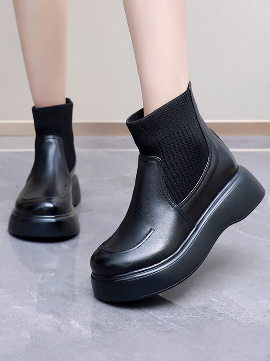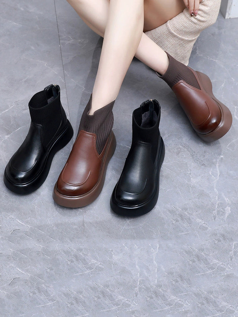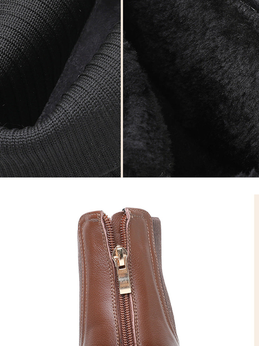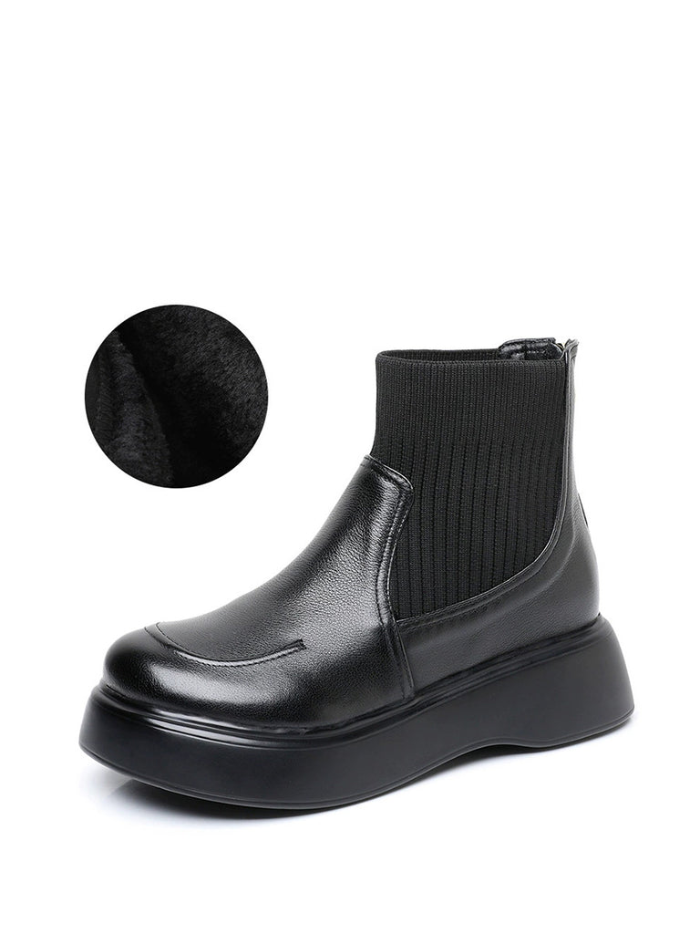 Bottes d'hiver pour femmes en cuir véritable à plateforme et empiècements