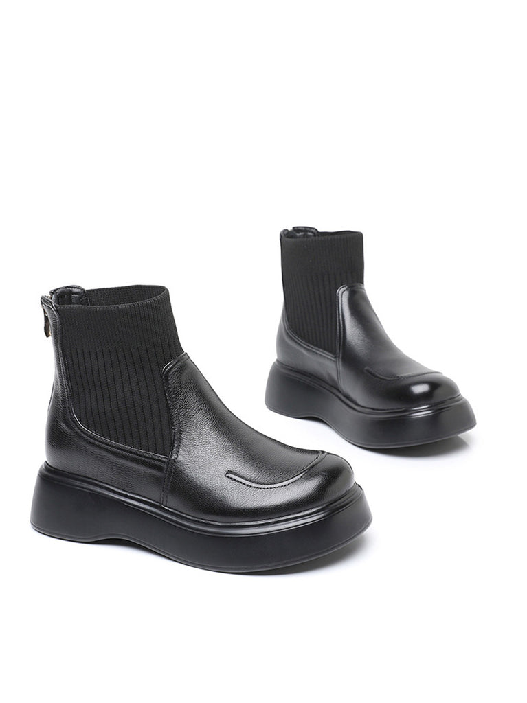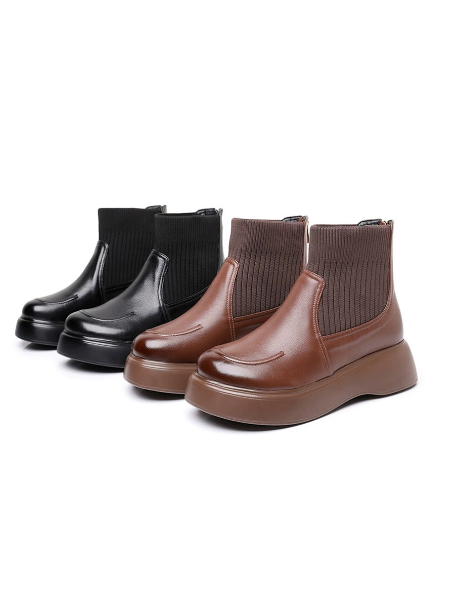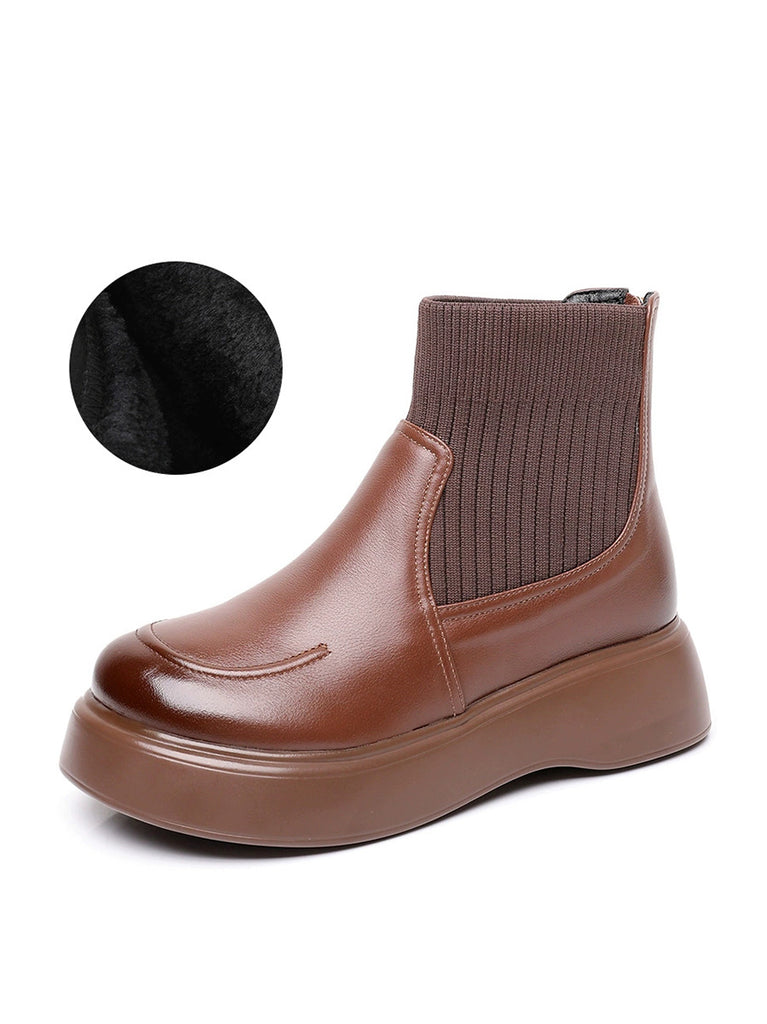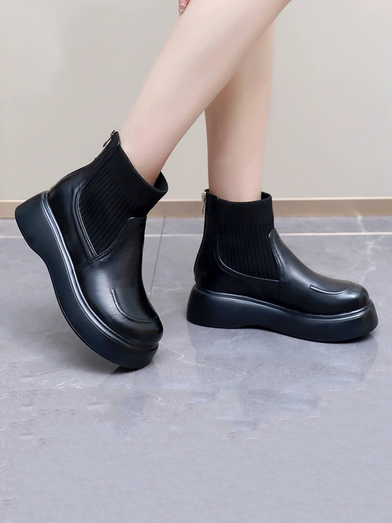 Bottes d'hiver pour femmes en cuir véritable à plateforme et empiècements