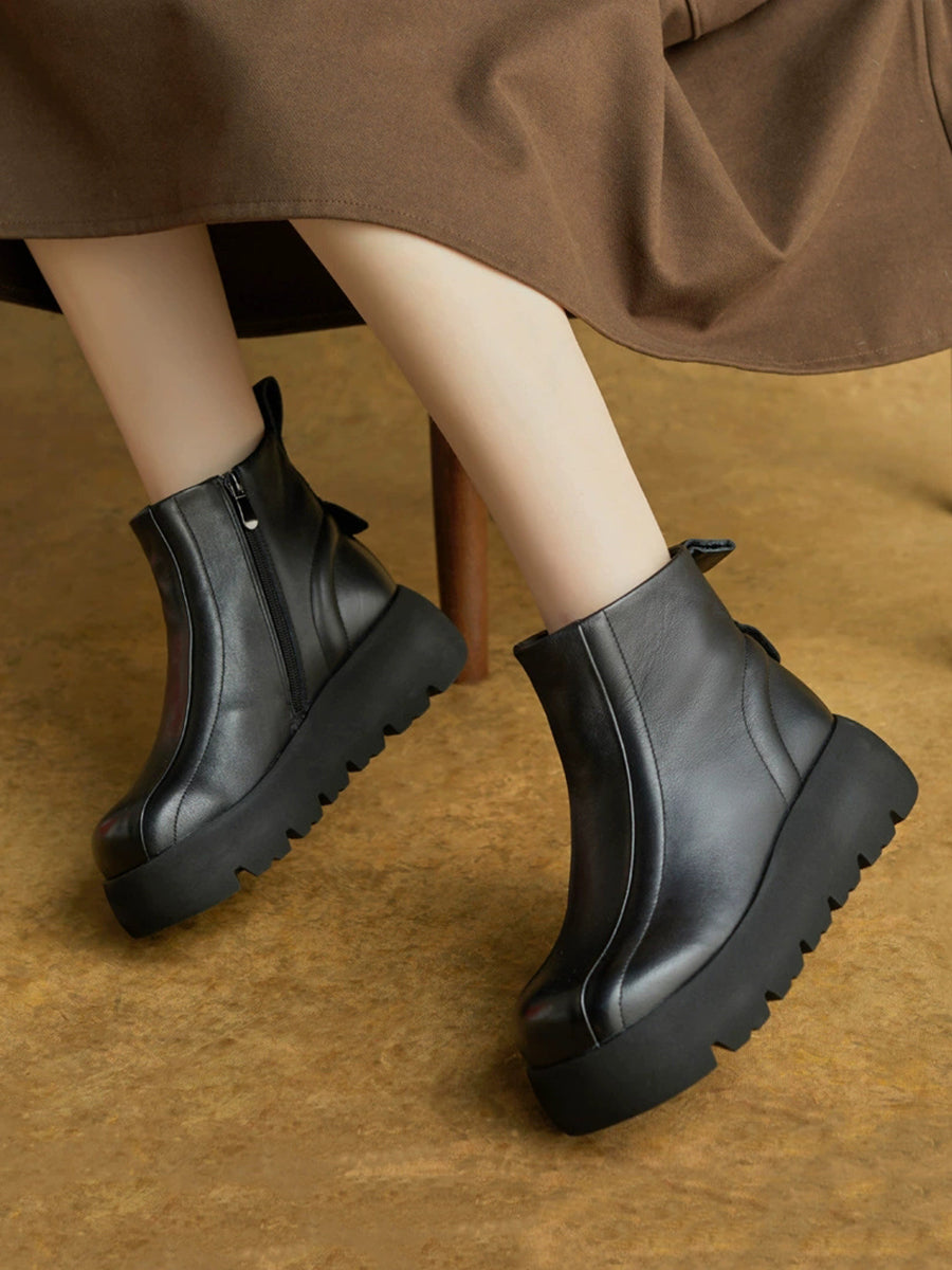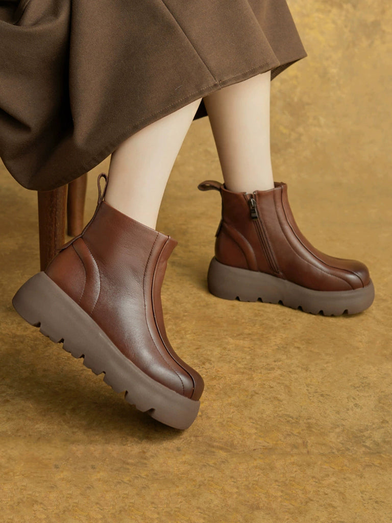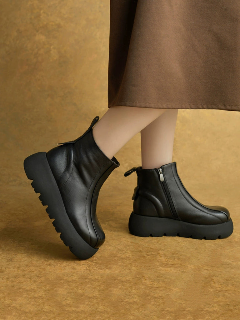 Bottes d'hiver pour femmes en cuir véritable à plateforme et fermeture éclair