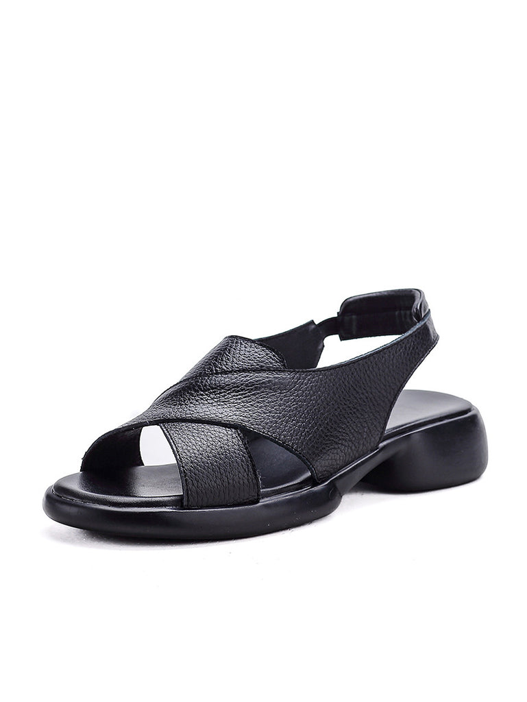 Sandales décontractées à talons bas croisés en cuir véritable pour femmes
