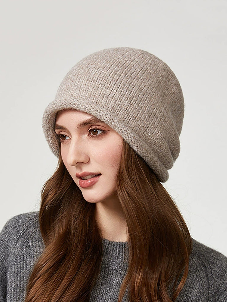 Bonnet tricoté chaud d'hiver de couleur pure pour femme