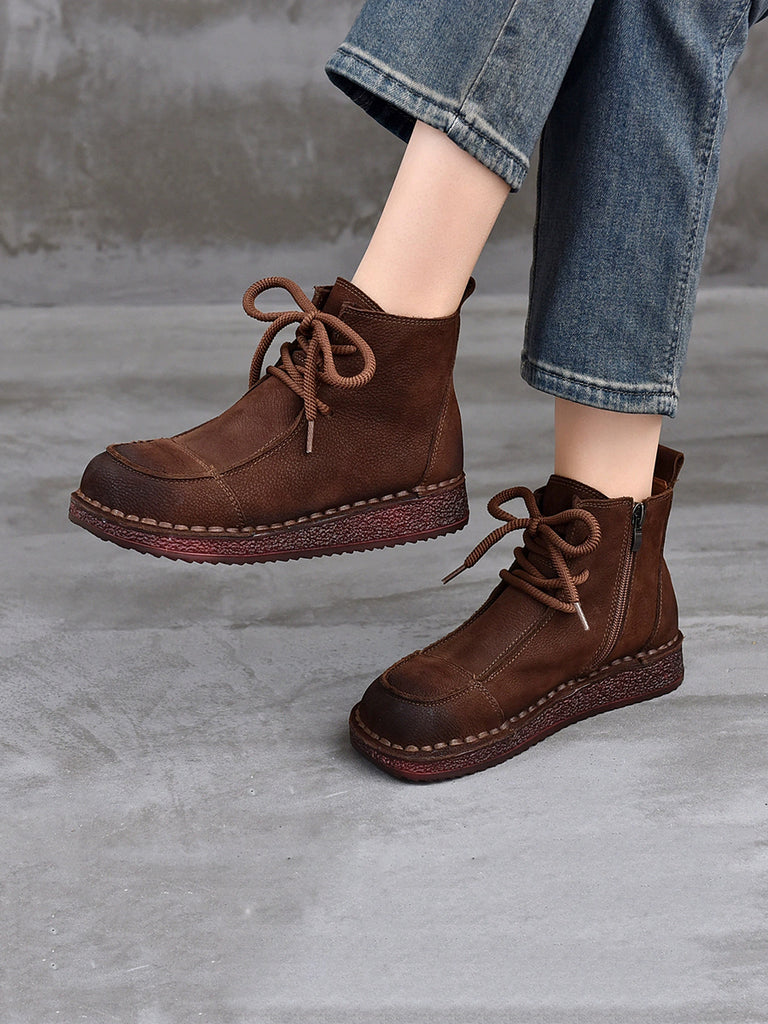 Bottines vintage en cuir véritable de couleur pure pour femmes