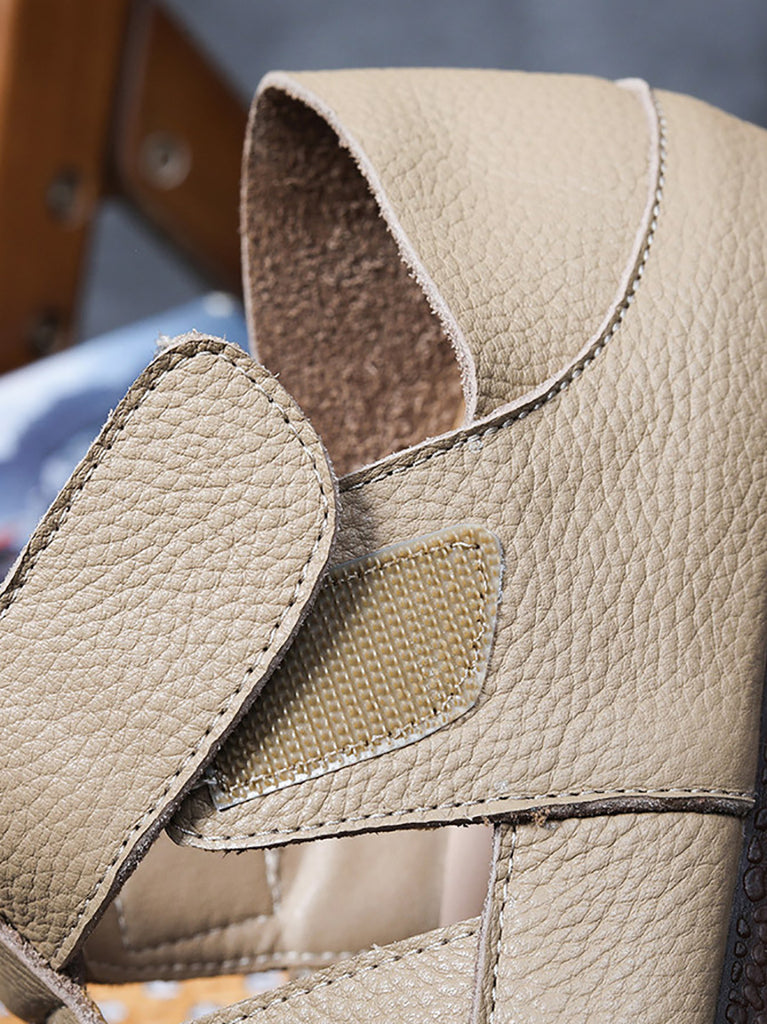 Sandales d'été en cuir véritable pour femmes, couleur pure, épissées